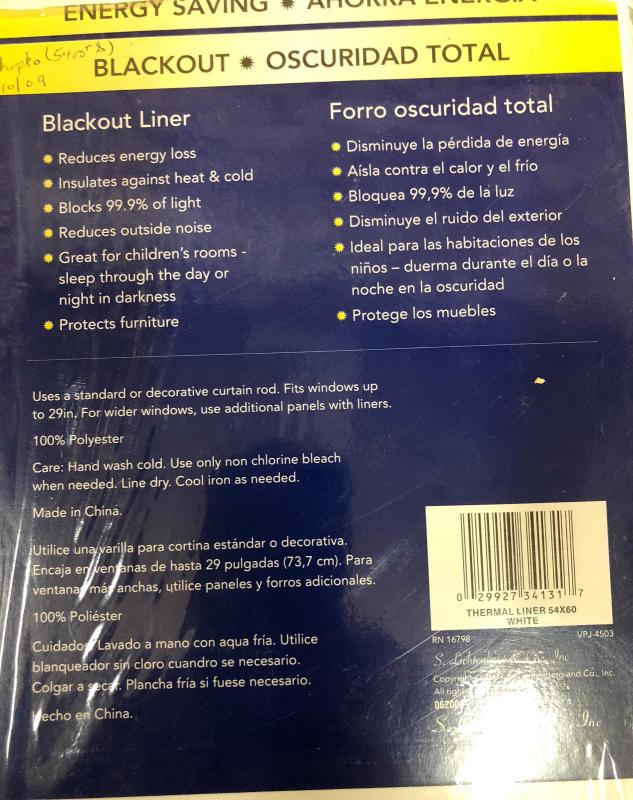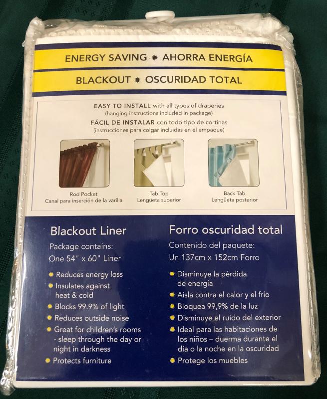 New in the package here is a Blackout Curtain Liner 54 x 60"....