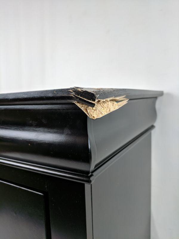 Black/Silver Wood 2 Drawer Night Stand - Right Corner Chipped as Shown