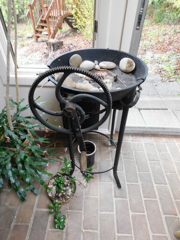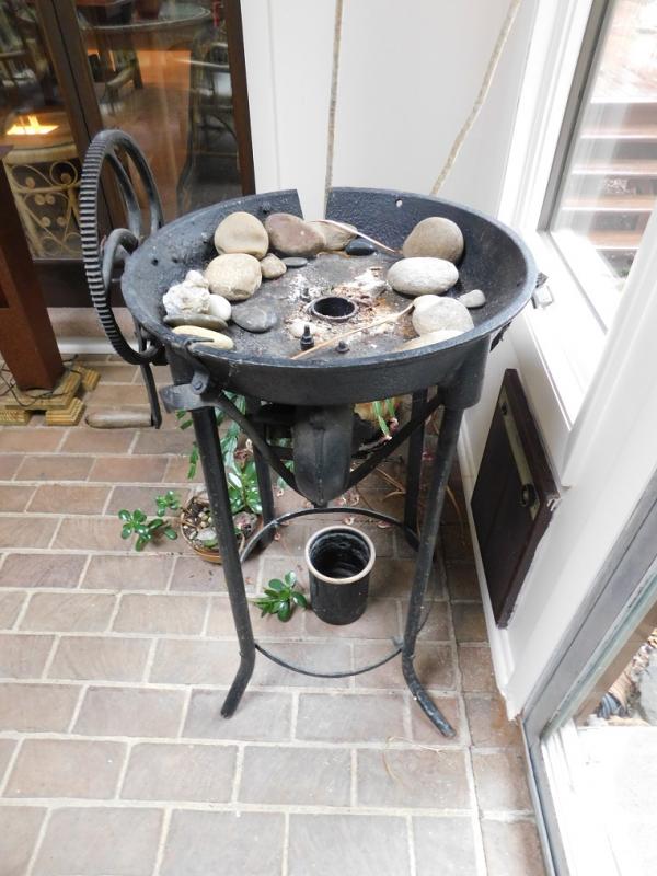 Blacksmith' Coal Fired Forge and Blower has some rusting. Hand crank with belt driven pulley on blower.