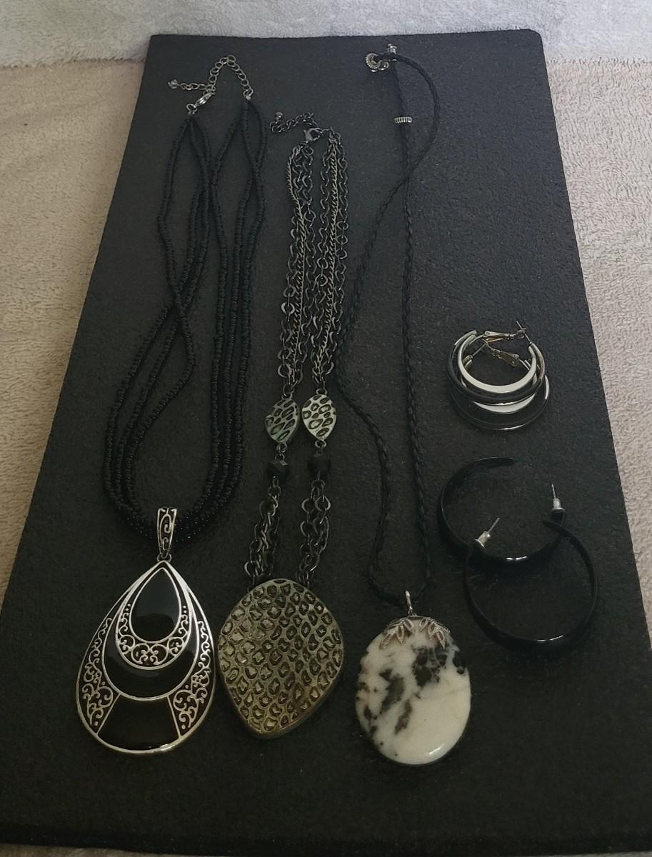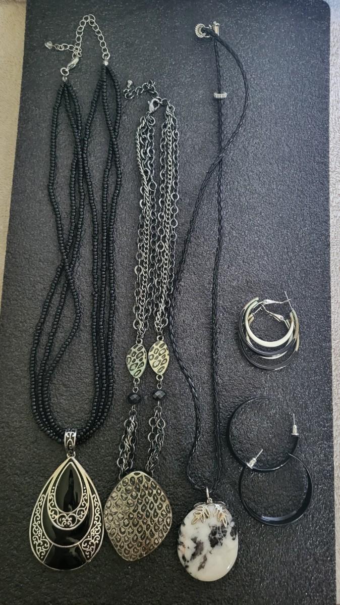 BLACK-TONE EARRINGS AND NECKLACES