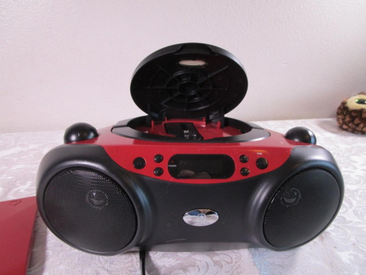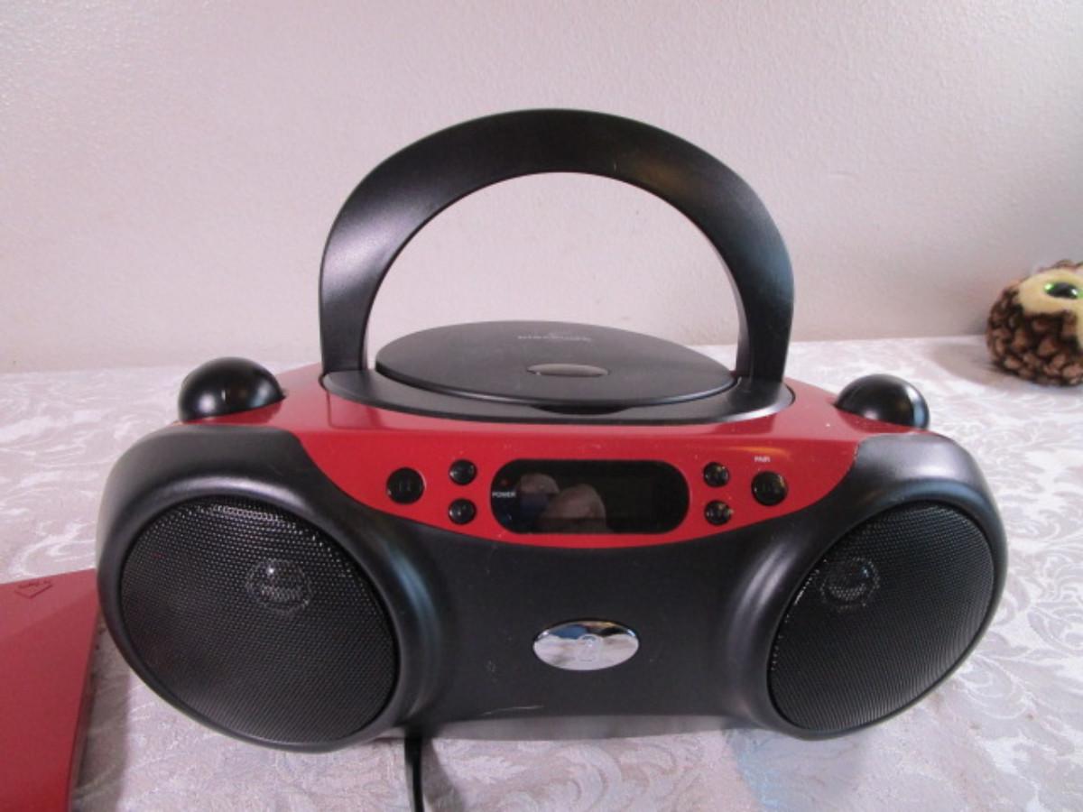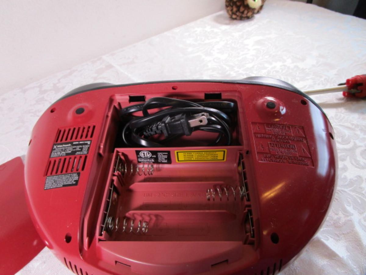 Blue tooth cd player with digital FM radio, has power cord, or takes 6 C batteries, tested and it works