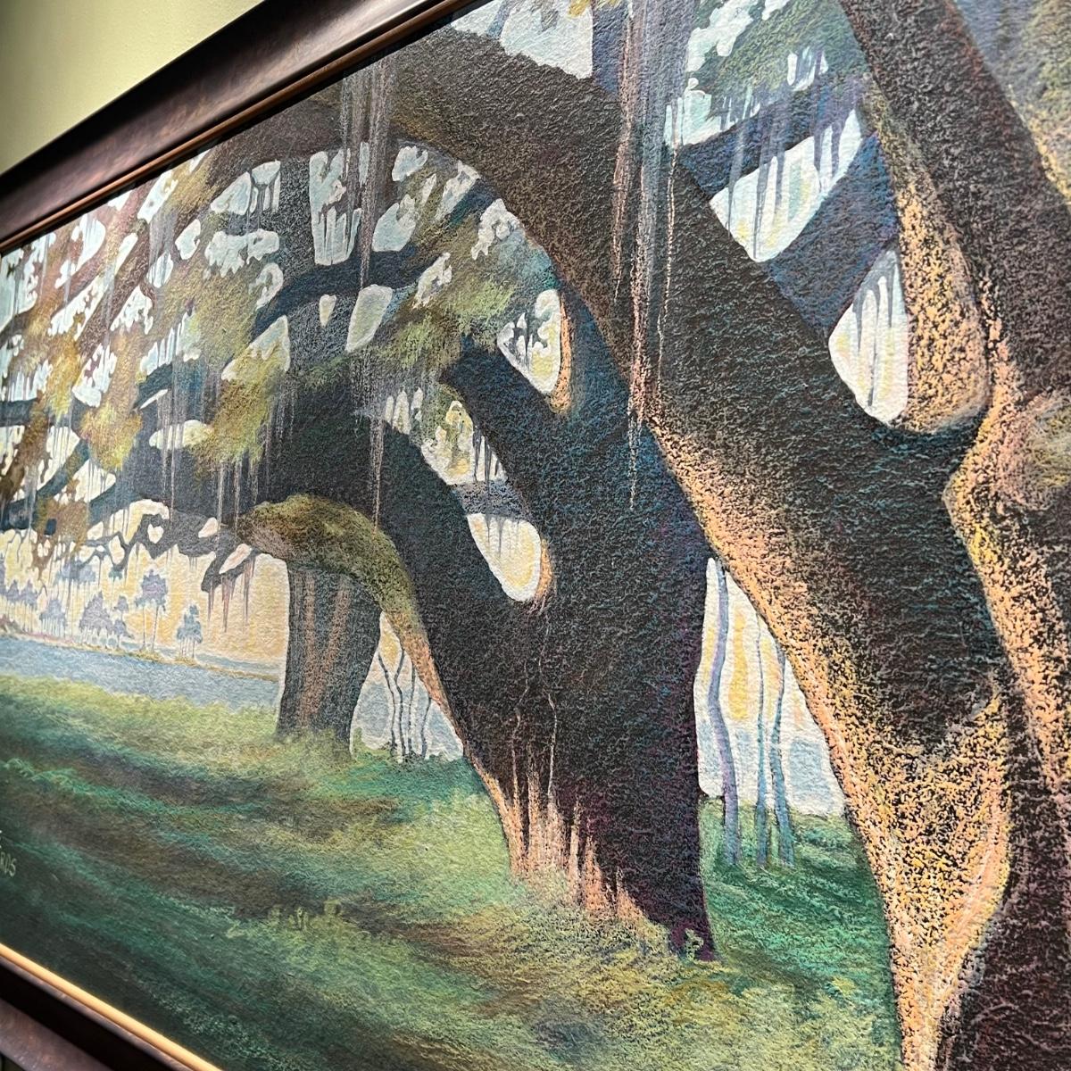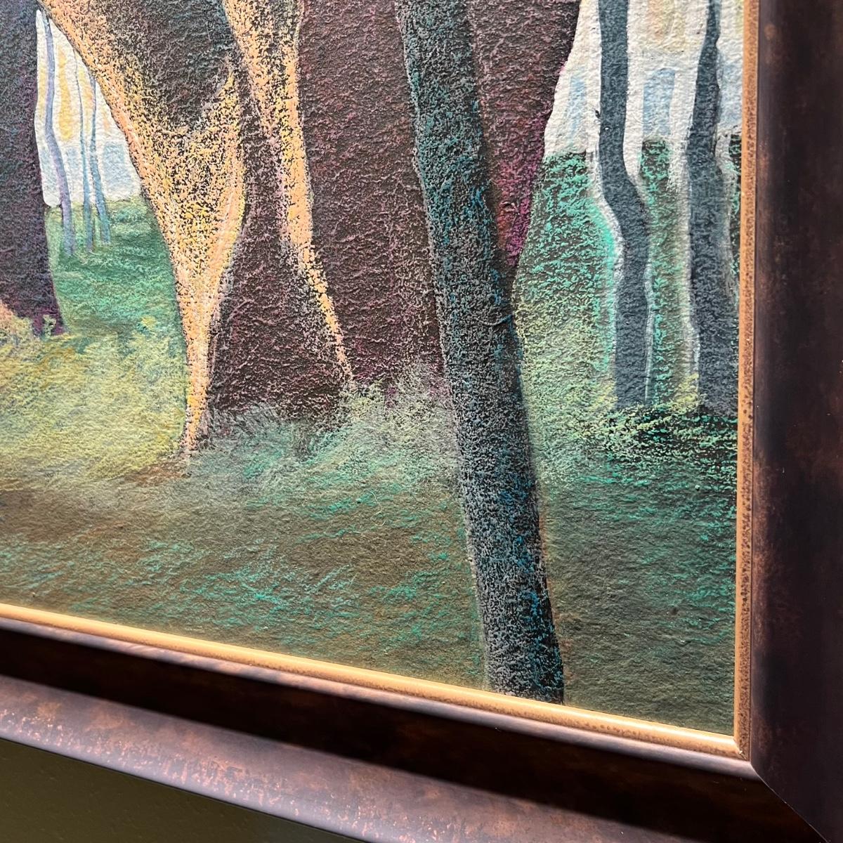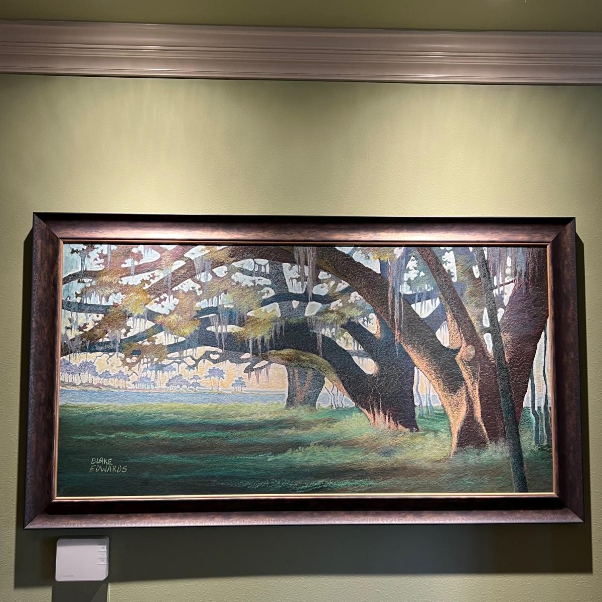This large painting is signed Blake Edwards. Appears to be an original painting, pastels on board. Mounted in an attractive metal frame (not under glass) that has an aged copper finish.