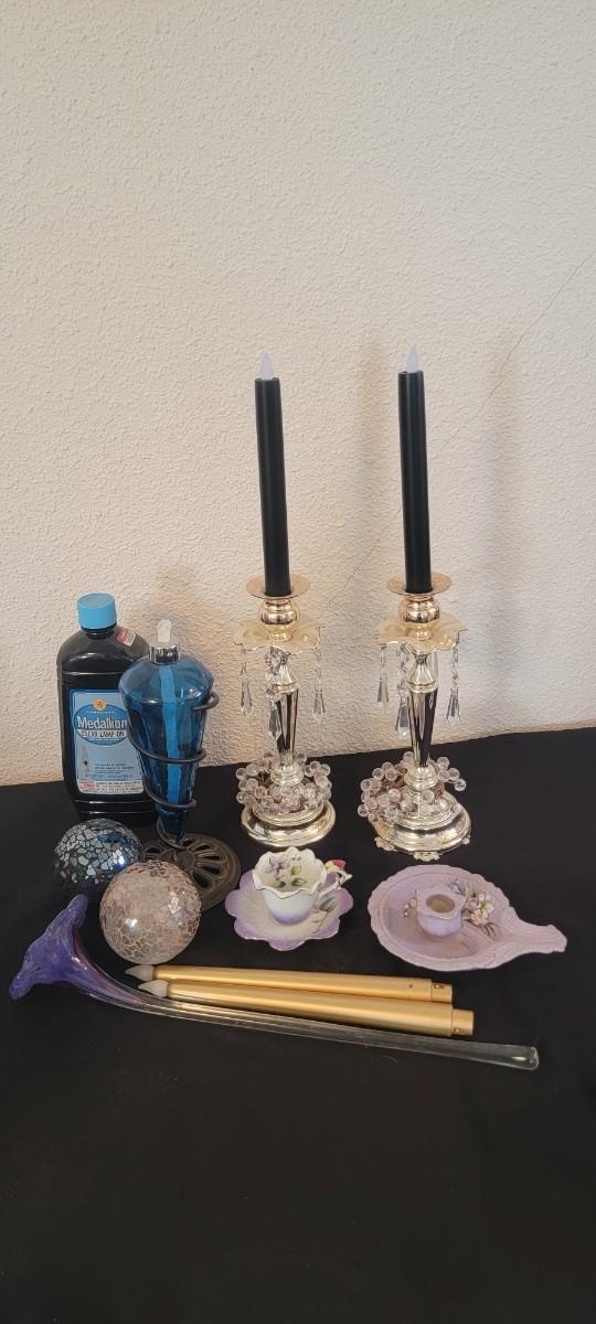 Beautiful demitase cup and saucer, blameless candlesticks and more!