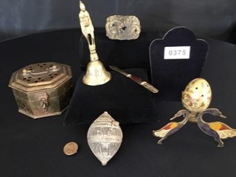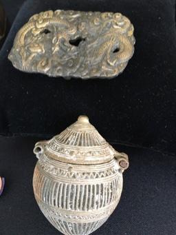Nice collection of East Indian Thai and Chinese brass and enamel items. Lot # 375