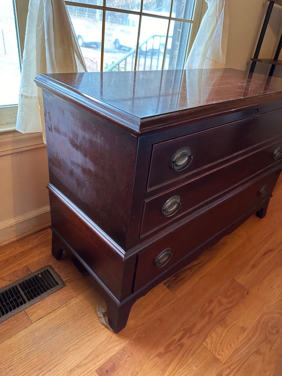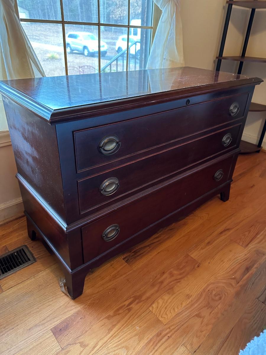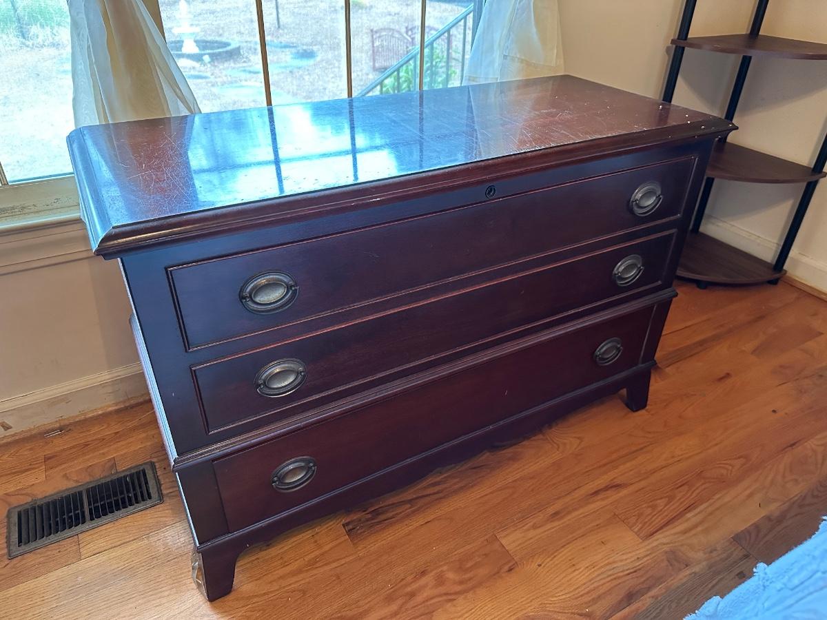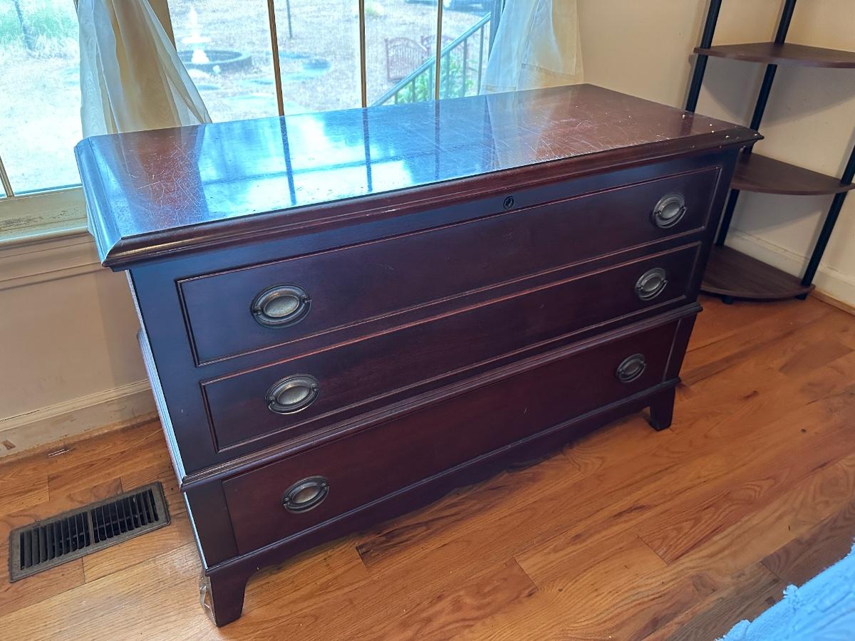 VINTAGE BLANKET CHEST, 43 1/2X18X30, SOME SCRATCHES, SEE PHOTS FOR DETAILS