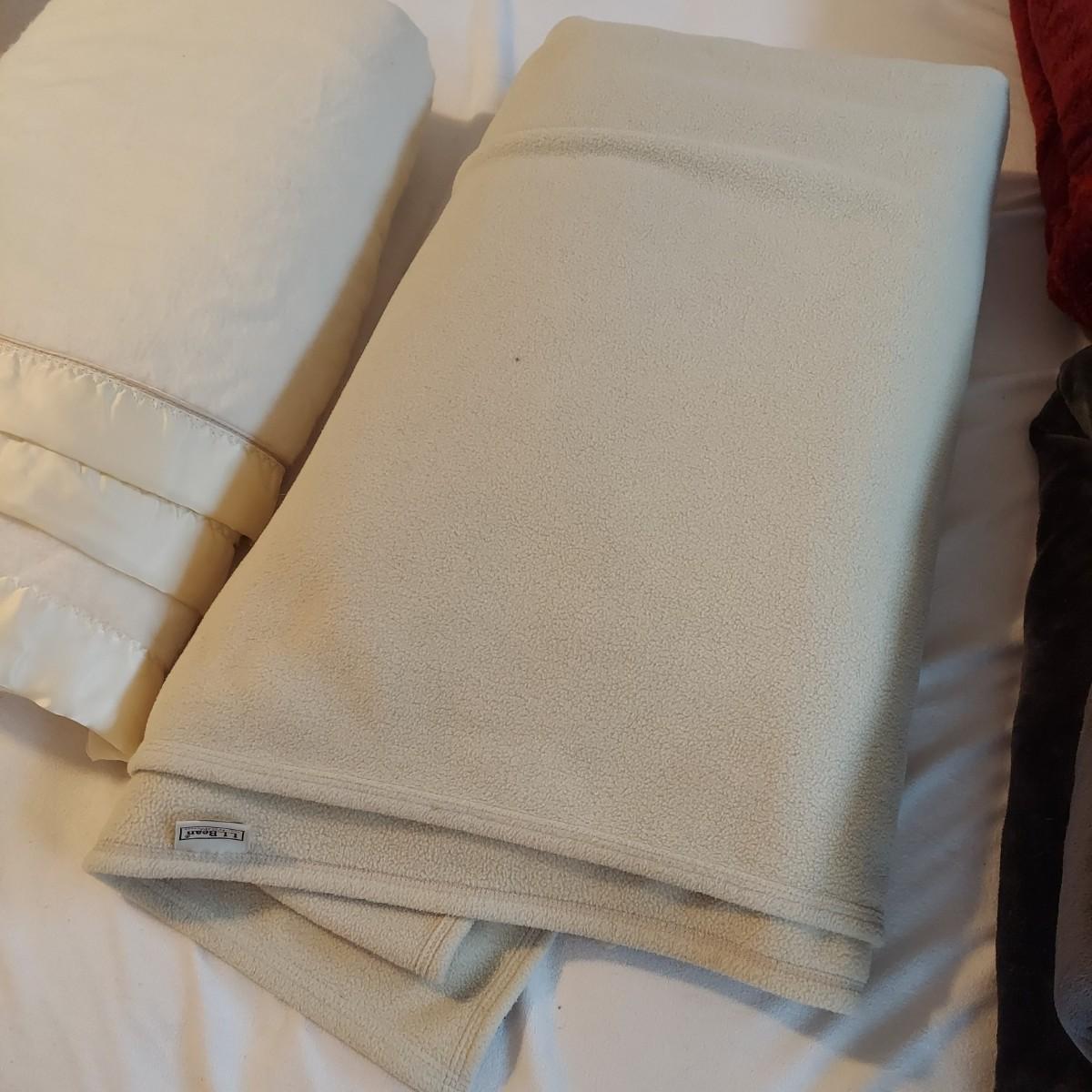 Five blankets of various fleece styles. Brands include L.L. Bean and more. Please see photos for details. Shipping available.