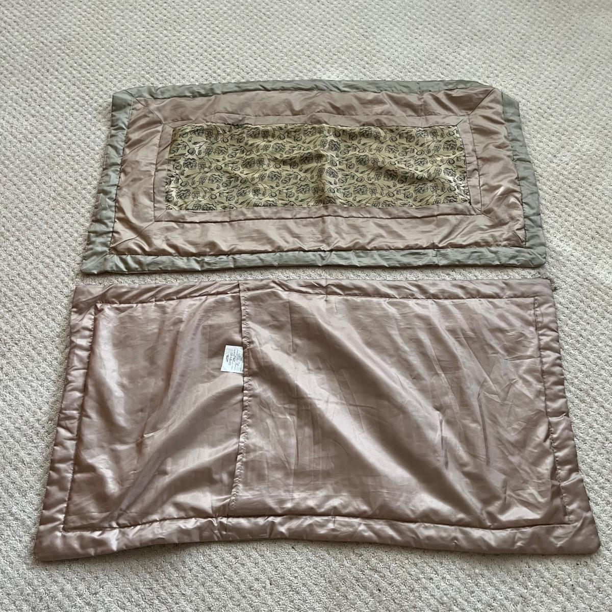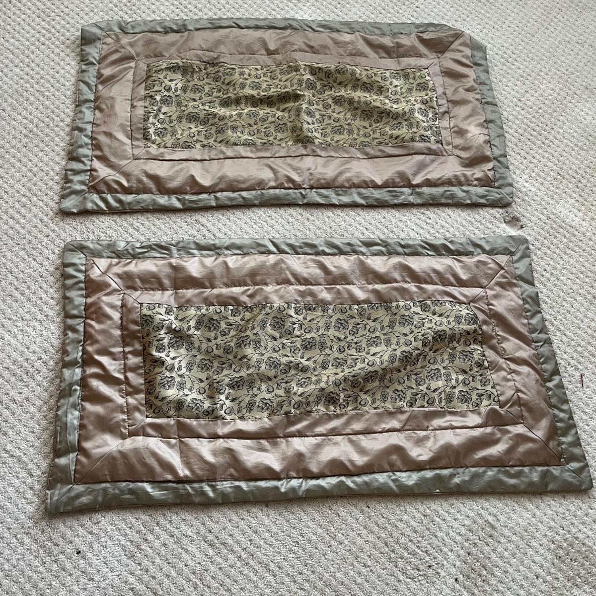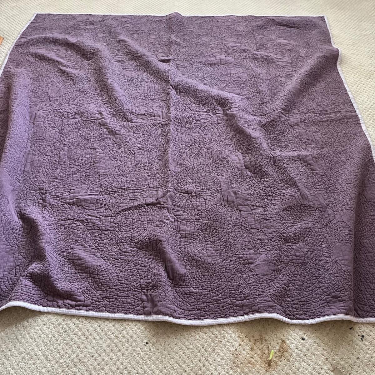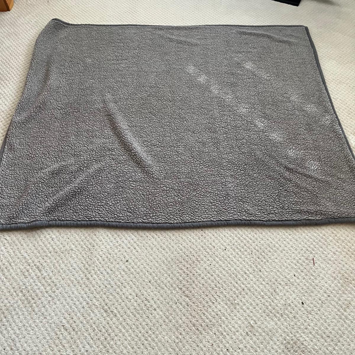 Lot includes a Pepperell blanket, striped comforter that measures 82” x 96”, two king shams, reversible blanket and four blankets.
