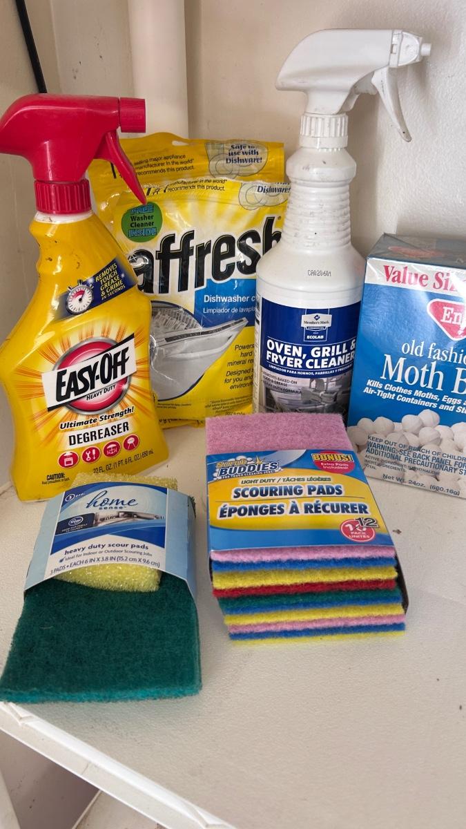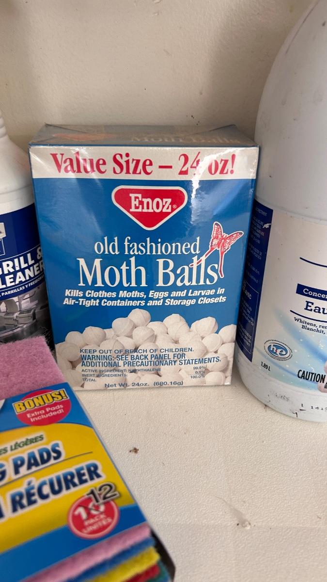BLEACH, MOTH BALLS, GLASS CLEANER, DISHWASHER CLEANER, SCOURING PADS AND MORE