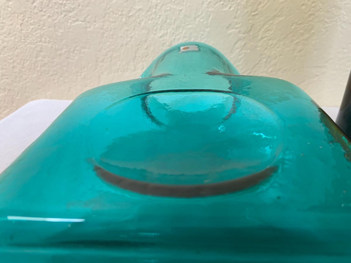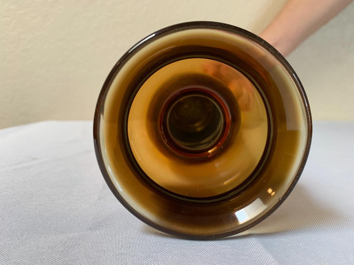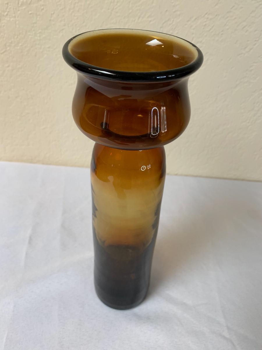 Two mid century Blenko art glass vases one with sticker. Excellent condition (11 1/2 inches in height“”- for brown one)
