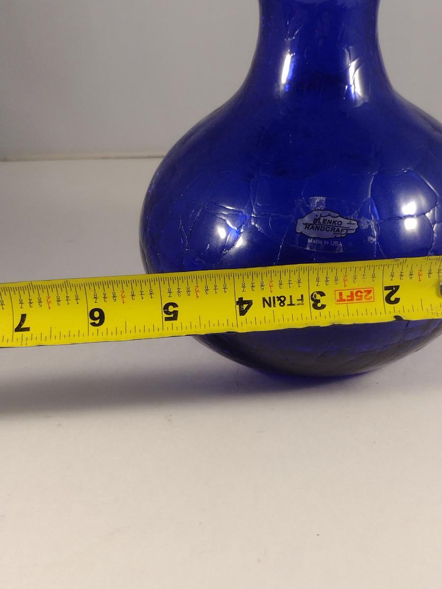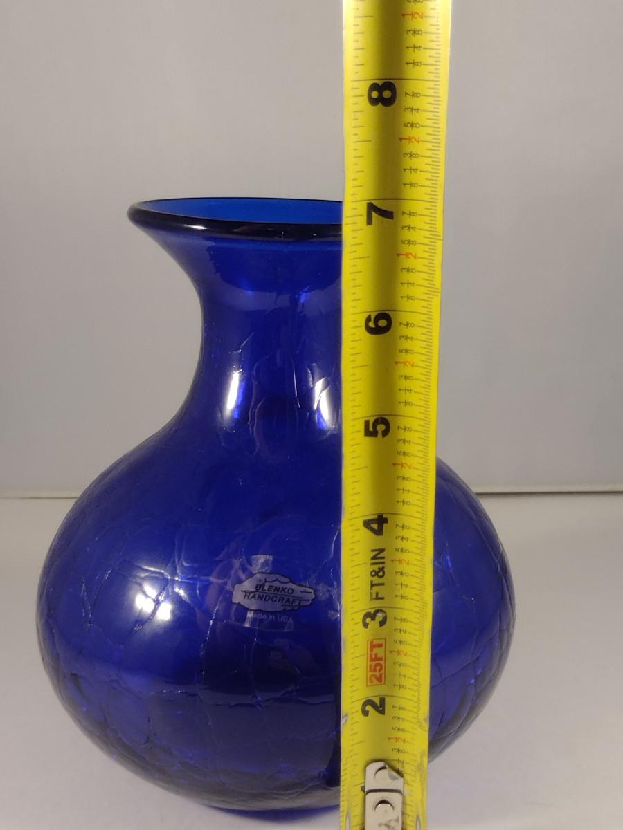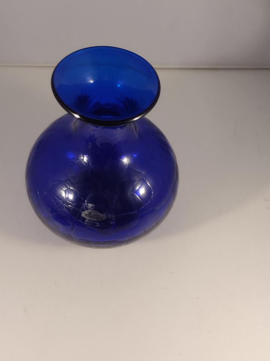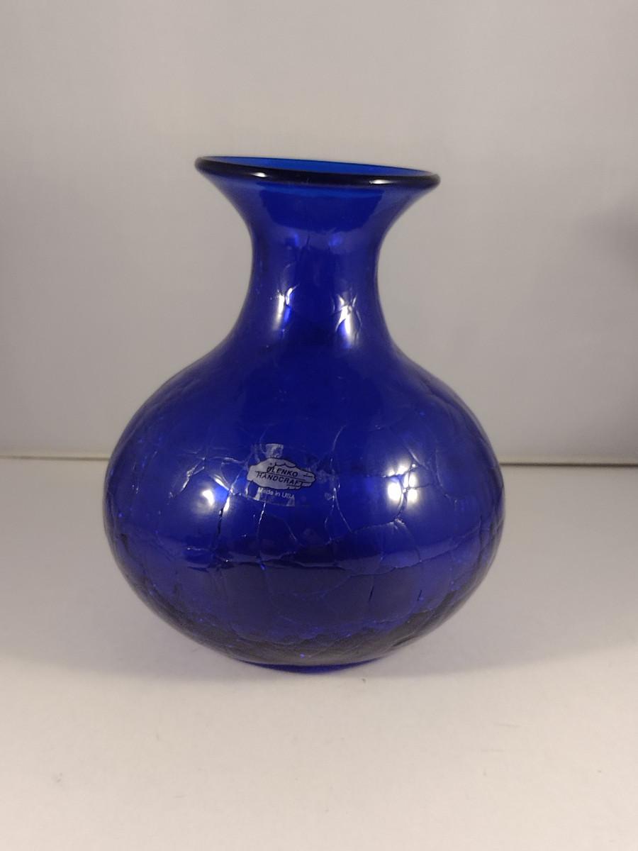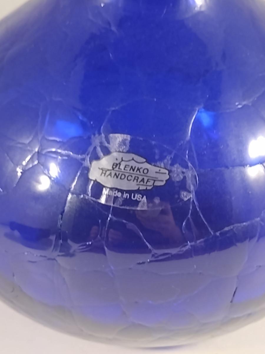 Blenko Cobalt Blue Crackle Art Glass Vase
