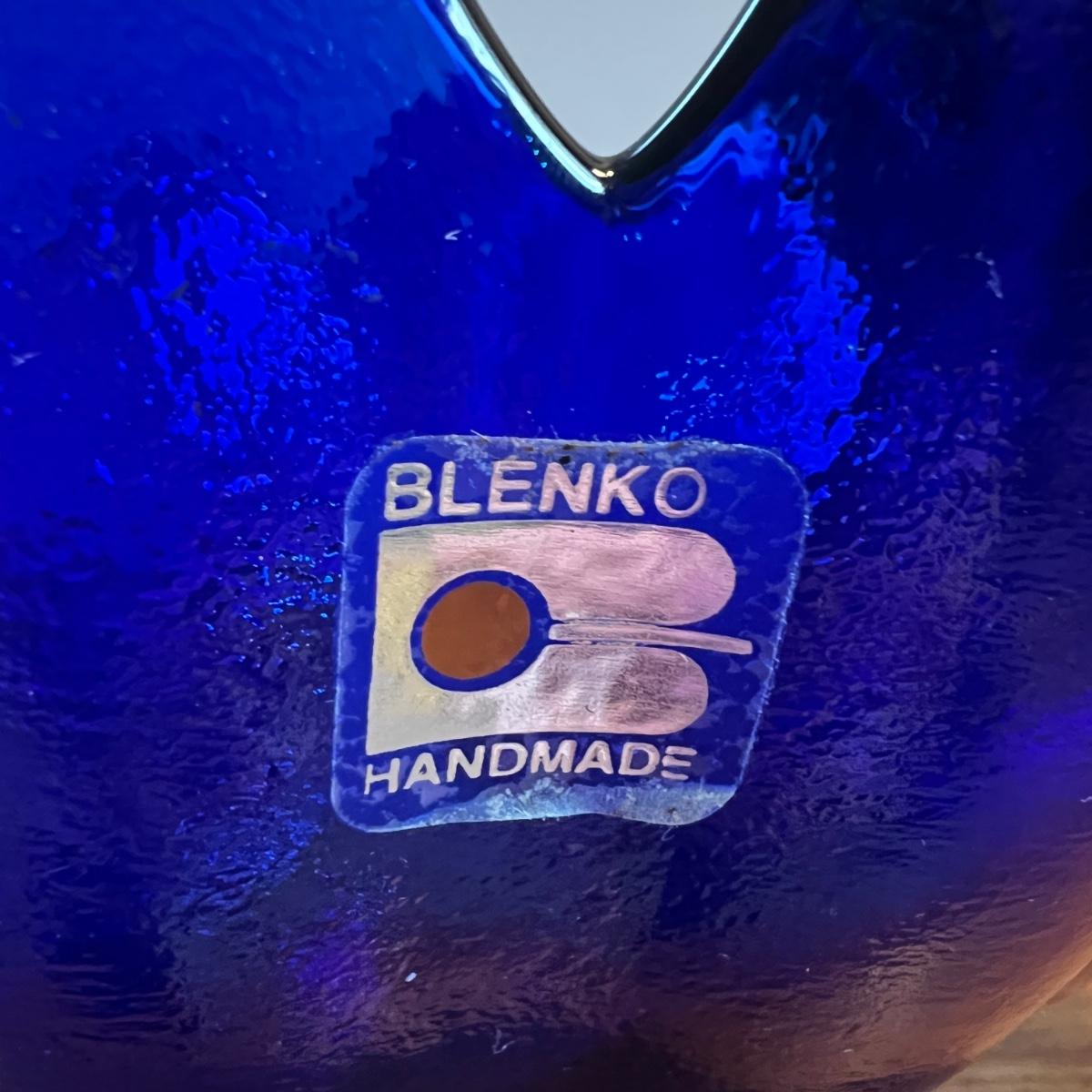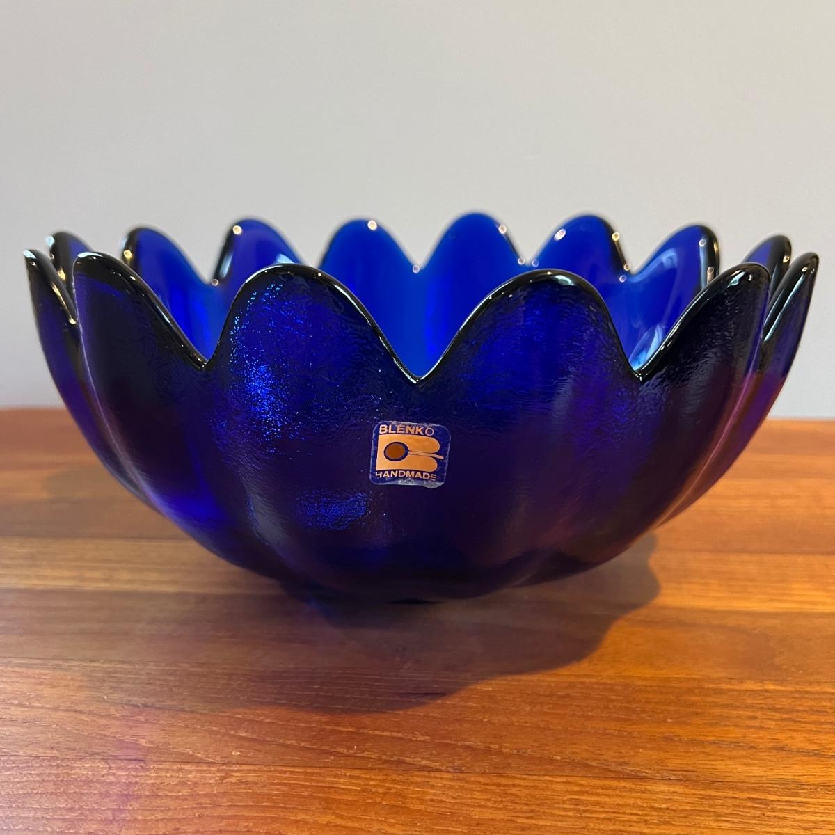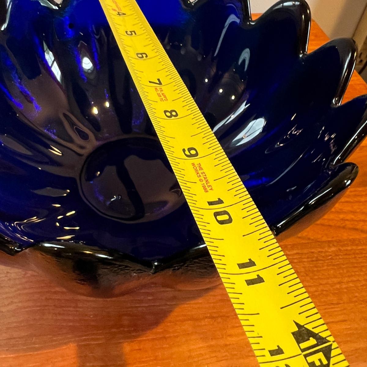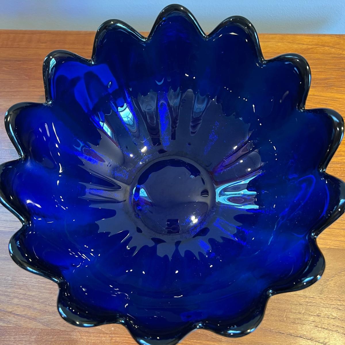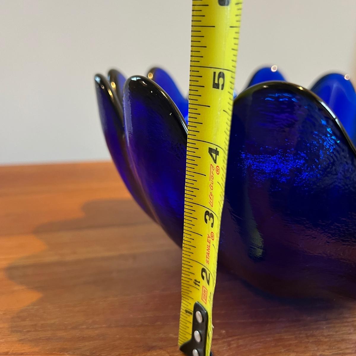 Blenko Hand Made Cobalt Blue Art Glass Petal Bowl