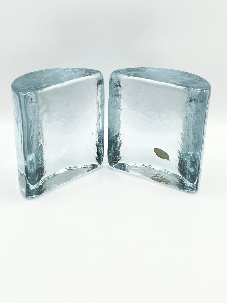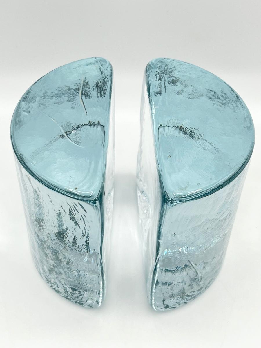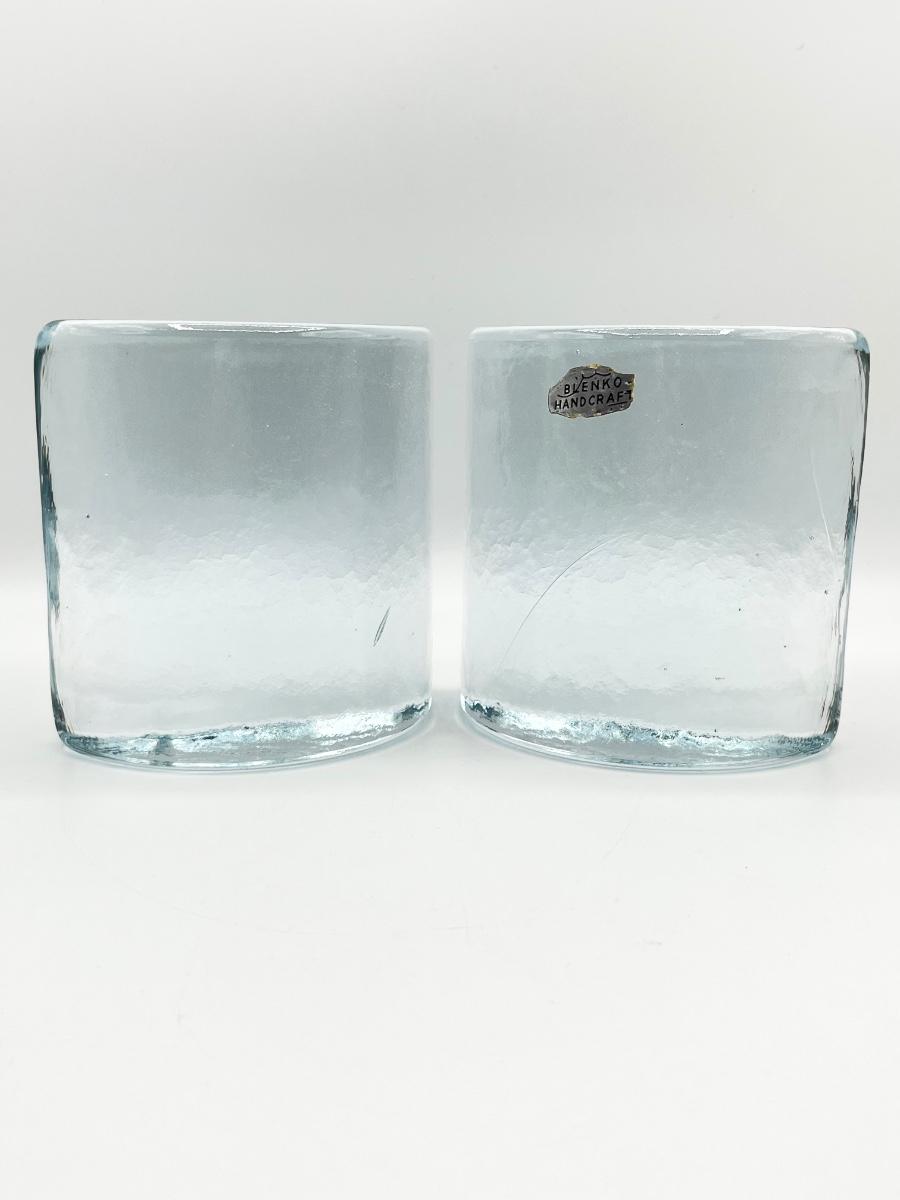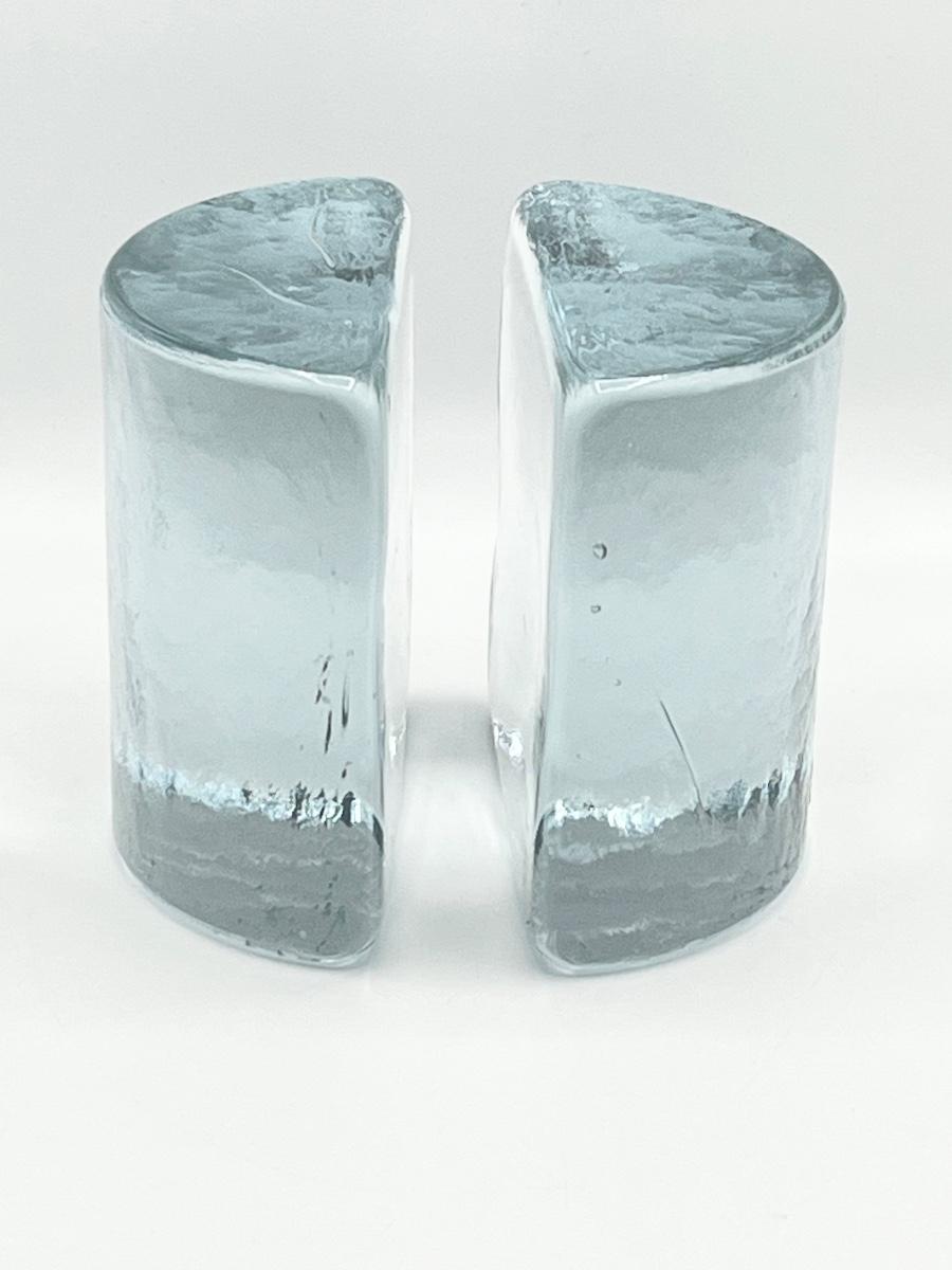 BLENKO HANDCRAFT ~ Pair (2) ~ Clear Glass Half Circle Bookends