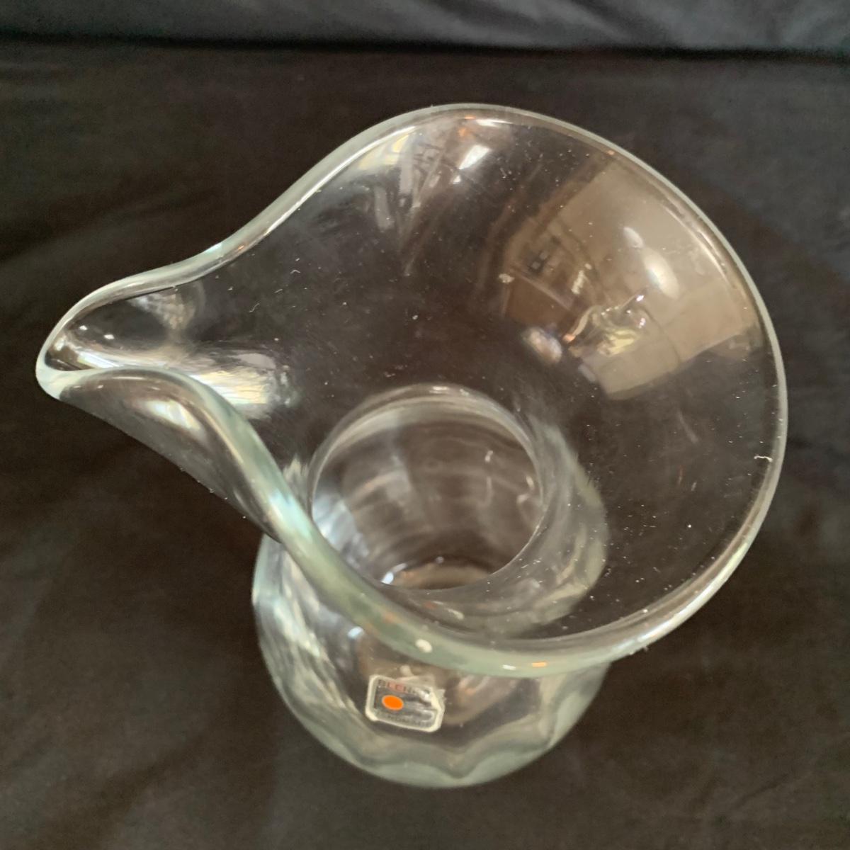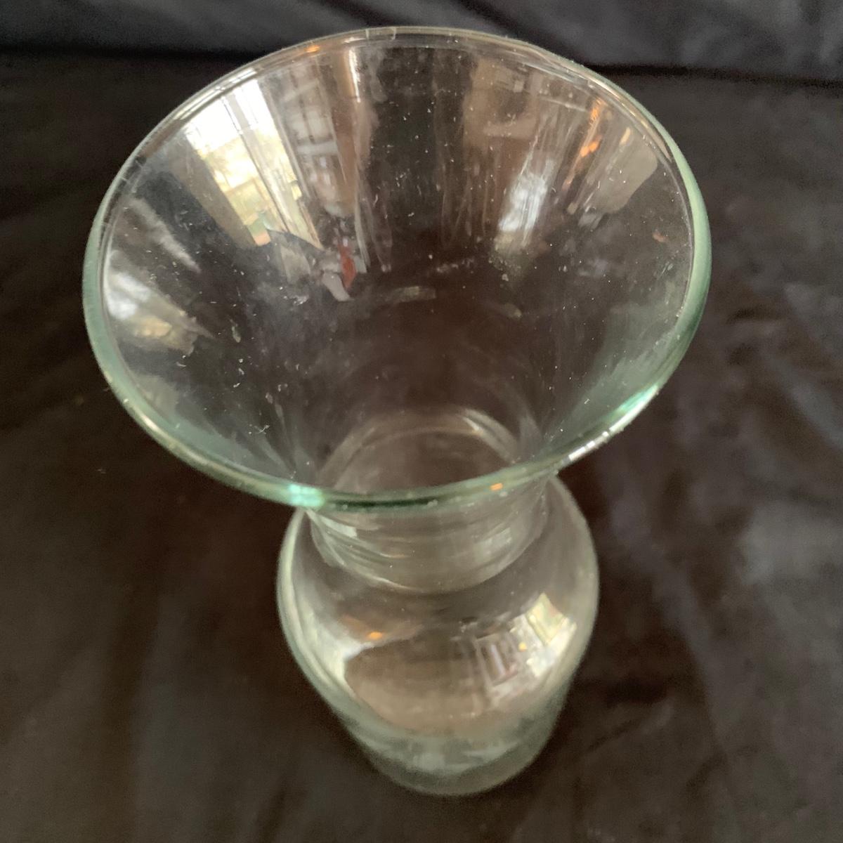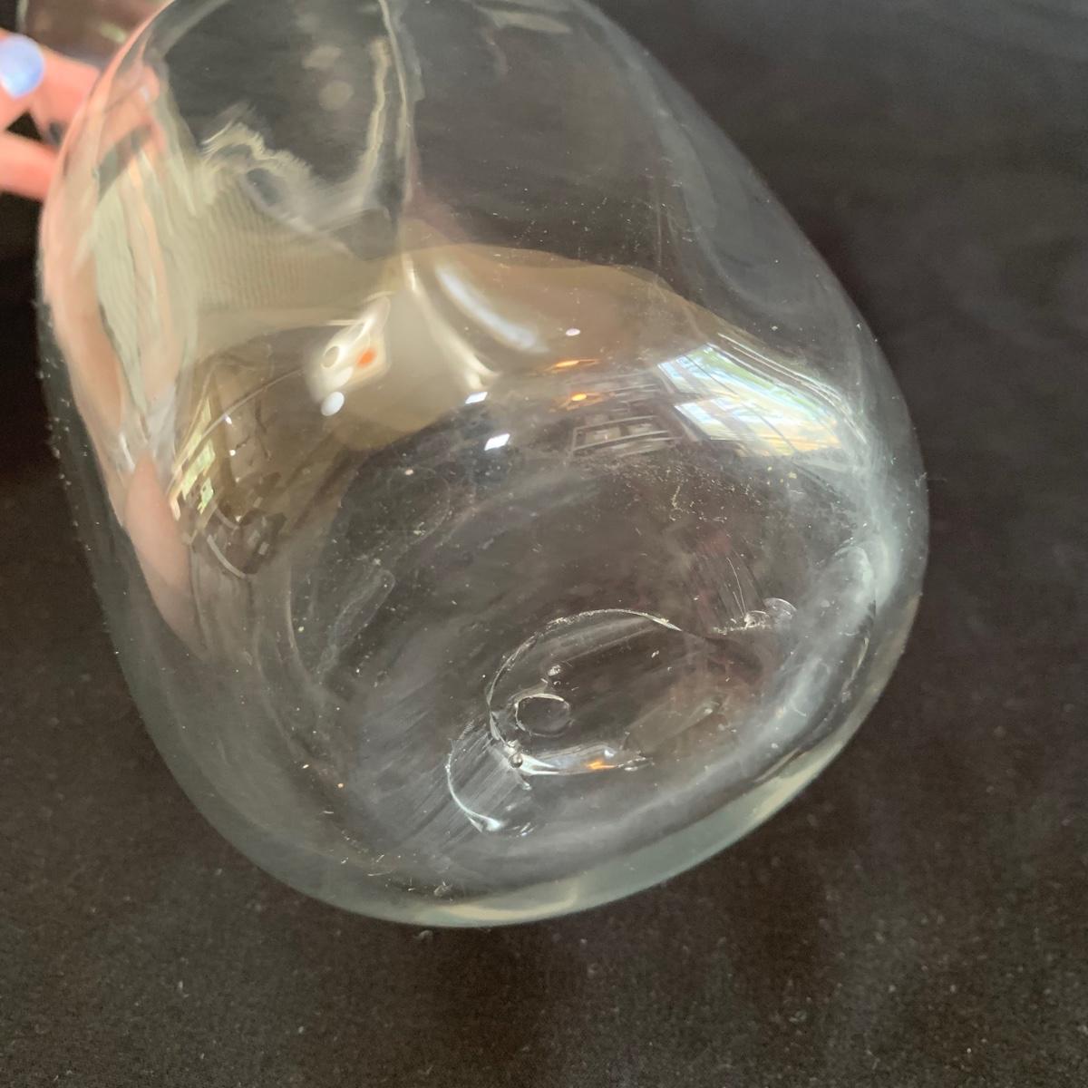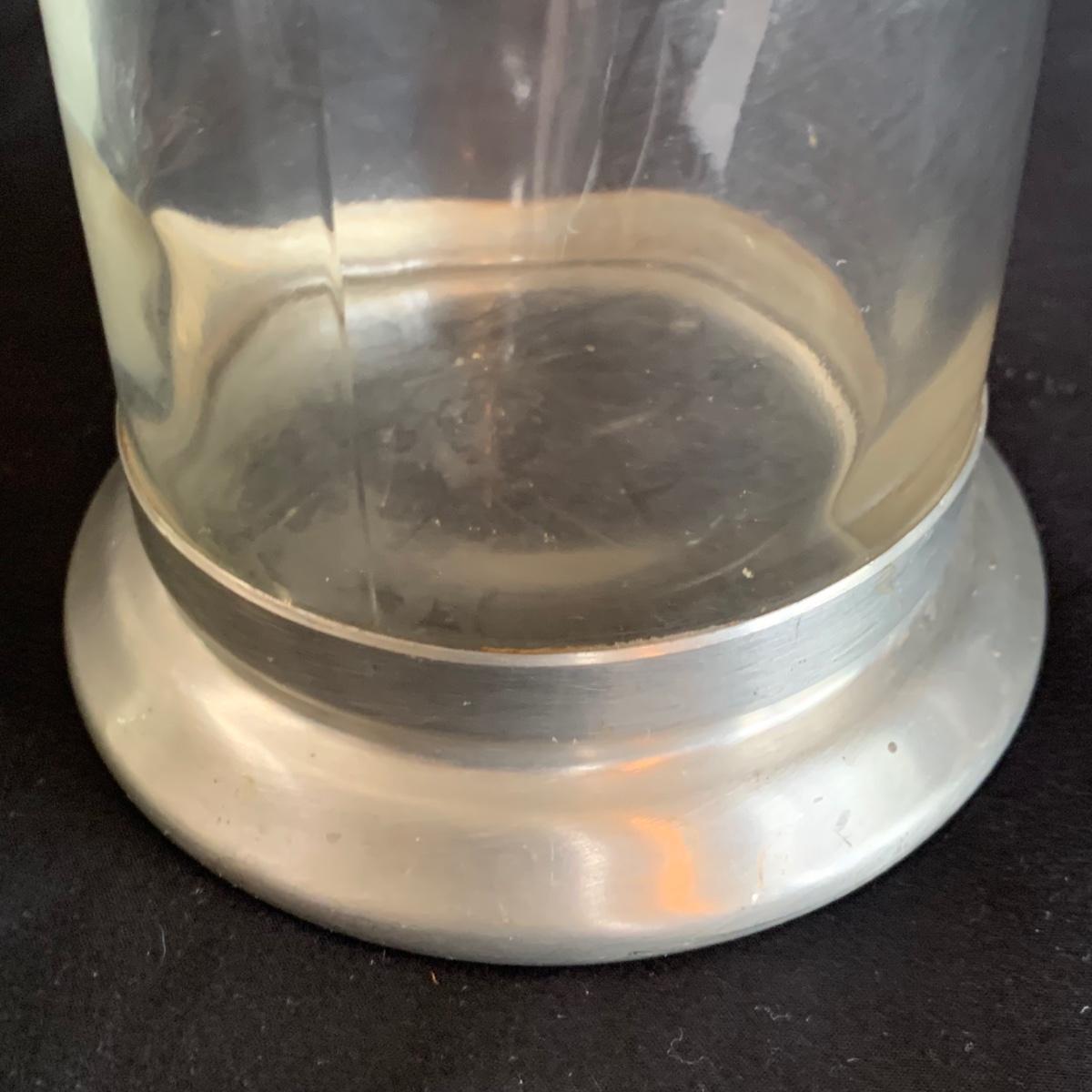 Four glass vases/carafes. One has a Blenko Handmade label and could function as a base or a pitcher. Another has a “˜Vetreria Etrusca Made in Italy’ label; it has a light green hue. One has a pewter base and rim. For reference, its base is 5“D and it is 11.75“H. It is marked “˜Eastern Pewter’. This one has a scratch in the glass near the top, see photos. The fourth has an etched design. They are all a bit dusty and could use a good cleaning.