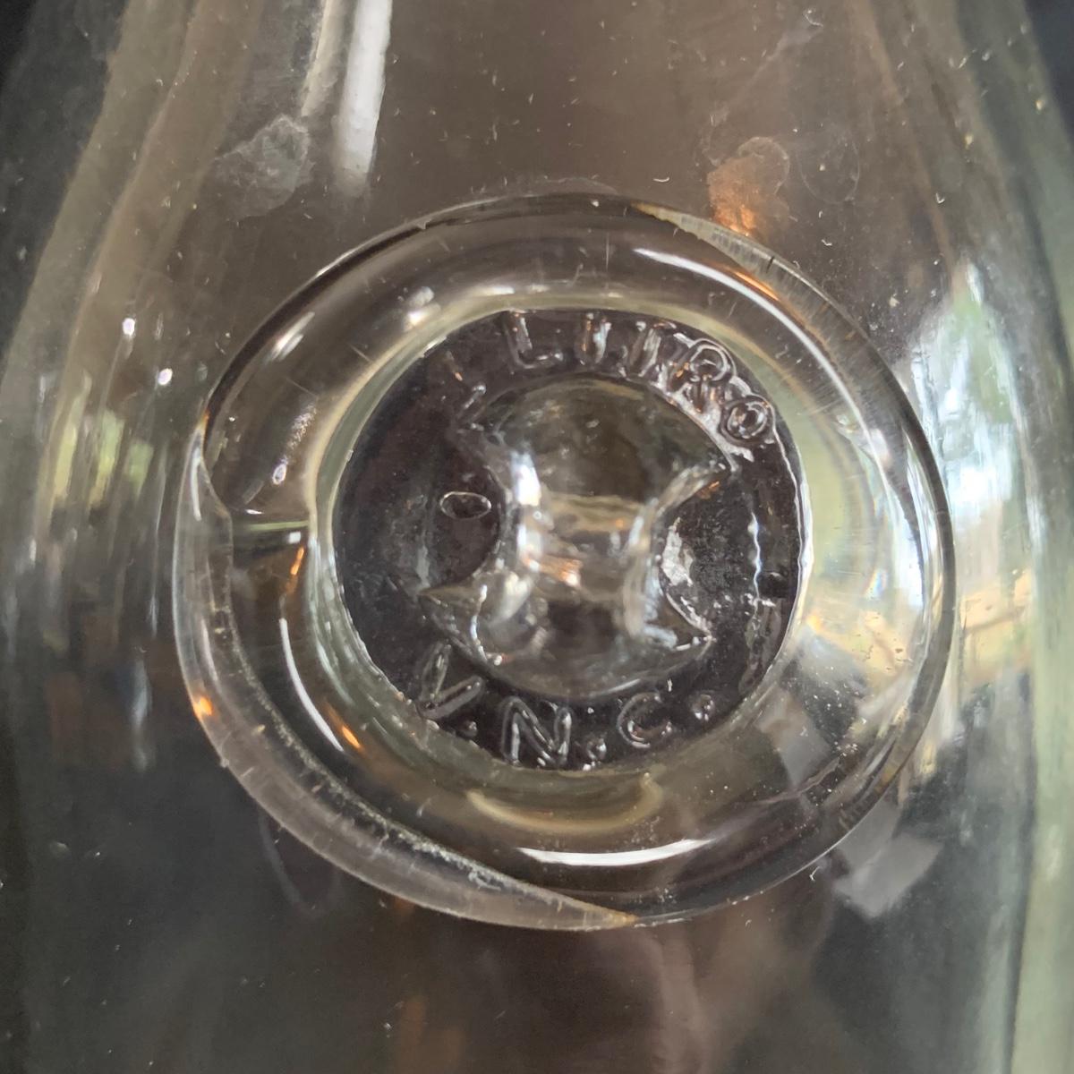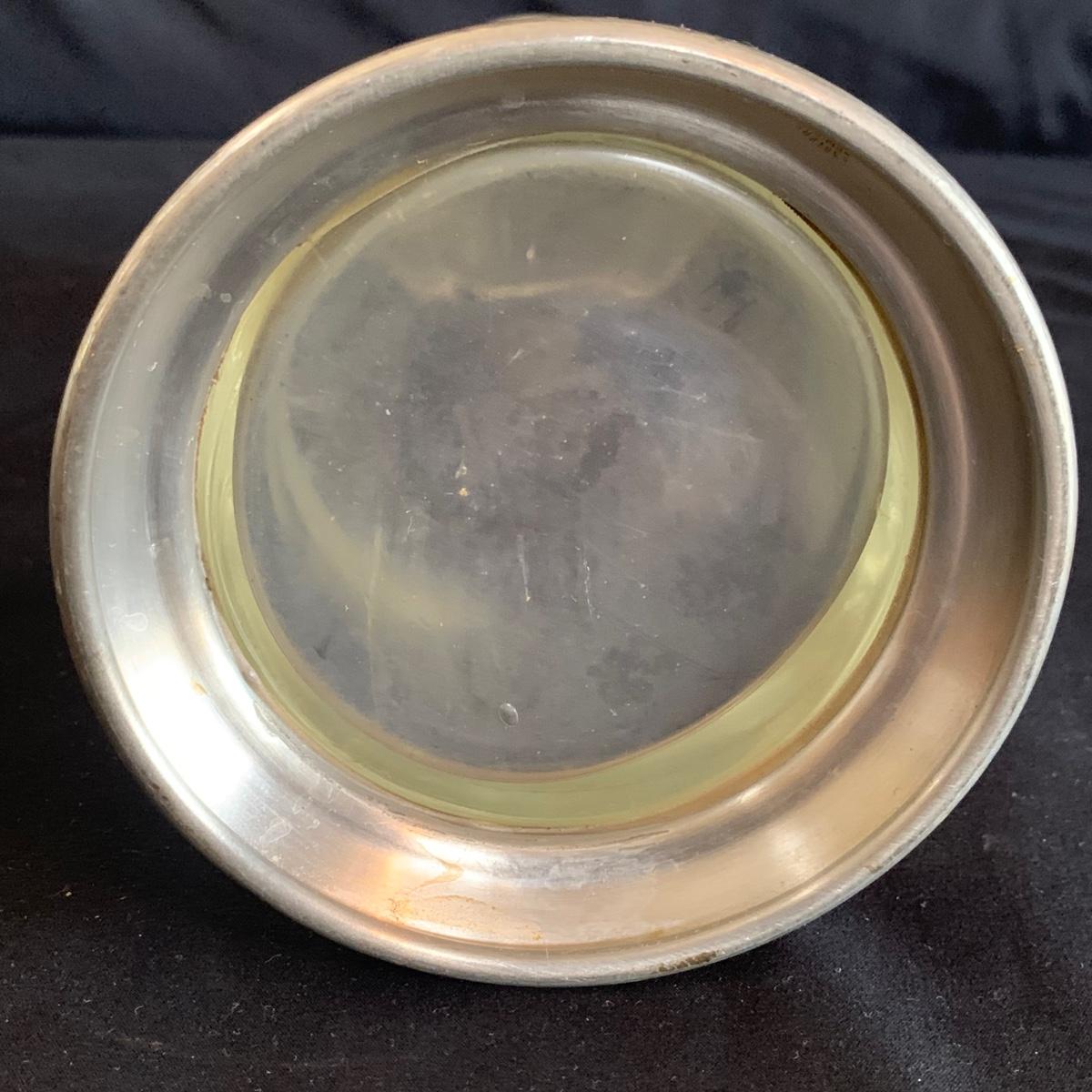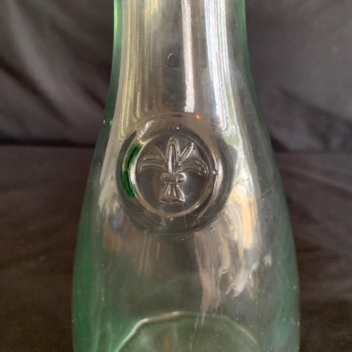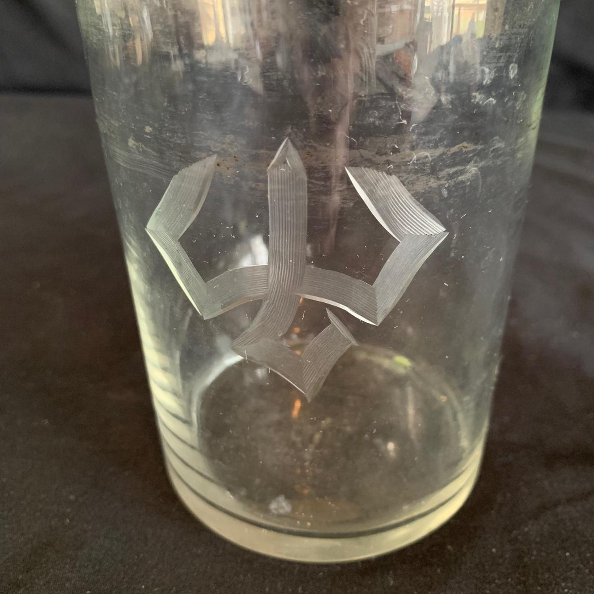 Four glass vases/carafes. One has a Blenko Handmade label and could function as a base or a pitcher. Another has a “˜Vetreria Etrusca Made in Italy’ label; it has a light green hue. One has a pewter base and rim. For reference, its base is 5“D and it is 11.75“H. It is marked “˜Eastern Pewter’. This one has a scratch in the glass near the top, see photos. The fourth has an etched design. They are all a bit dusty and could use a good cleaning.