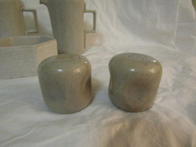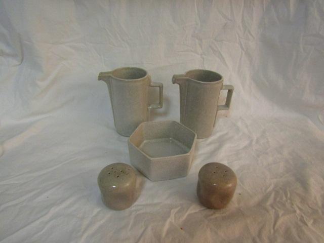 Block Bennington Vermont Pottery- Salt and Pepper Shakers, Hexagon Dish, and 2 Small Pitchers