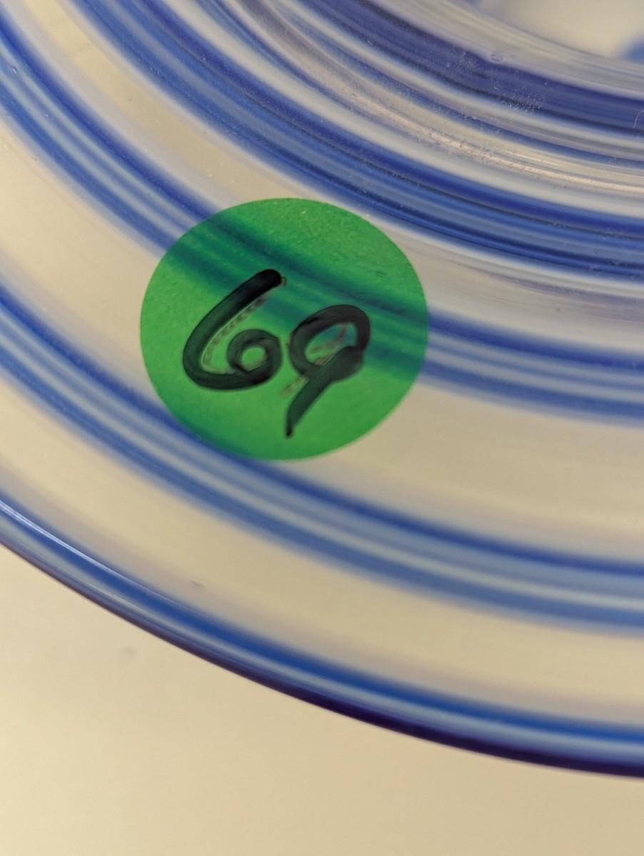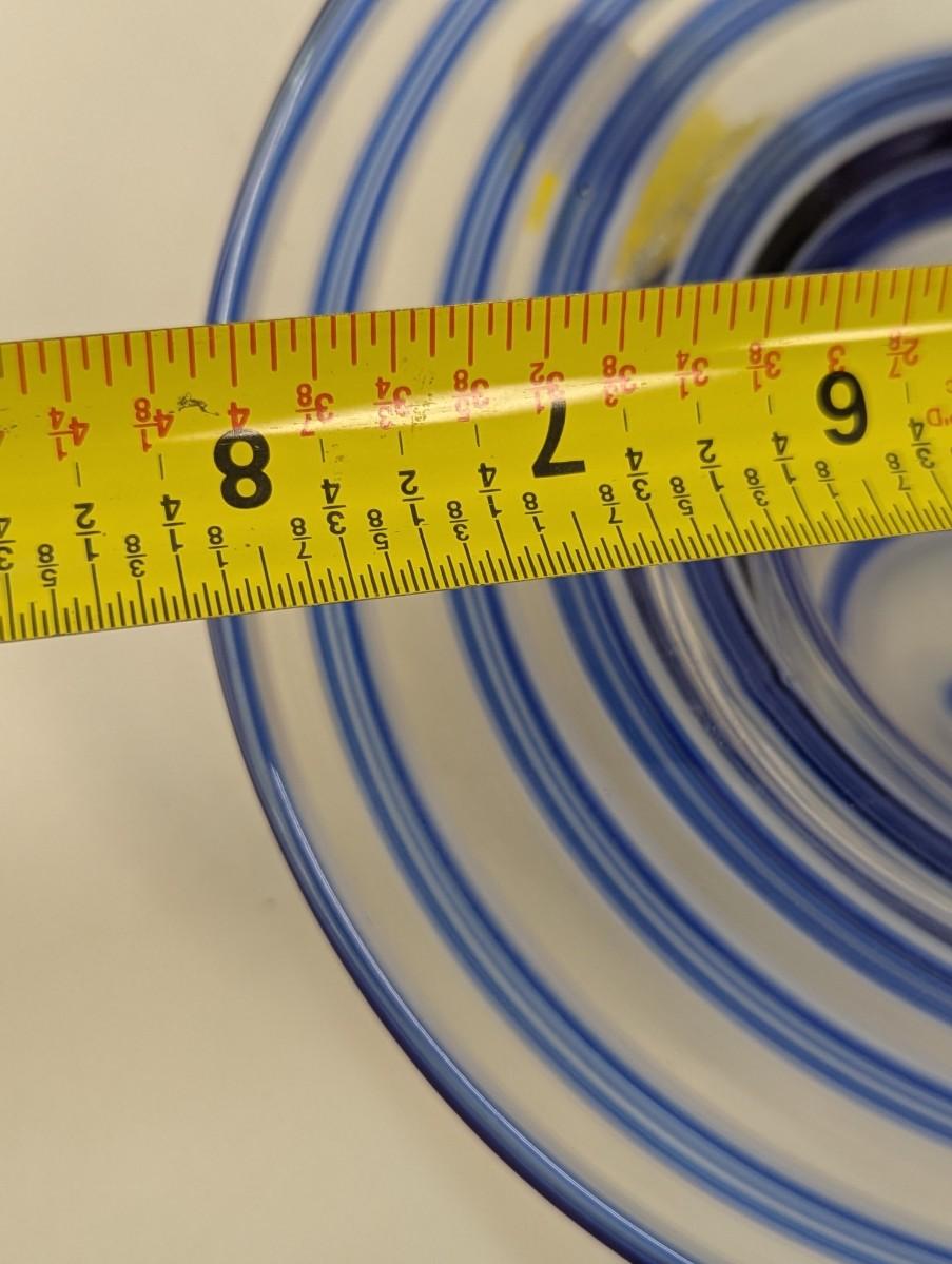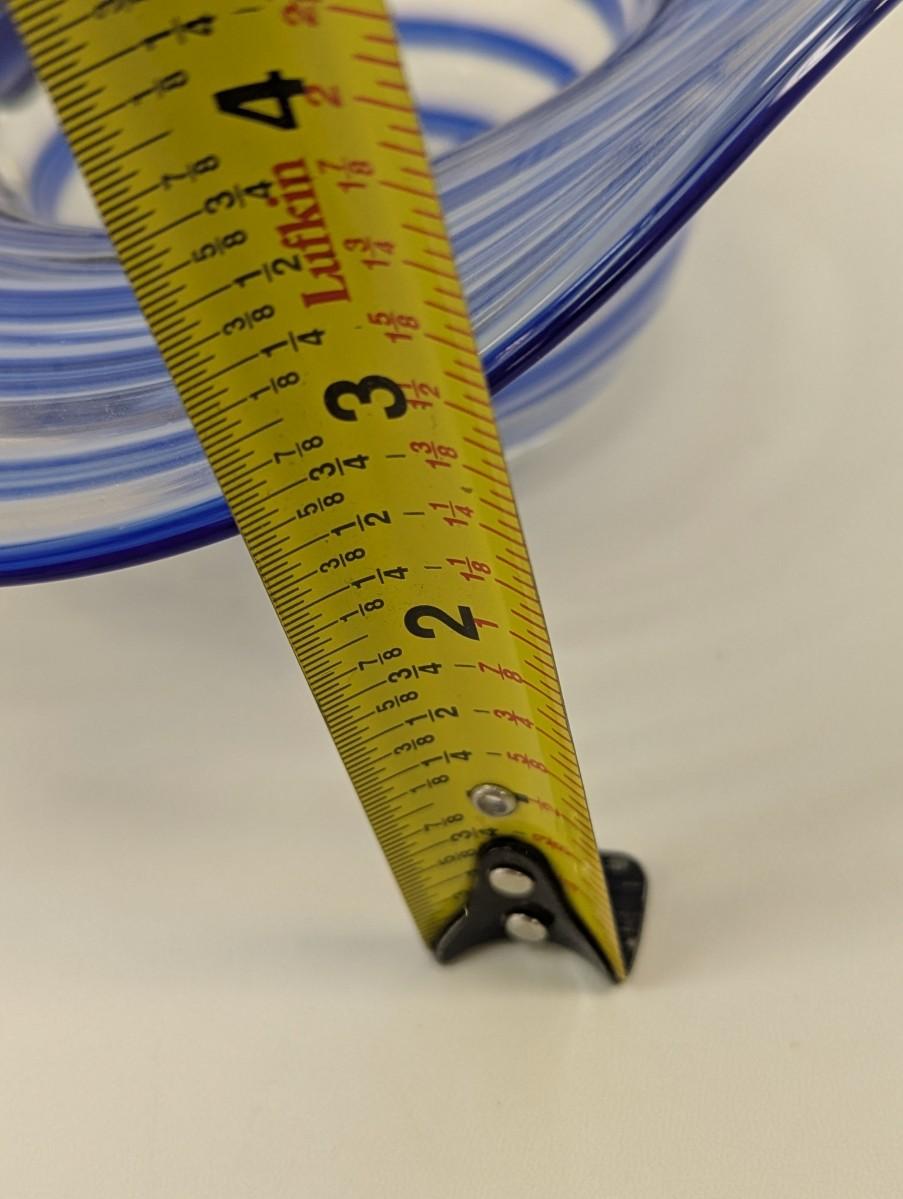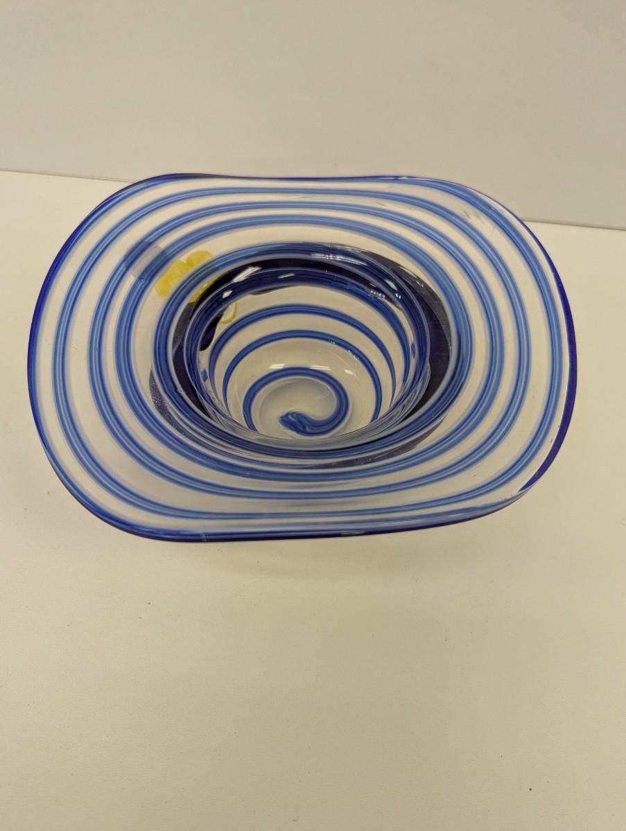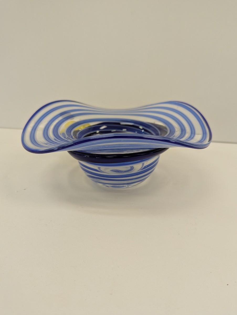 Block Mouth Blown Crystal Hand Polished Blue Swirl Hat Candy Bowl Yellow Flower #69