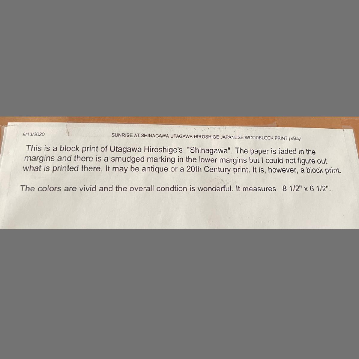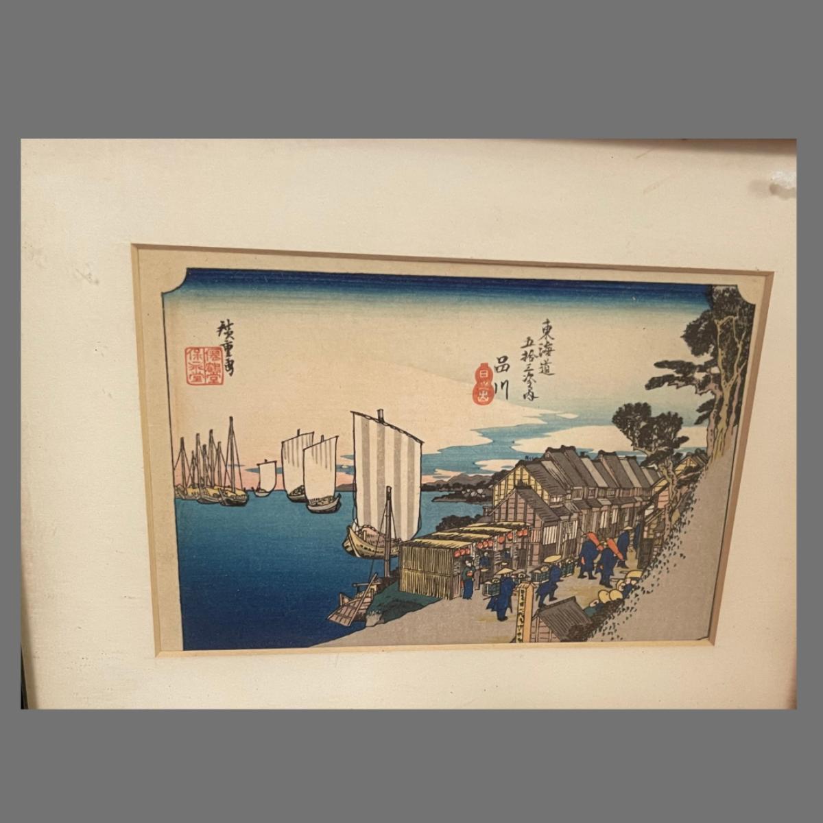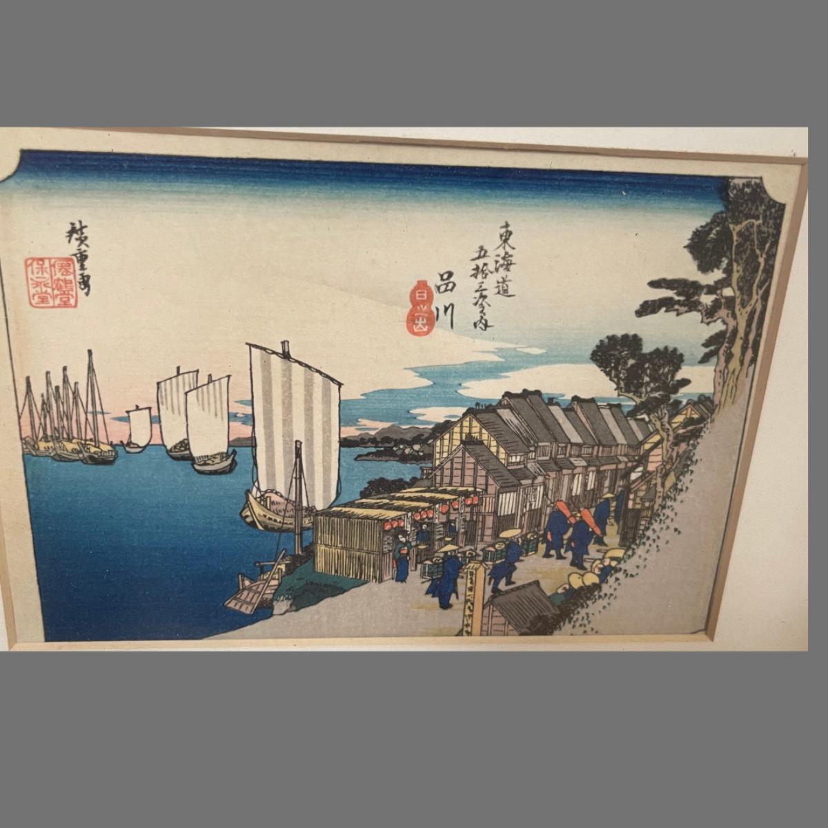 Block Print of Utagawa Hiroshige's "Shinagawa" Framed