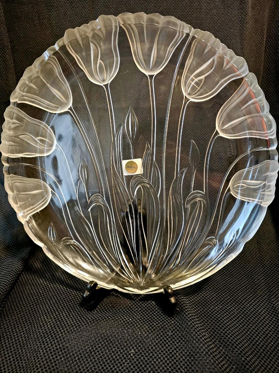 Block Crystal Frosted Tulip 15" Platter Made in Japan