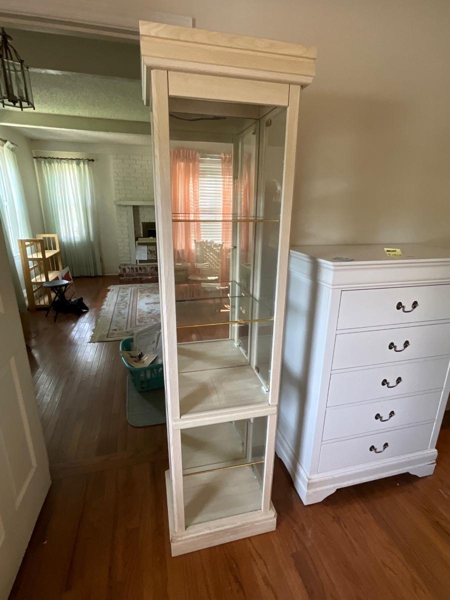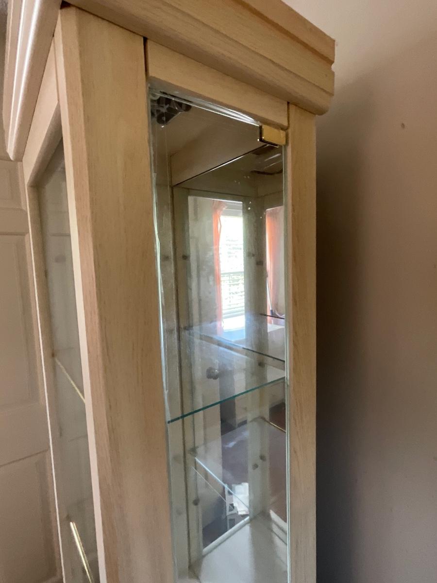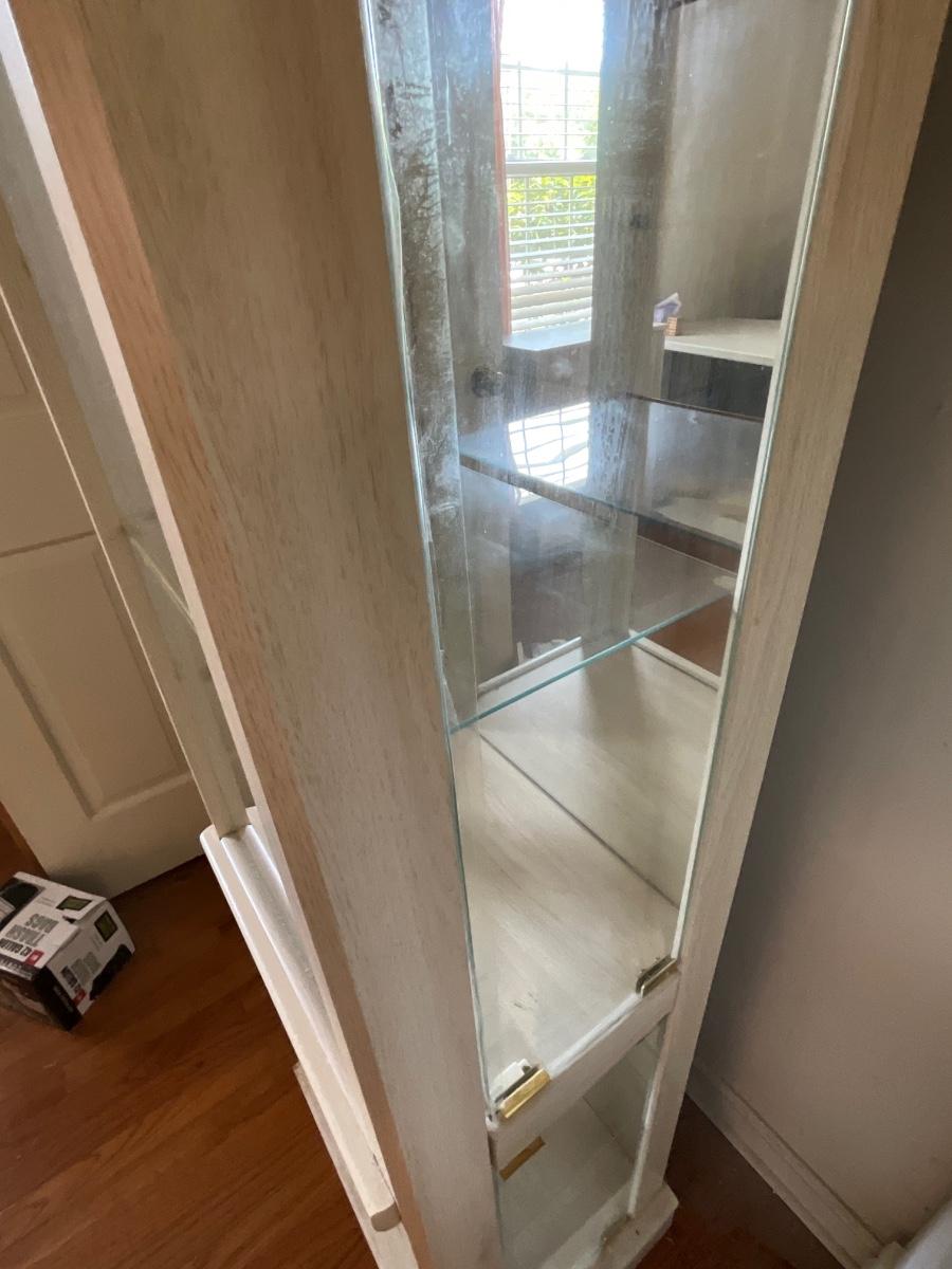 Blone curio cabinet 72x17x13, has tape around edges of doors