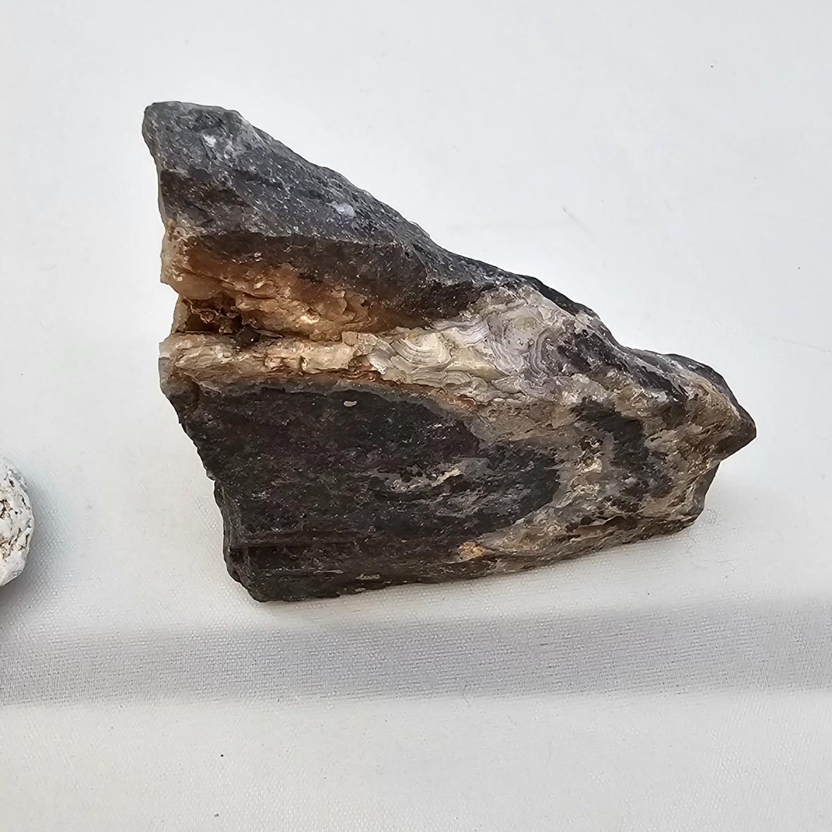 Some finished pieces, some rough and raw. Examples of what appears to be tree agate, chert or flint, bloodstone, angelite, opal and more. All colors and shapes. Largest item is 6" x 4" x 3"H, shortest is 1.5" x 2.5"H. Two items appear to be flint arrowhead. See photos for details. Shipping available. All sales are final. No returns or refunds. Please bid accordingly.