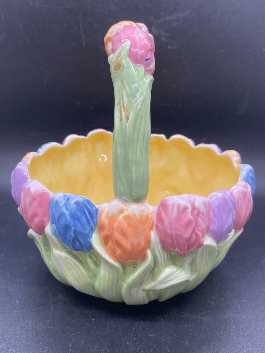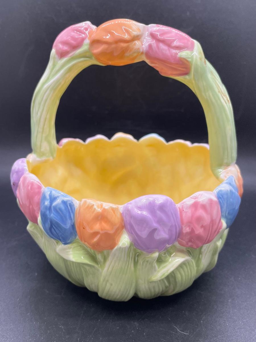 Blossoms & Blooms Springtime Flower Basket Ceramic Bowl