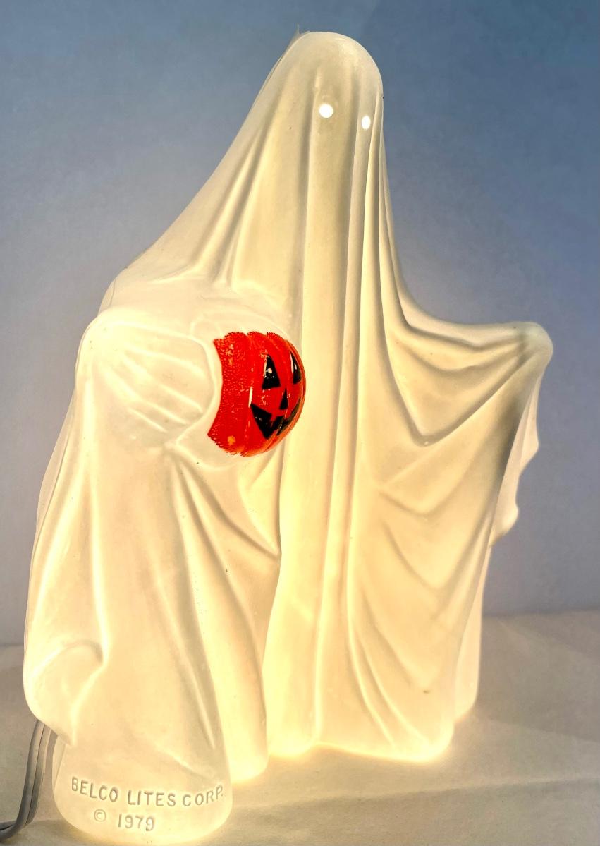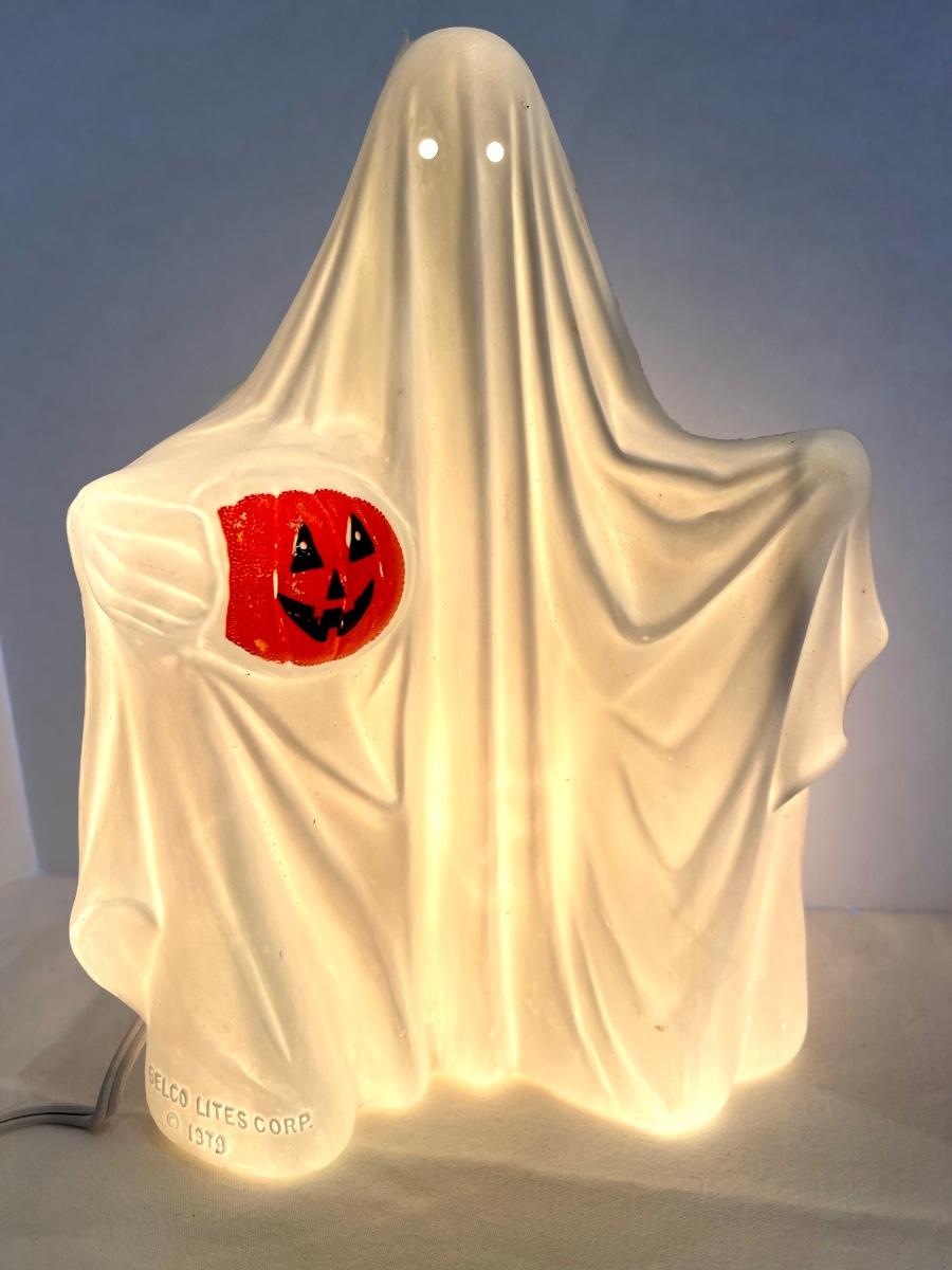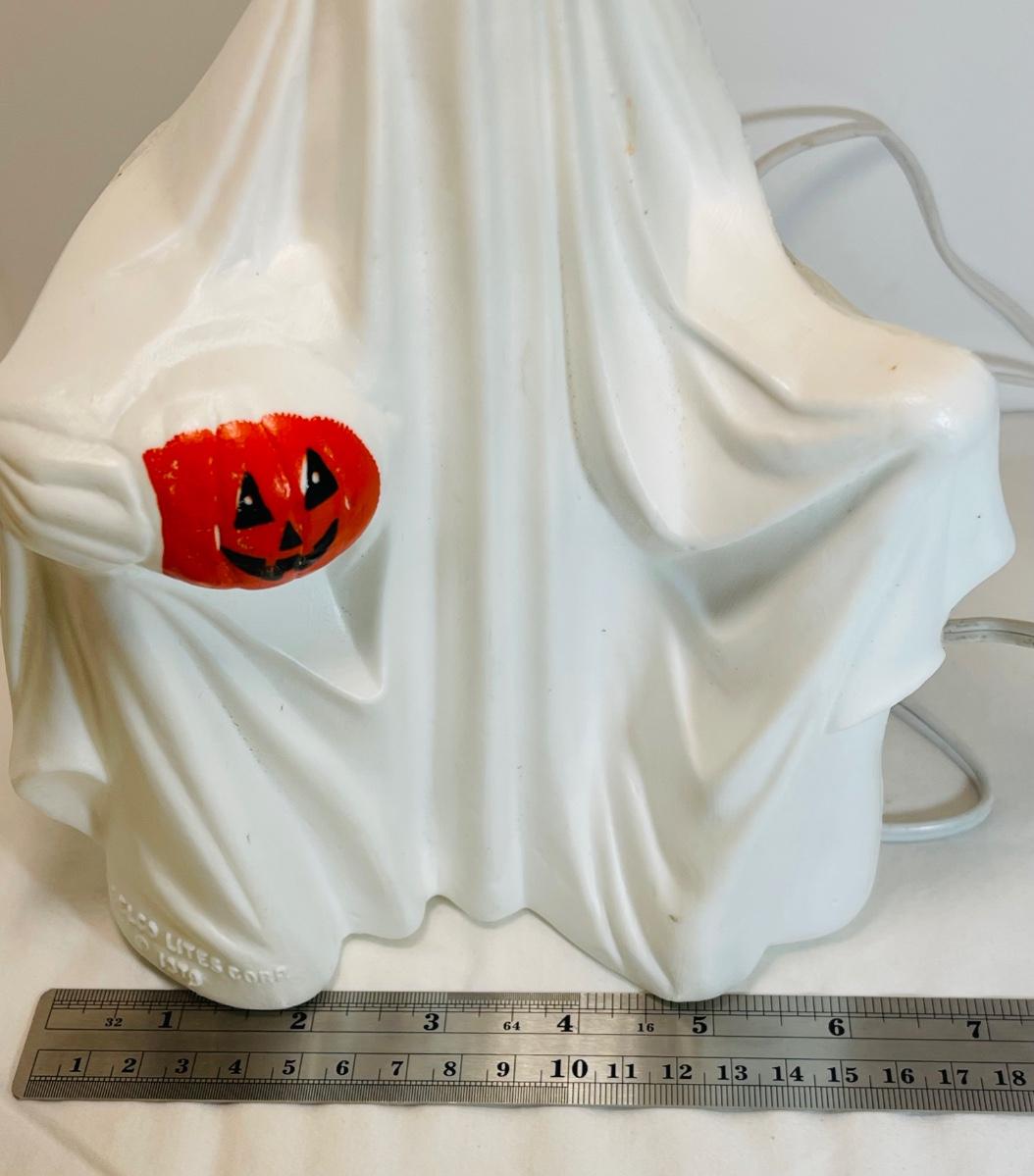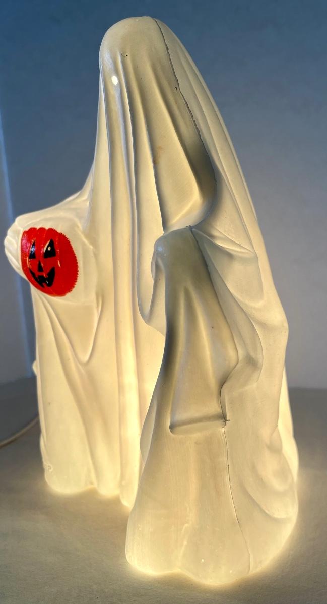 Vintage tabletop ghost blow mold would make cute decor for the fall months. Comes with the bulb and cord. Classic ghost is super cute. 9” tall. Great table top piece.