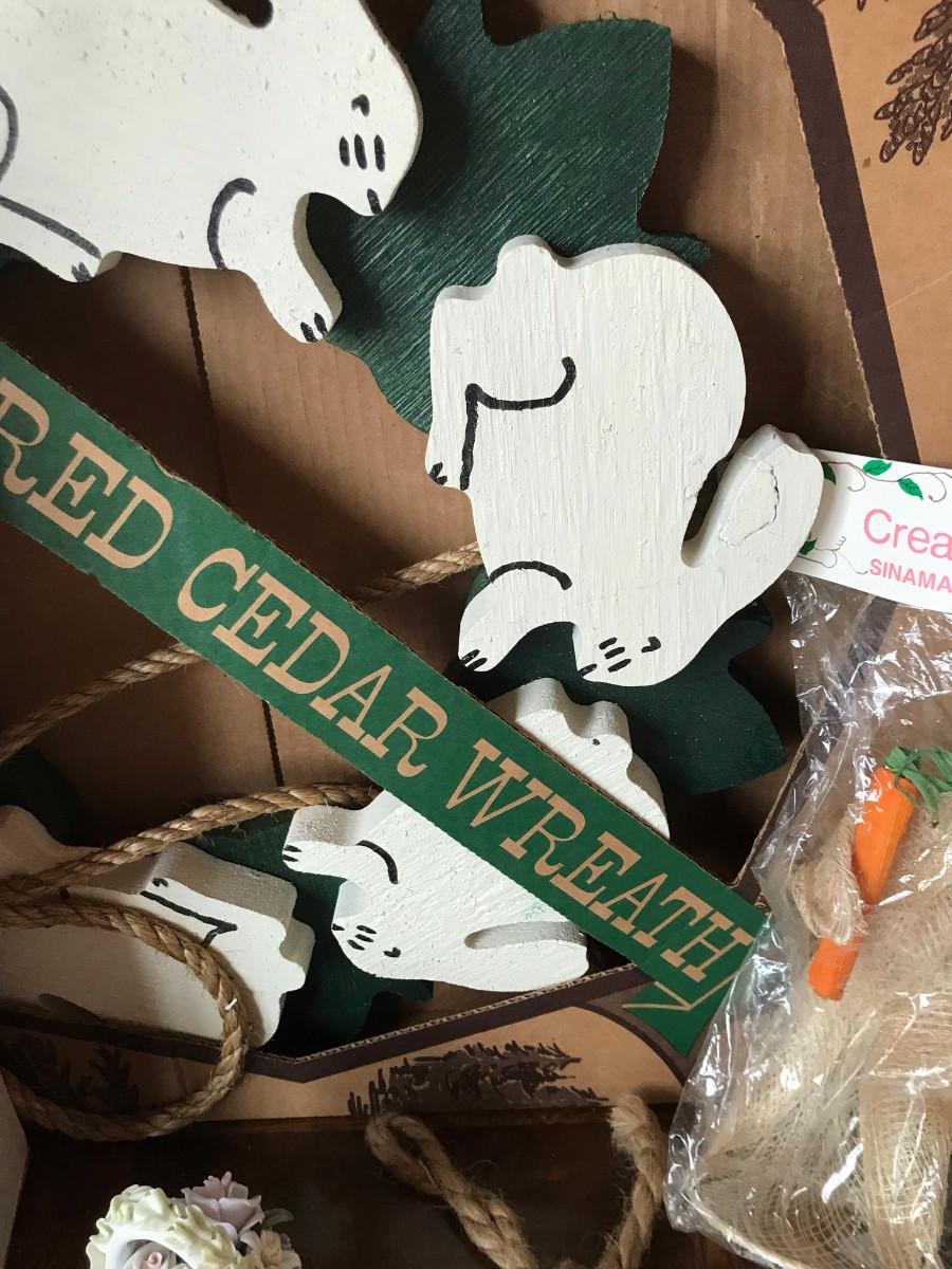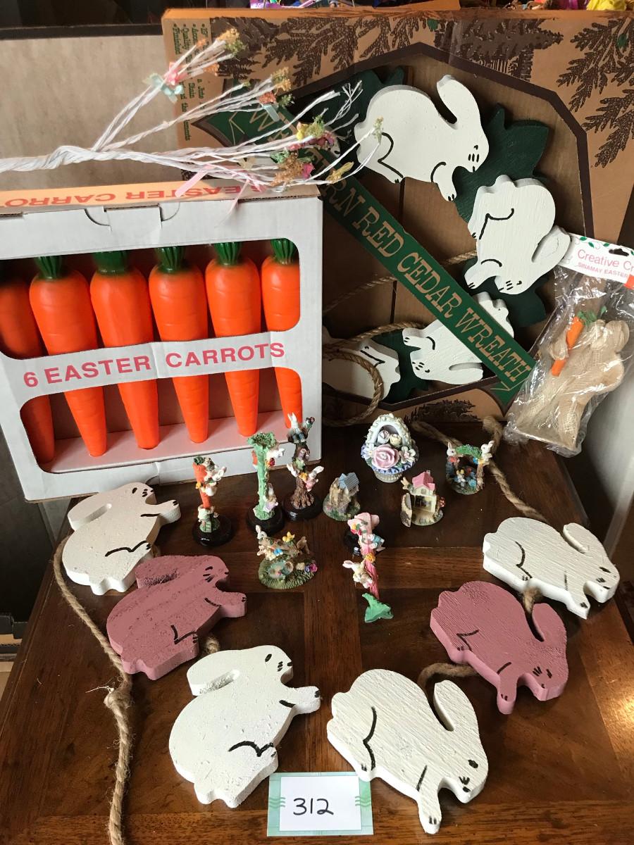 Blow mold Carrots Cedar Wreath & Easter Bunnies