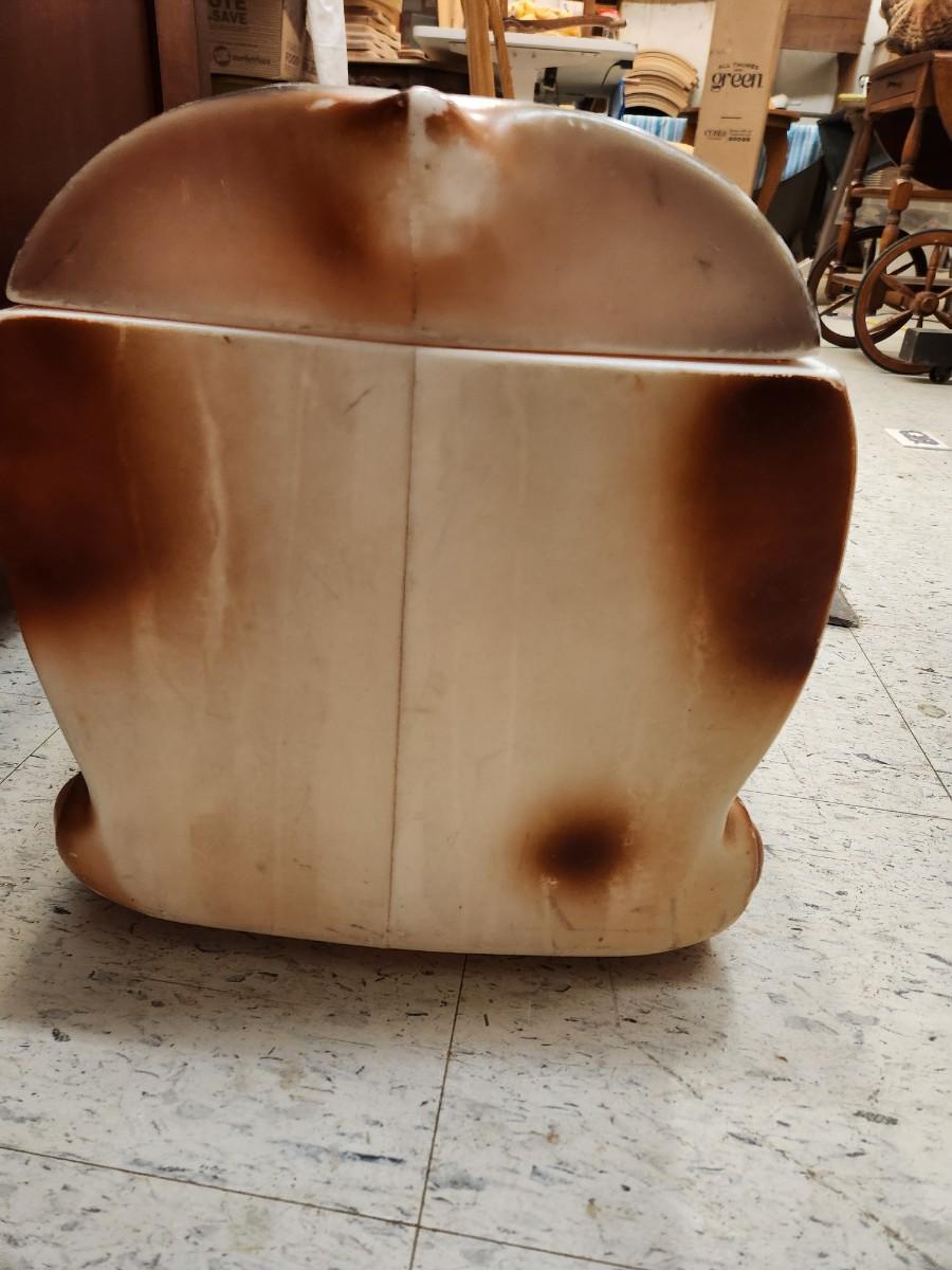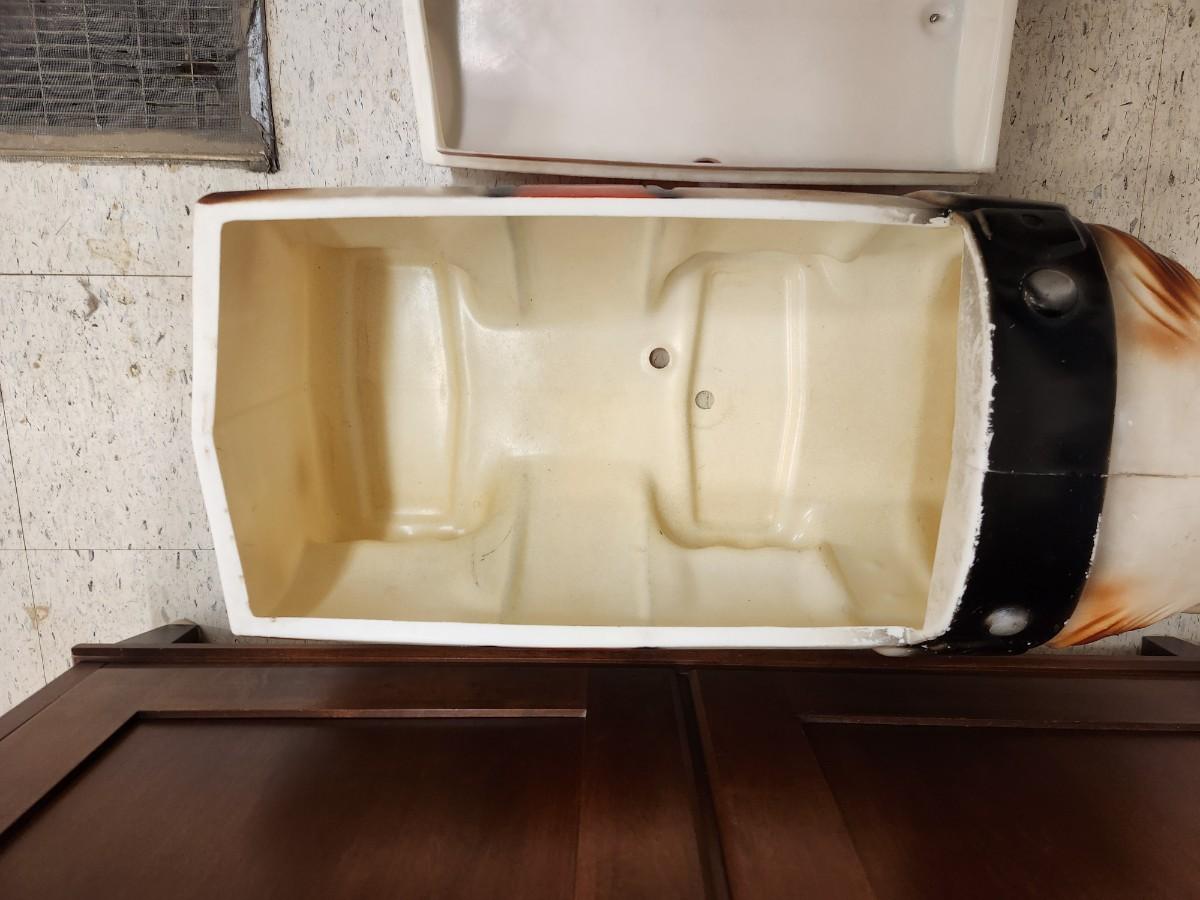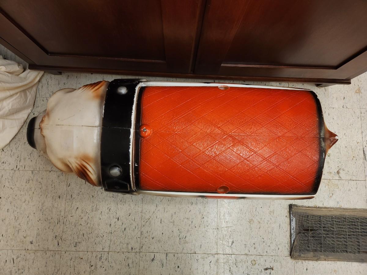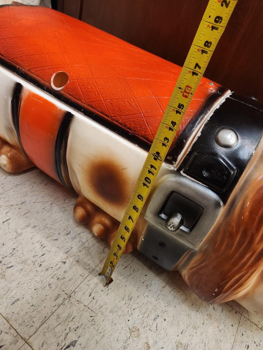Fantastic vintage blowmold puppy toy box. This fantastic toy box is extremely unusual, I could only find this mold in a small desk lamp. Really great example of blow mold! This is available to touch and see at the shop.