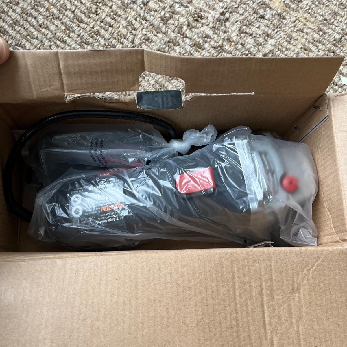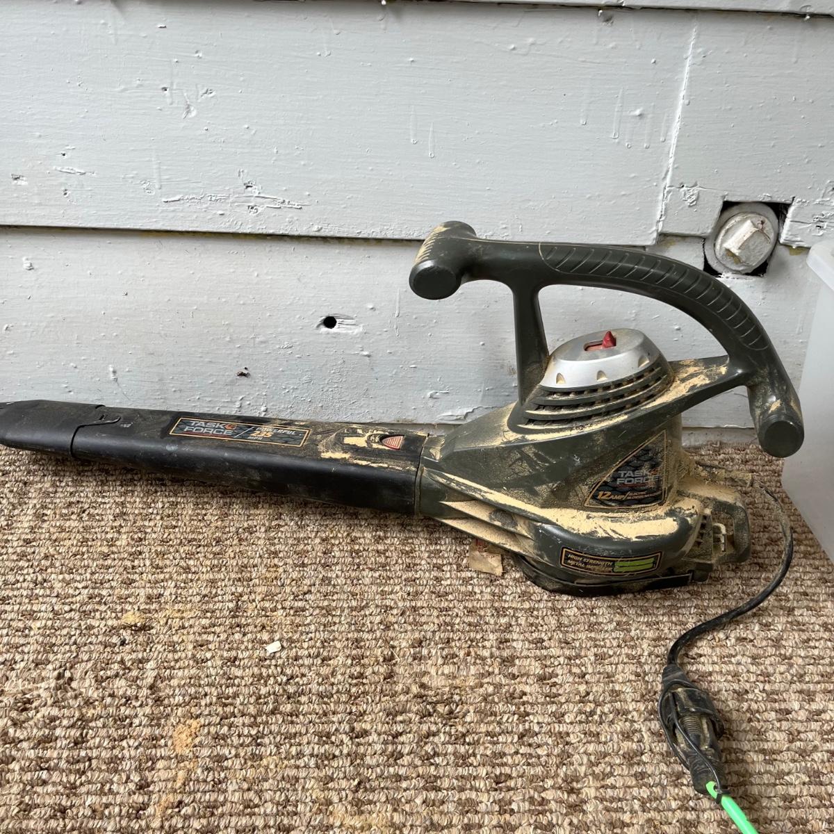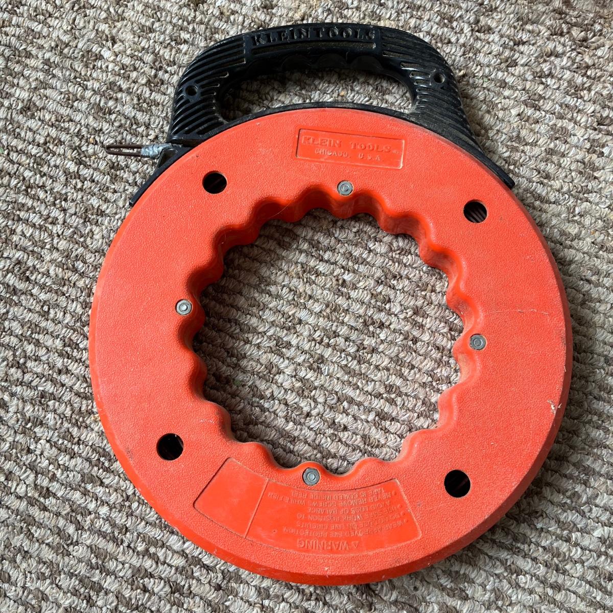 Lot includes a Task Force model # 4106 electric blower, Drill Master 4 1/2” angle grinder NIB, Klein Tools flat steel fish tape, Black and Decker drill bits and more. Grinder and blower worked when tested.