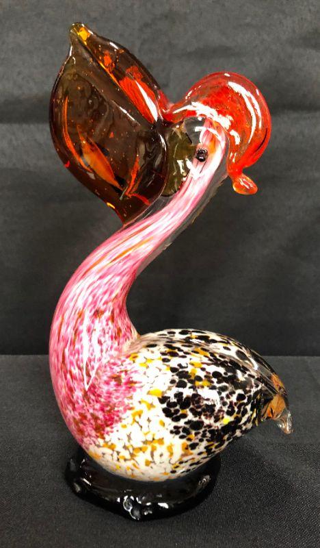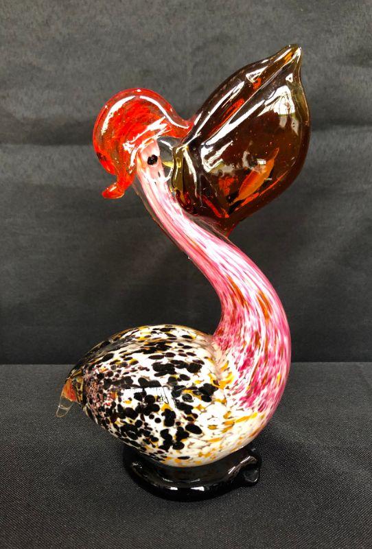 Beautiful multicolored art glass pelican. Heavy blown glass, unsigned.
