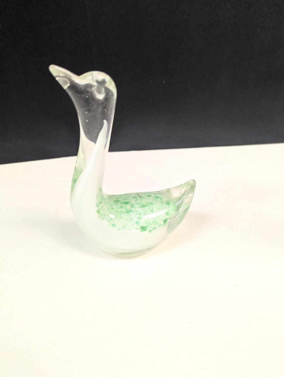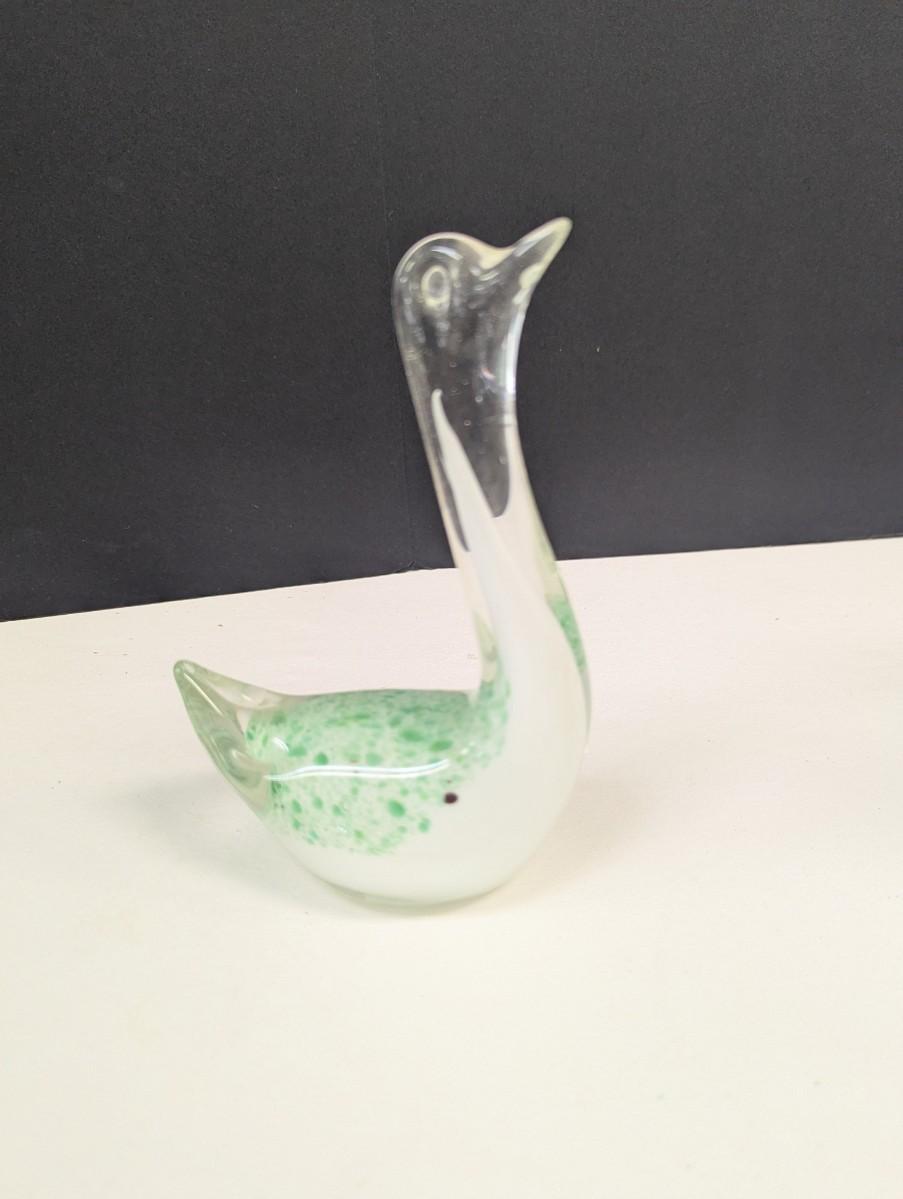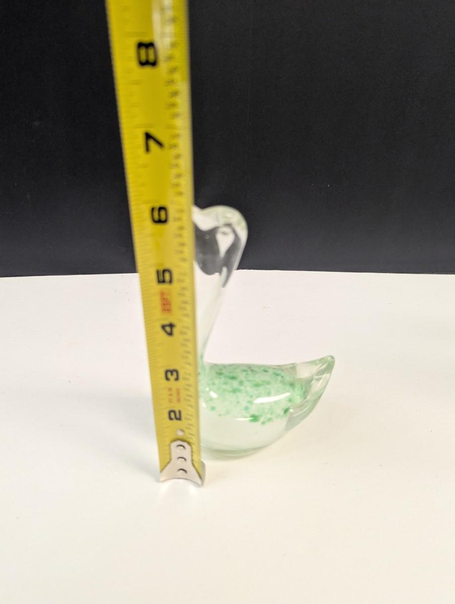 Blown Art Glass Swan Figurine With Summerso Blue & White