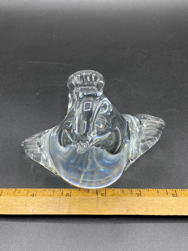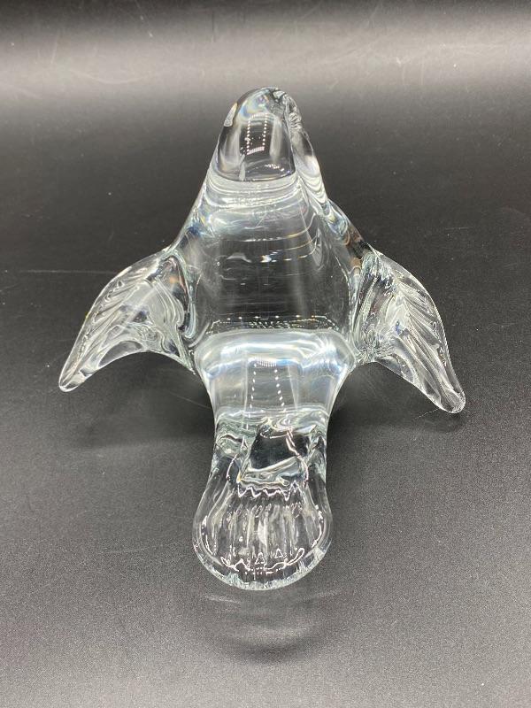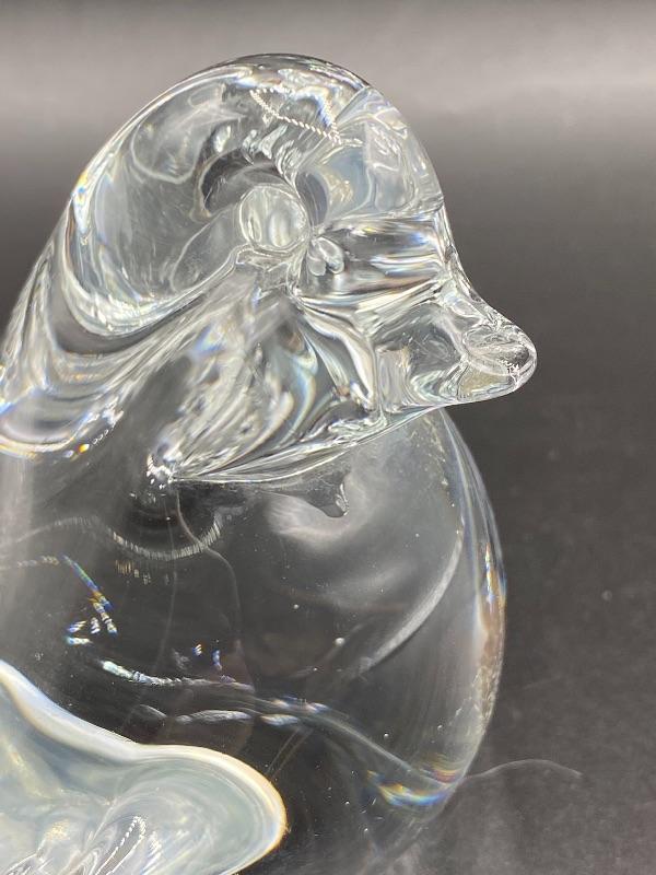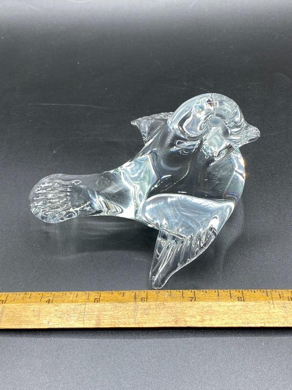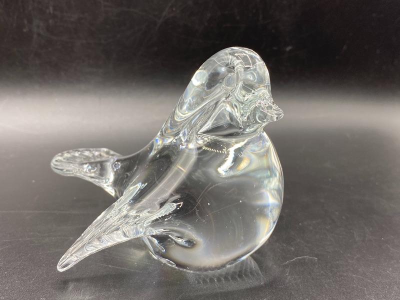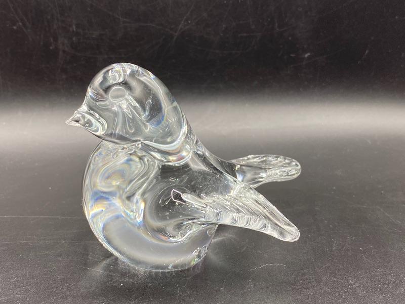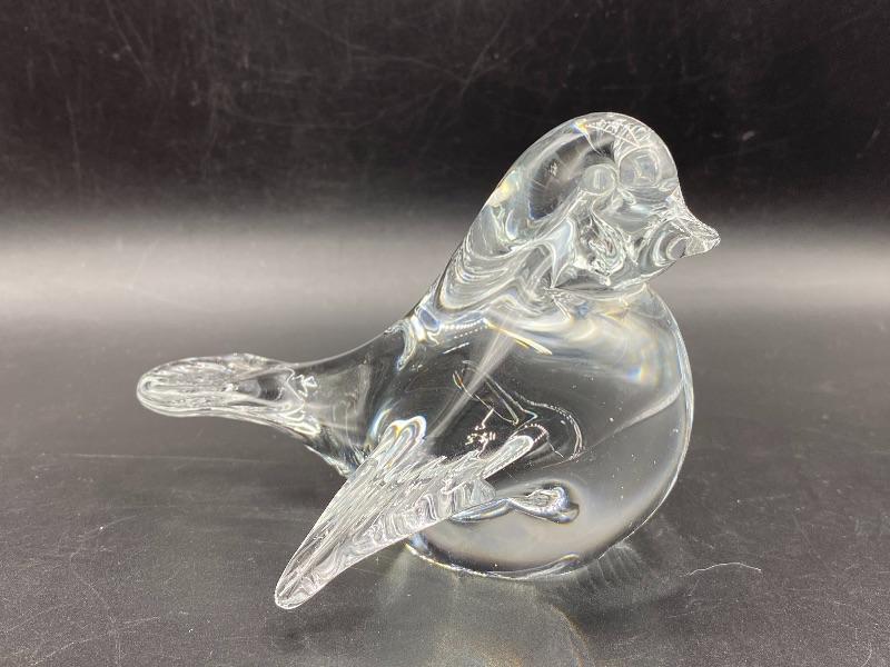 Blown glass bird paperweight. Clear glass. About 5" size. Good condition, no chips.