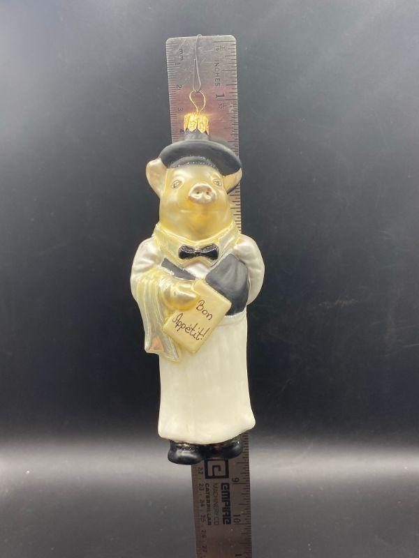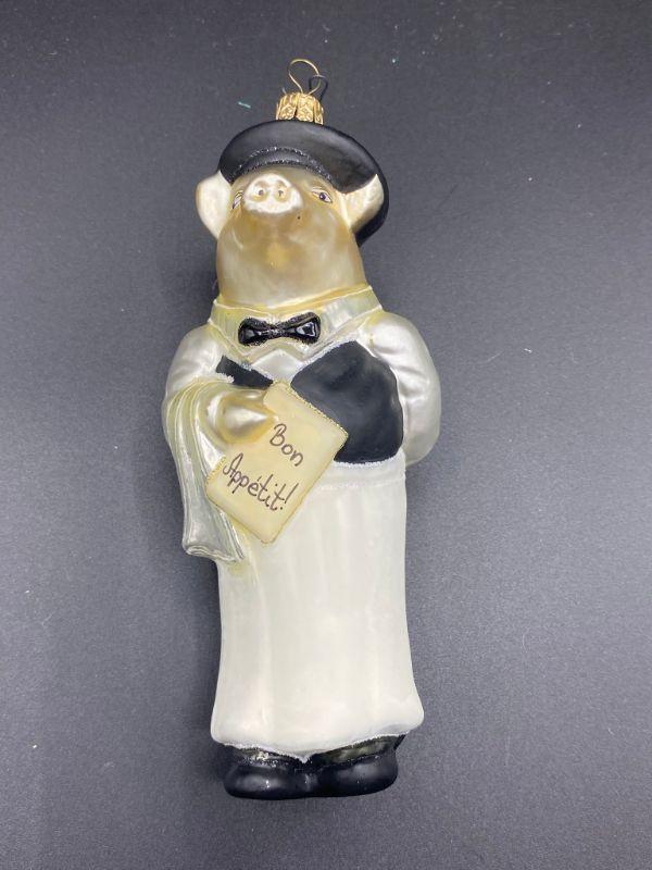 Blown Glass Bon Appetit Waiter Pig Ornament