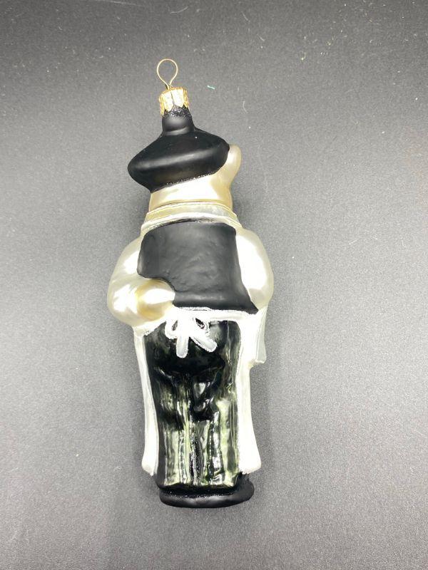 Blown glass waiter pig ornament. Conversation piece for the Christmas tree.