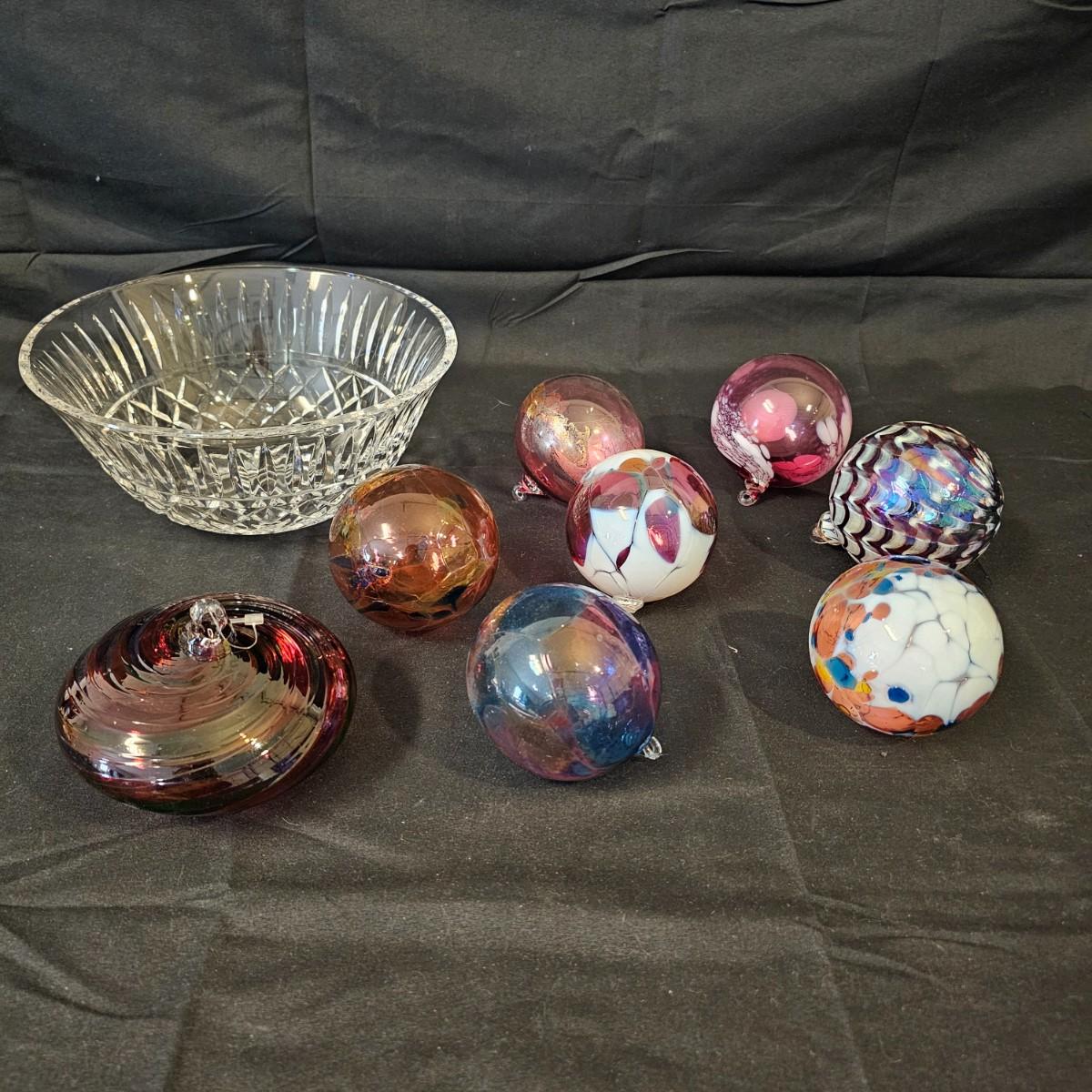 Blown Glass Ornaments & Waterford Bowl (L-JS)