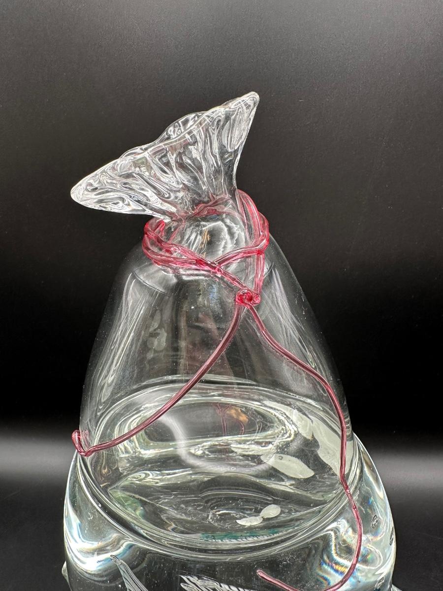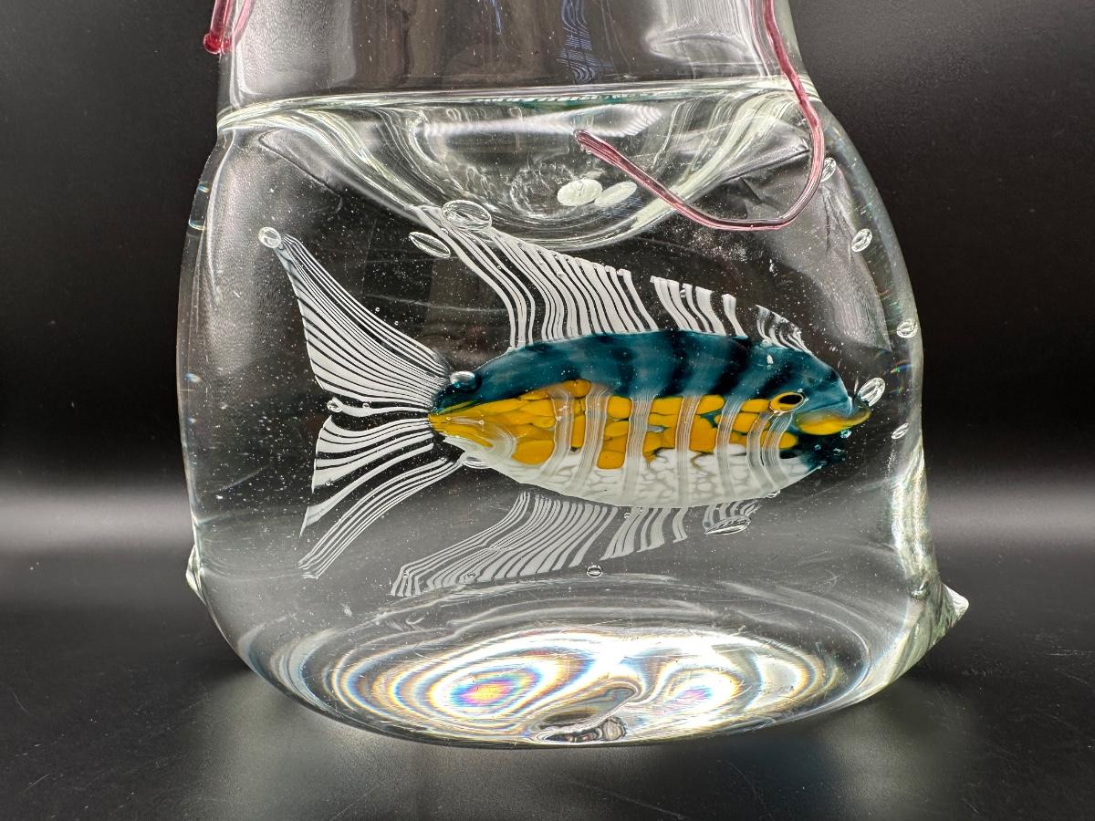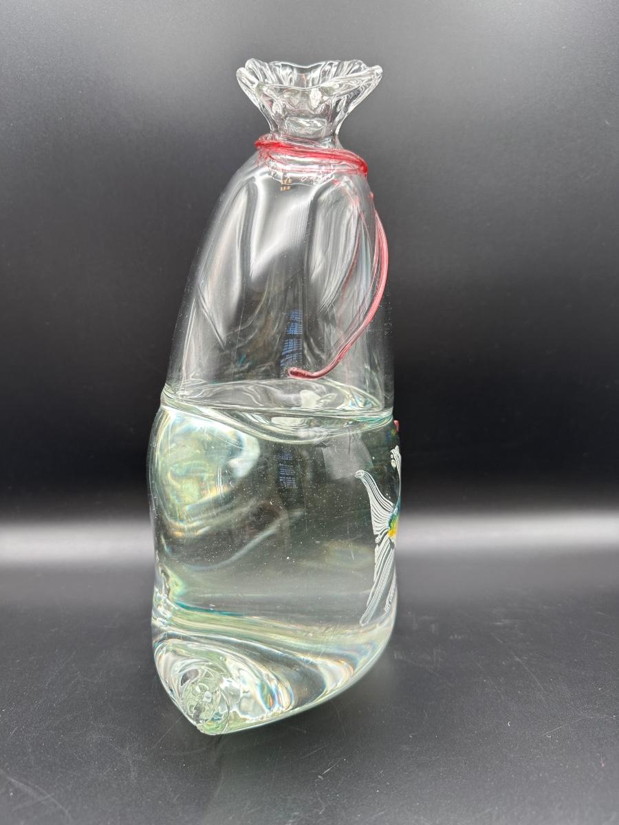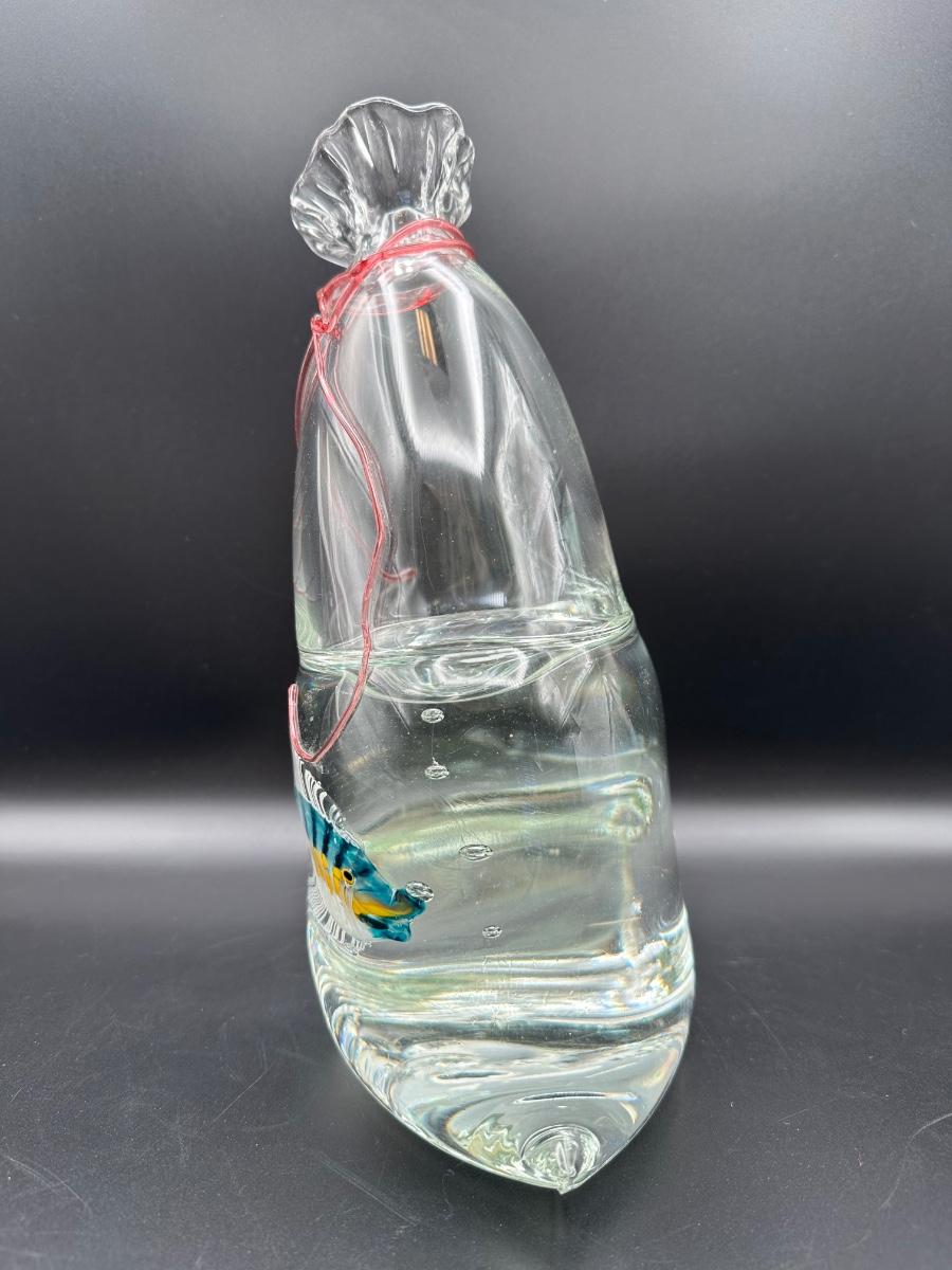Blown glass “fish bag”. It has an opening in the top that could hold something.