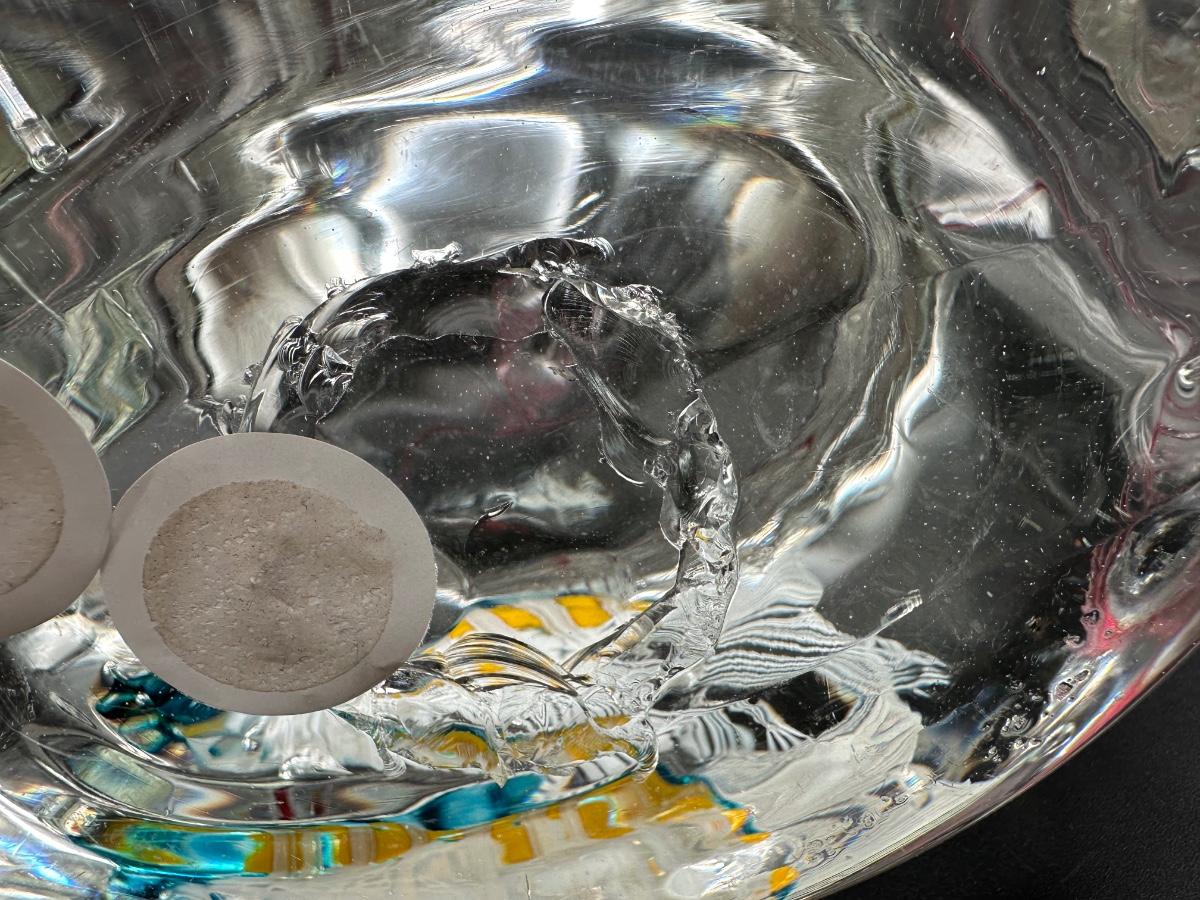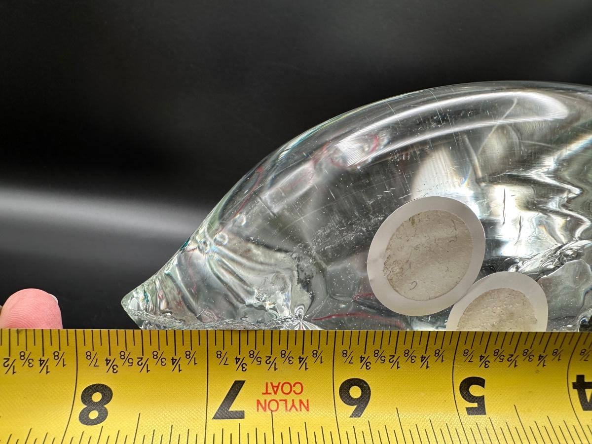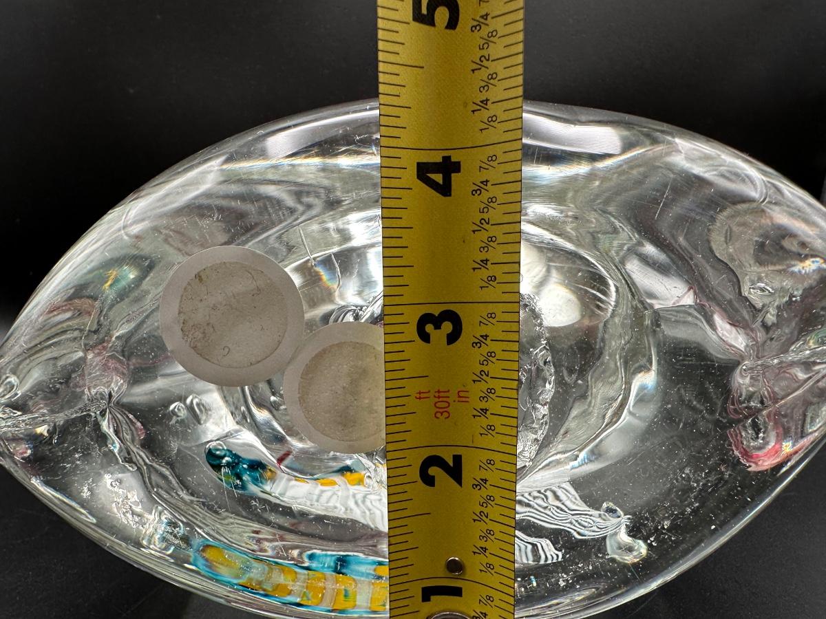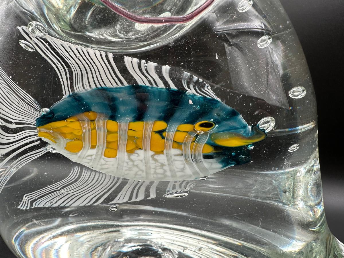 Blown glass “fish bag”. It has an opening in the top that could hold something.