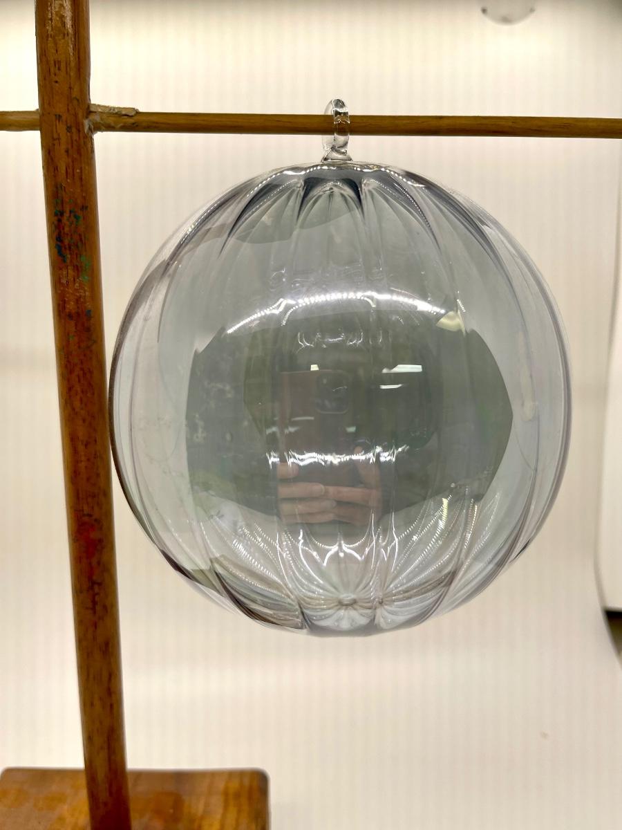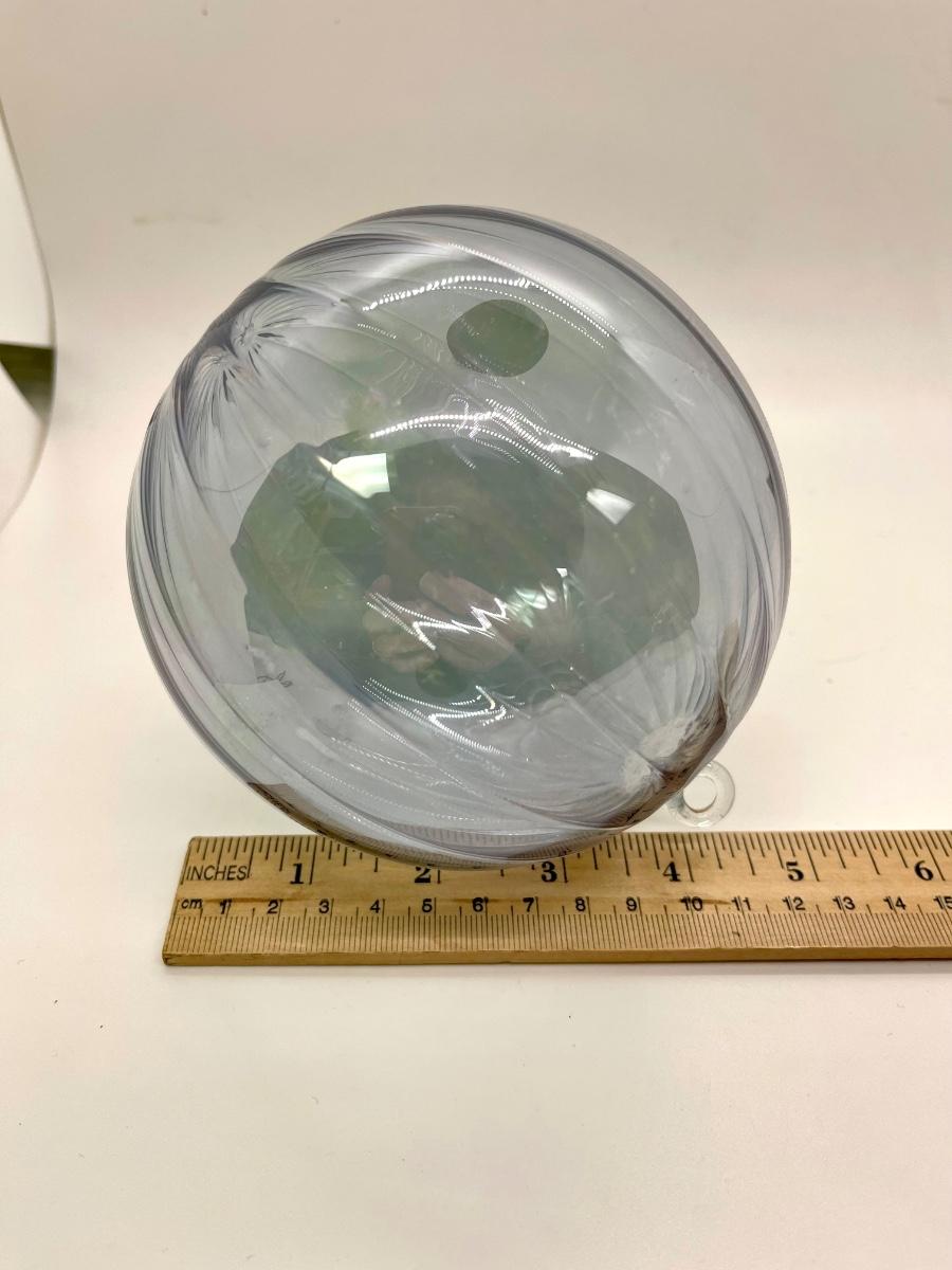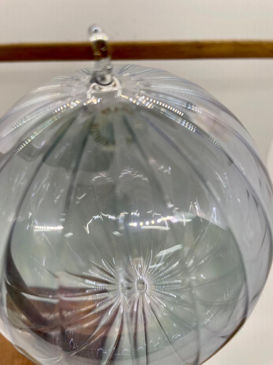 Ribbed Blown Glass Globe Ornament Orb Blue Gray Large 4 1/2” Dia.
