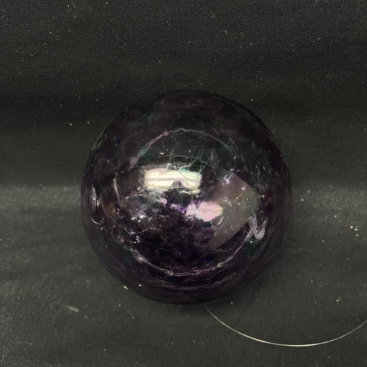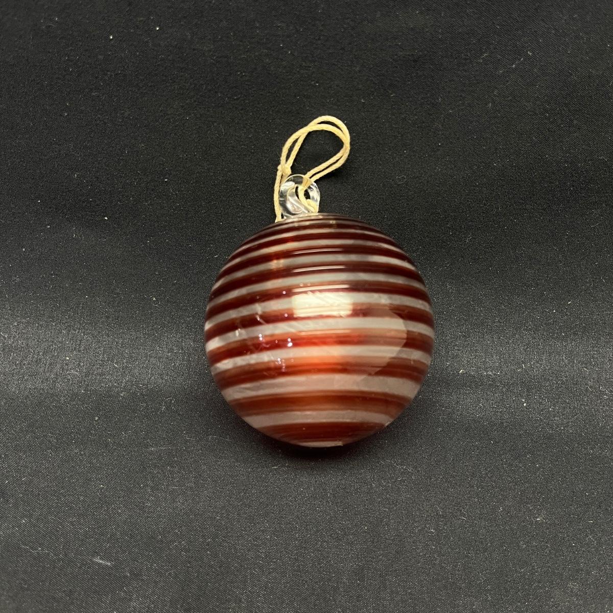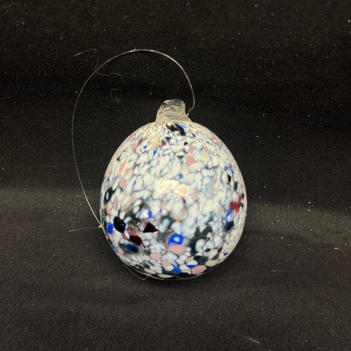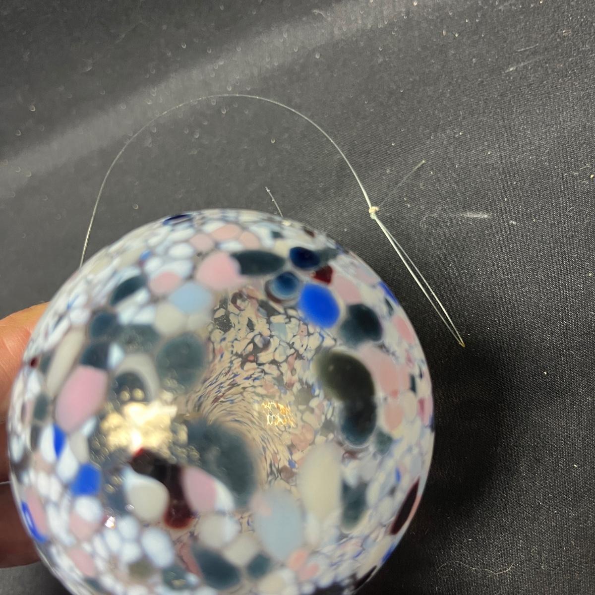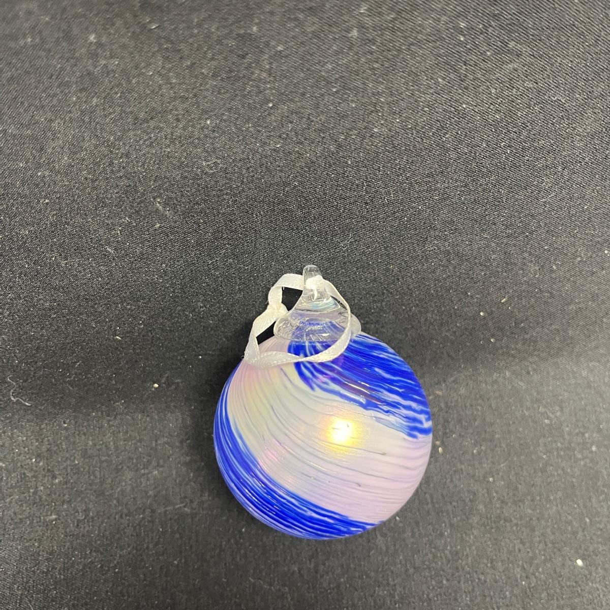 Lot includes five blown glass ornaments with the largest measuring 4"D. All have strings to hang them.