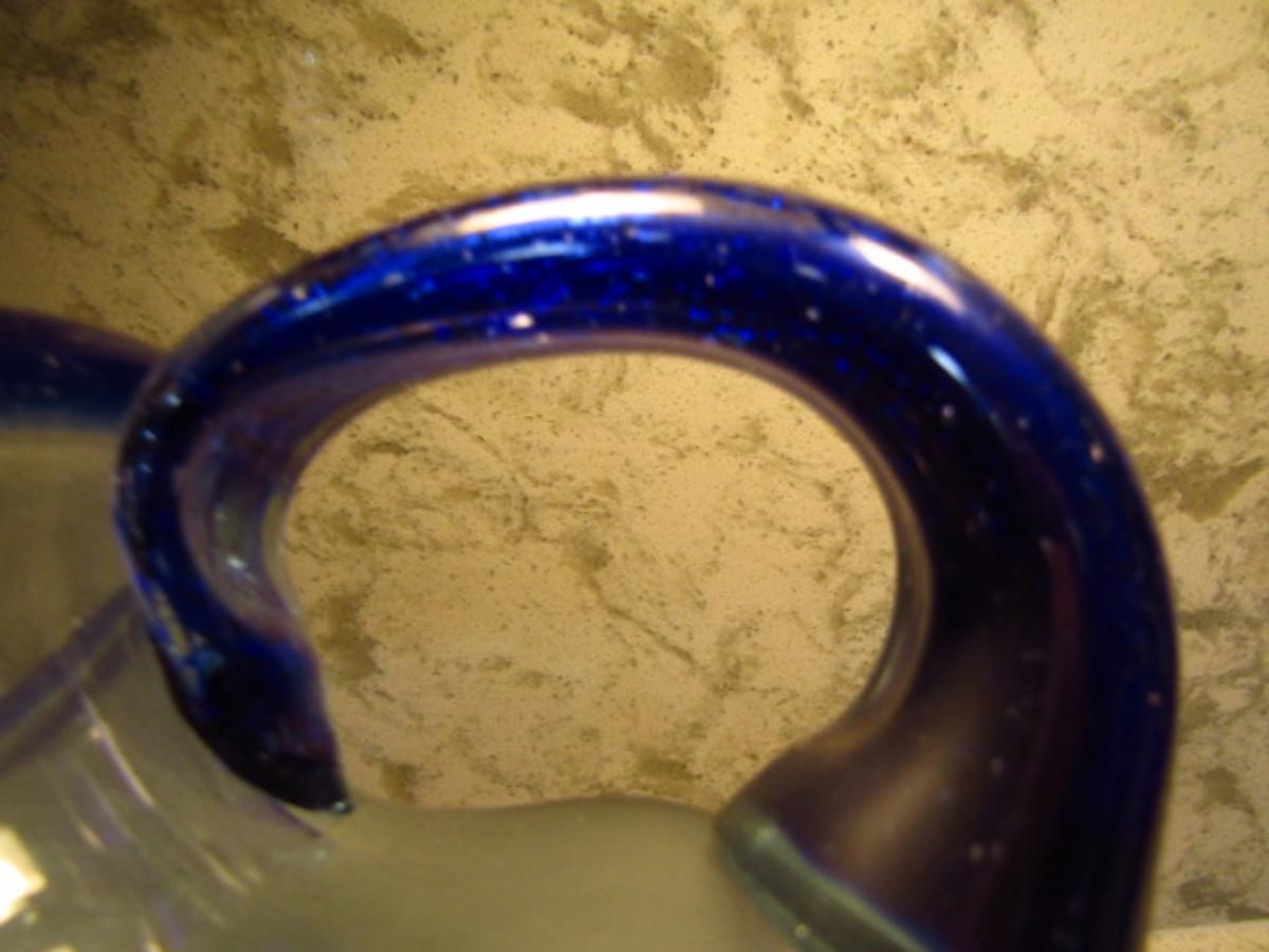 Blown Glass Pitchers- Clear and Cobalt Blue with Inclusions (K)