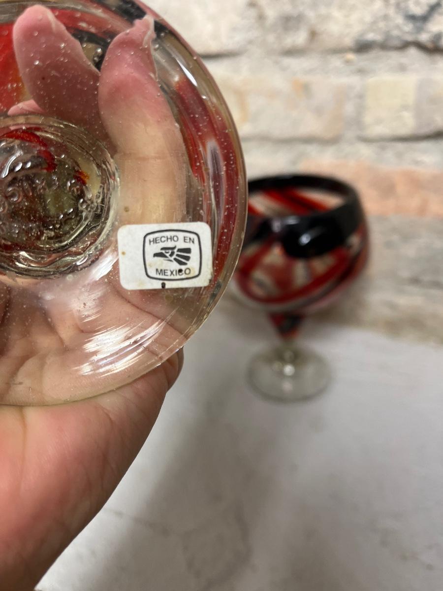 Stunning set of sangria pitcher and six swirl pattern glasses. Made in Mexico