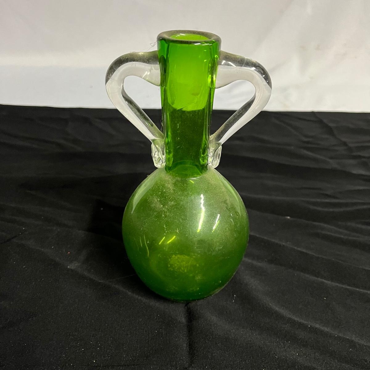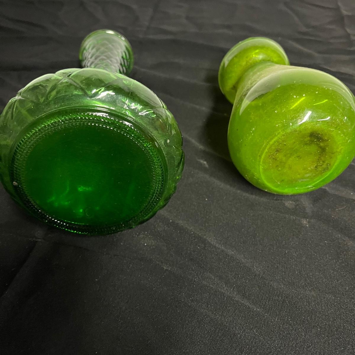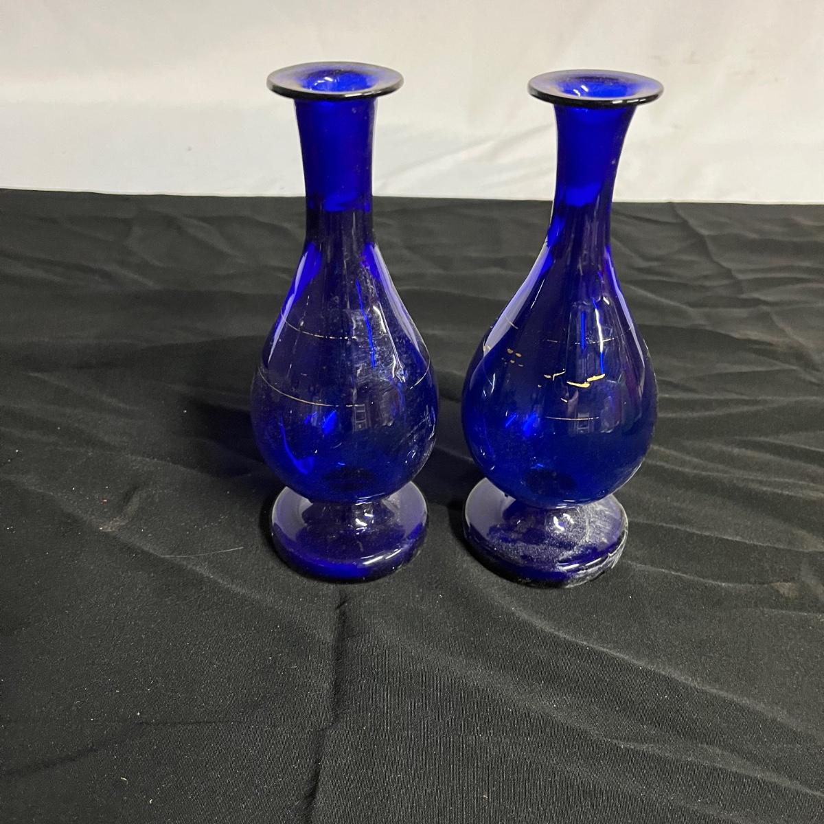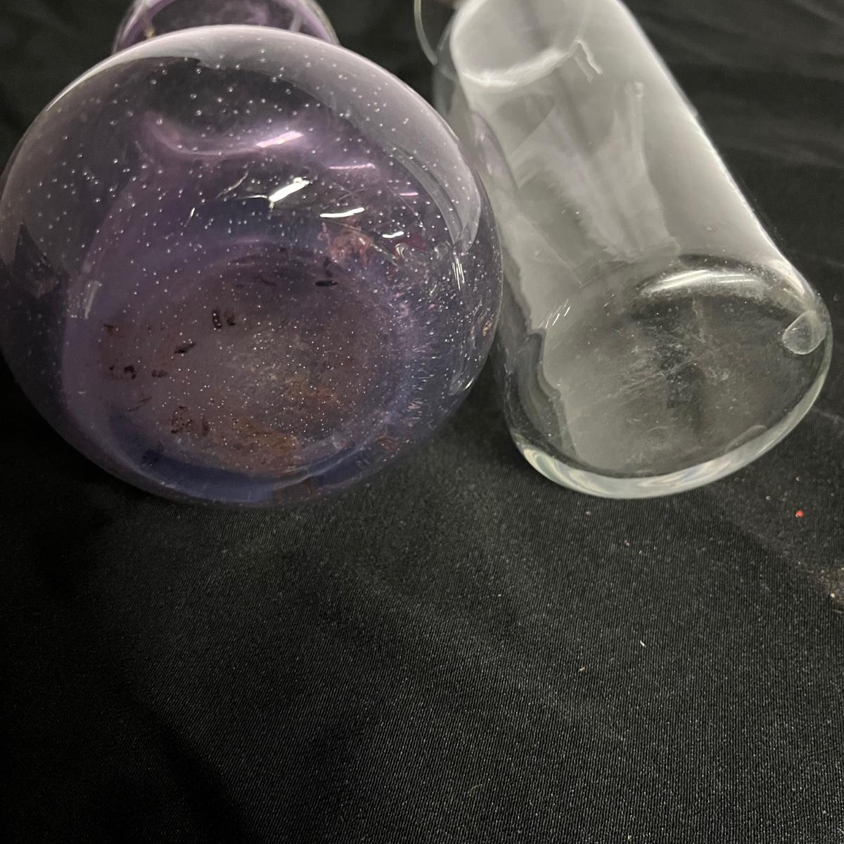 Lot includes two blue and one green blown glass vase, six clear bulb vases, purple and green bulb vases, crackled glass vase and more.