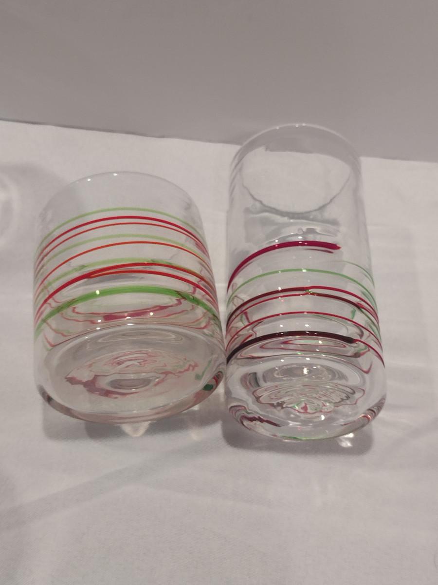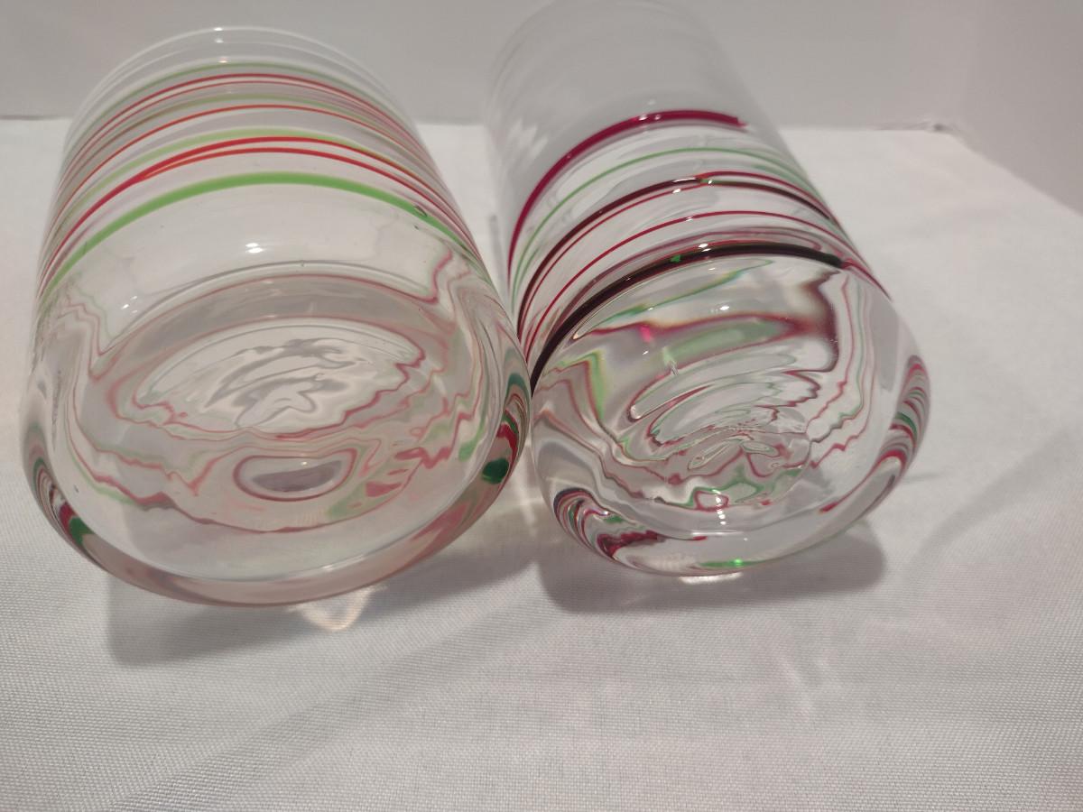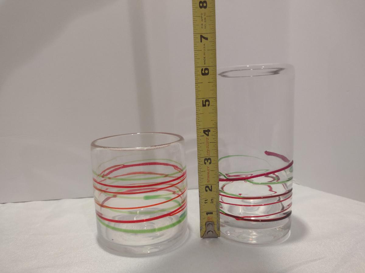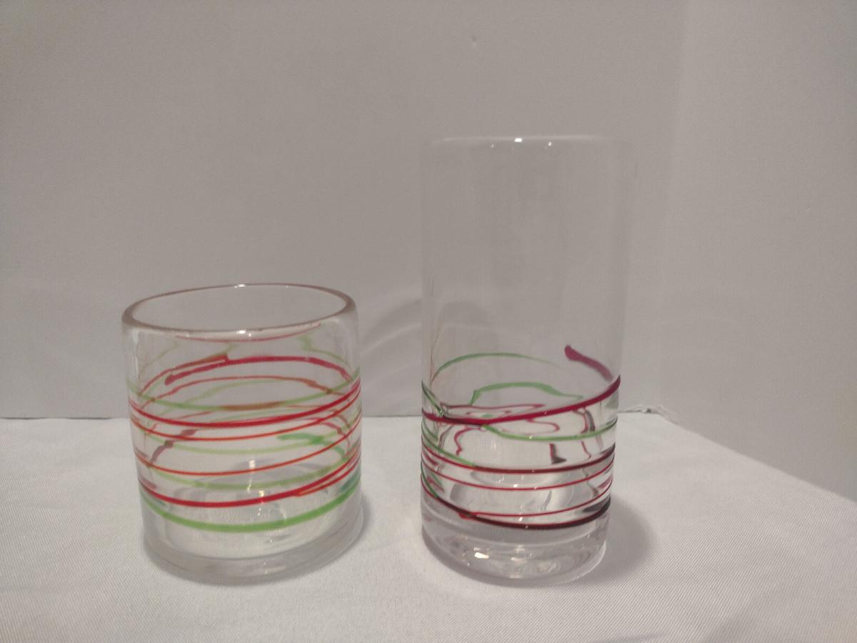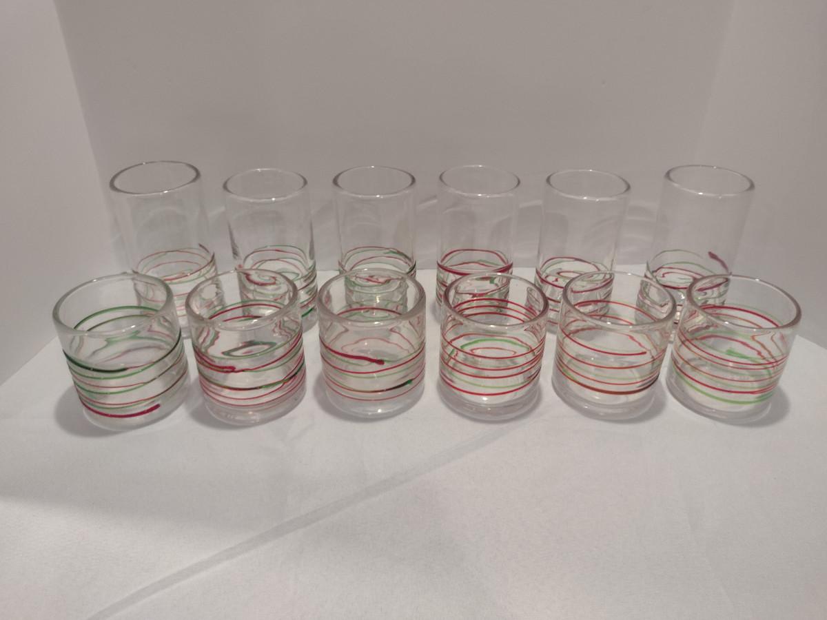 Blown Glasses with Red and Green Swirl- 6 of Each Highball and Lowball- One Dozen Pieces Total