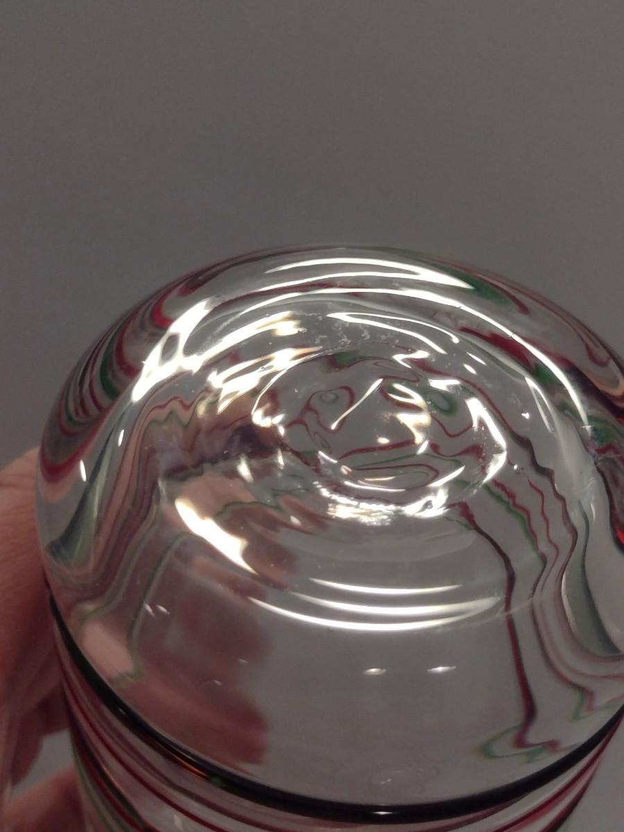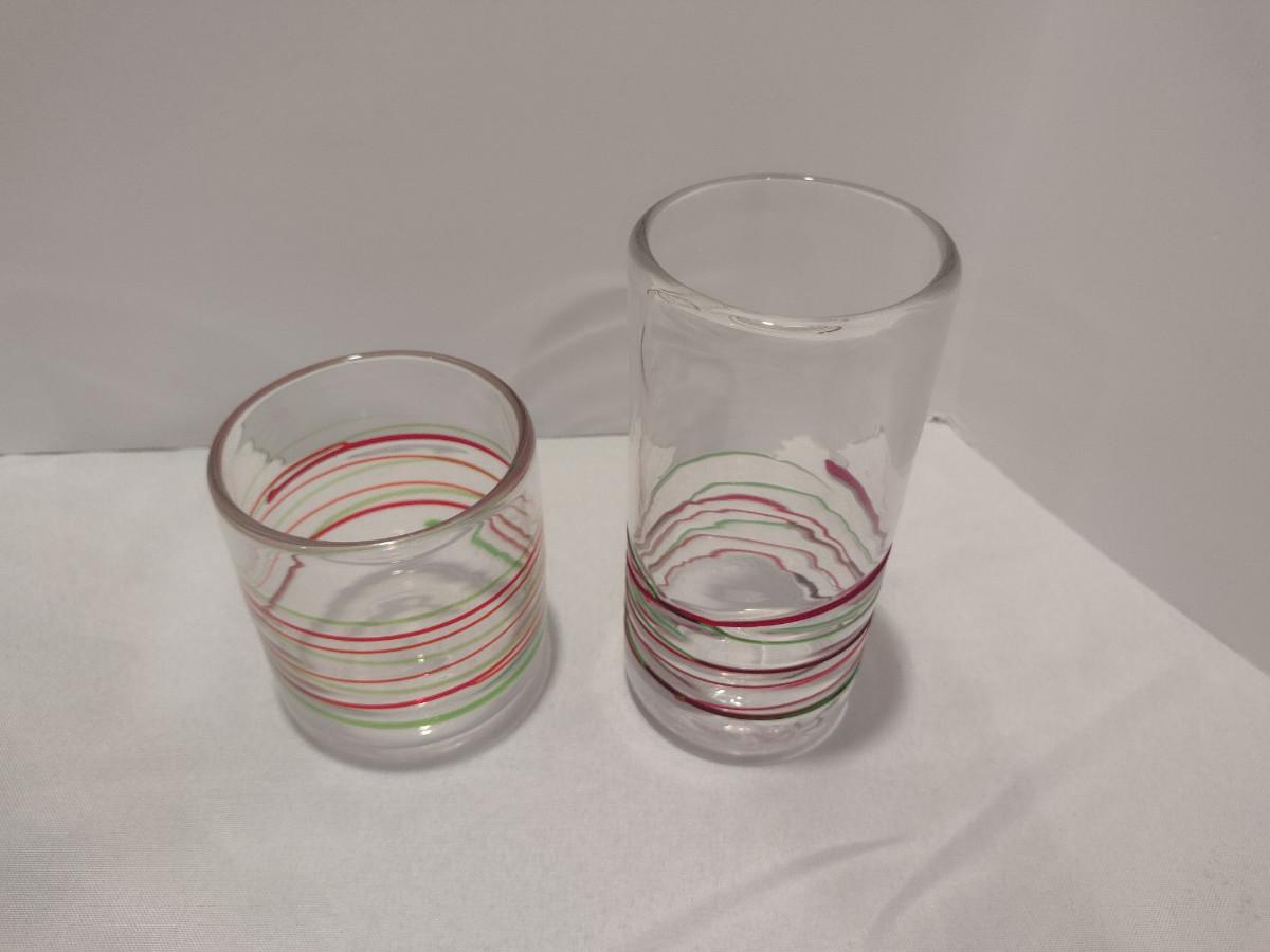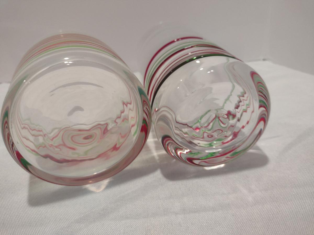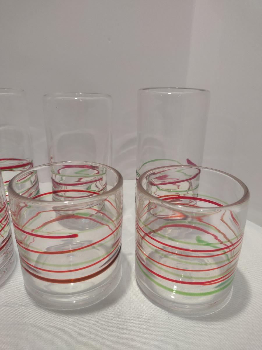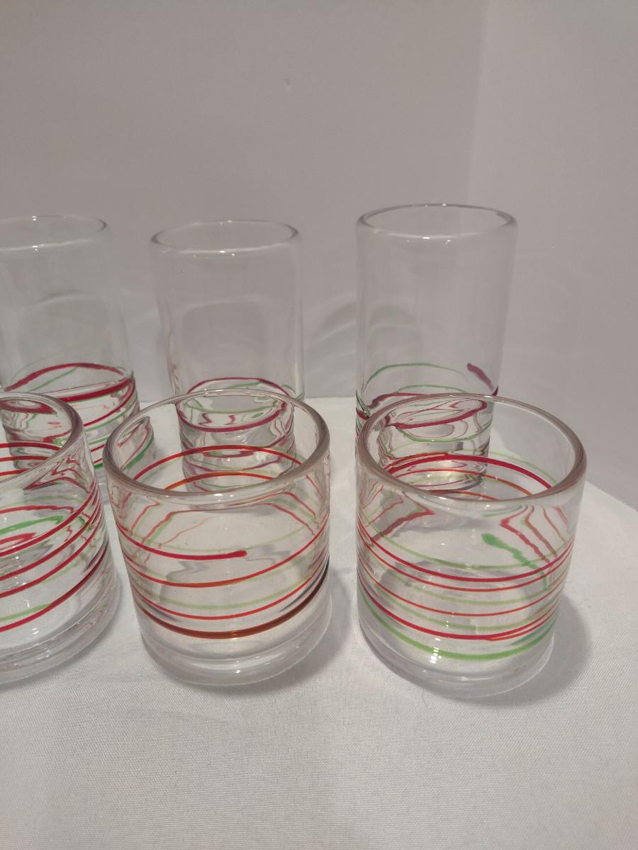 Blown Glasses with Red and Green Swirl- 6 of Each Highball and Lowball- One Dozen Pieces Total