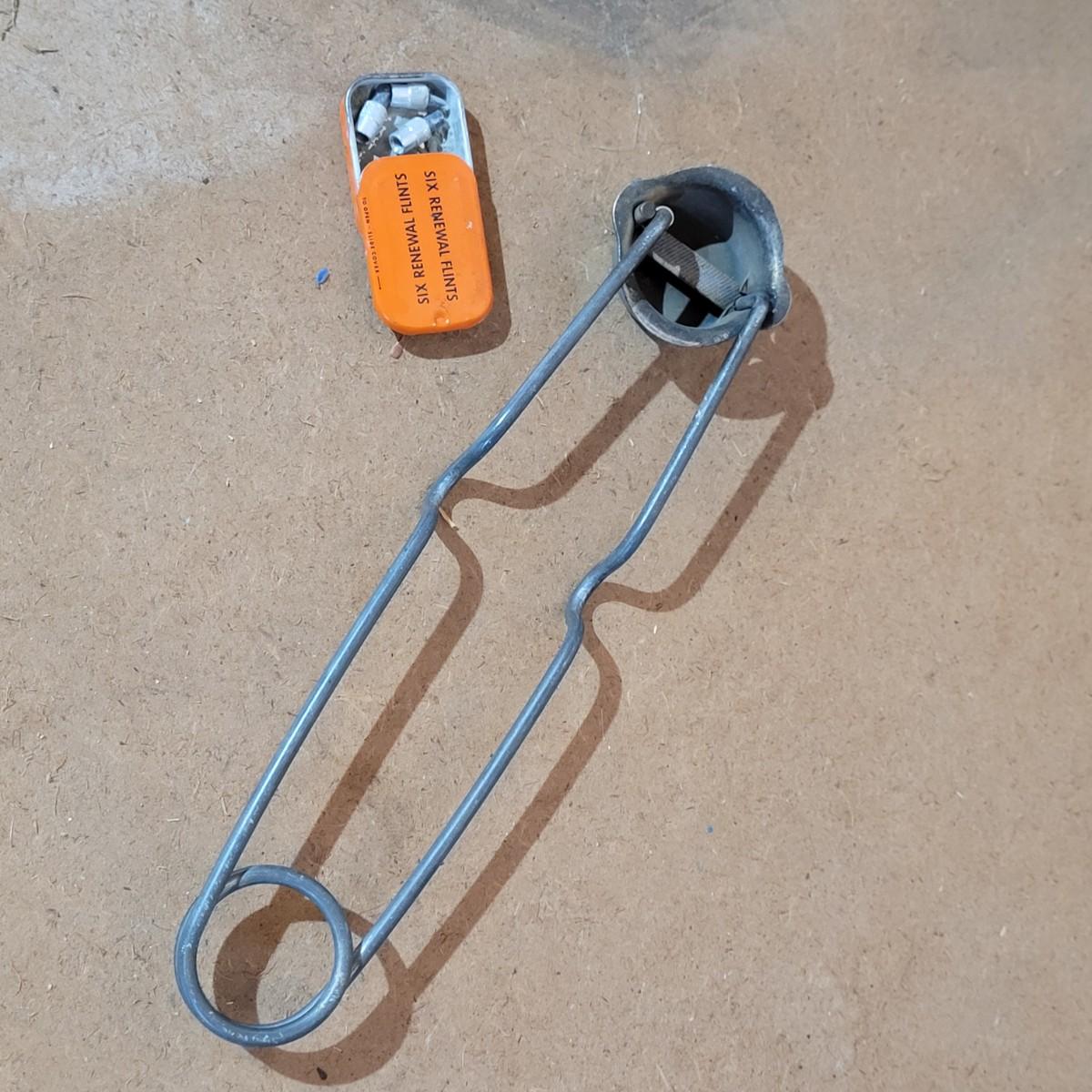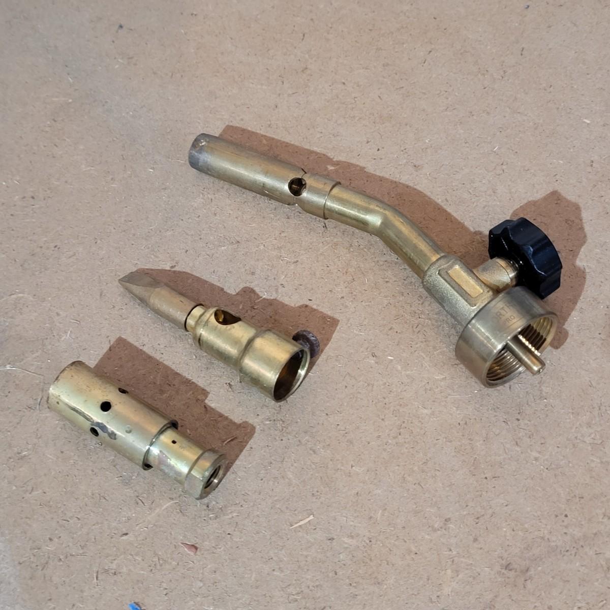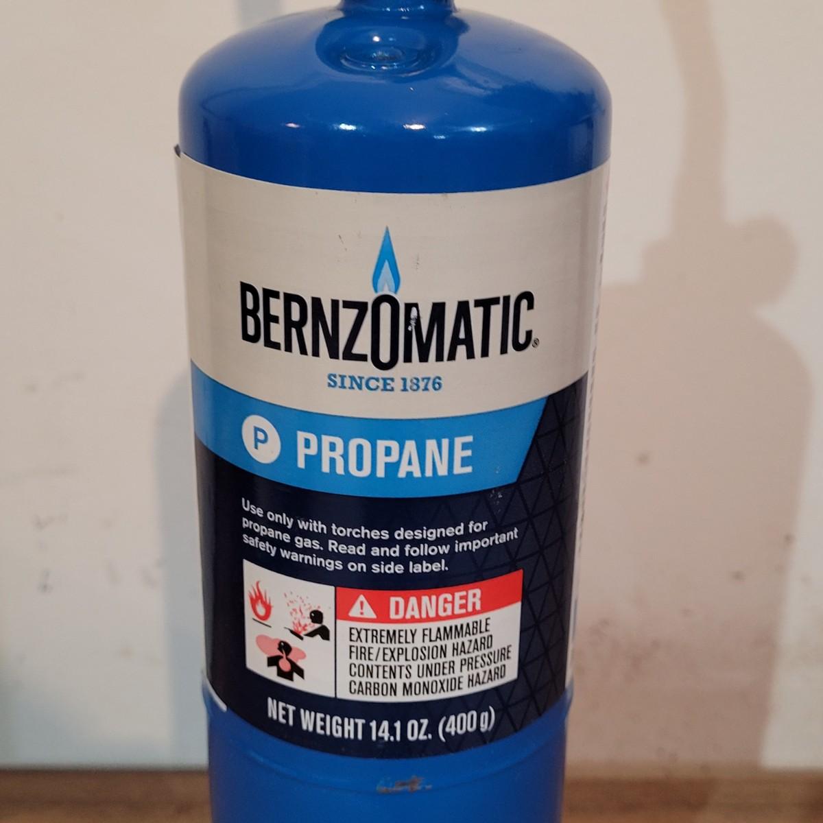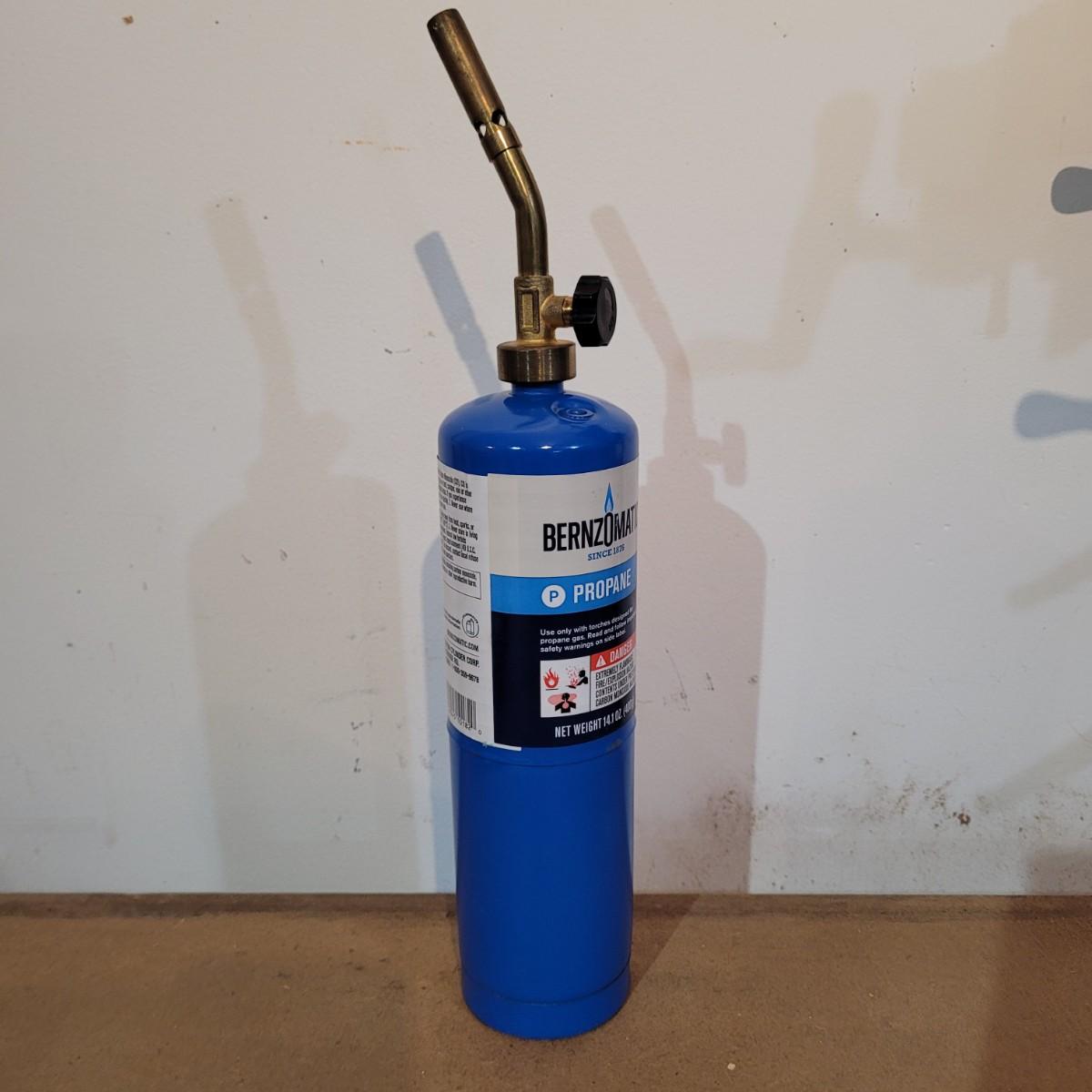 Bernzomatic propane blowtorch kit with carrying case. Torch ignited when tested. Includes various nozzles and attachments. Also includes flint and steel with extra flints. Case is made from metal and measures 11" x 8" x 4"H and contains original paperwork.