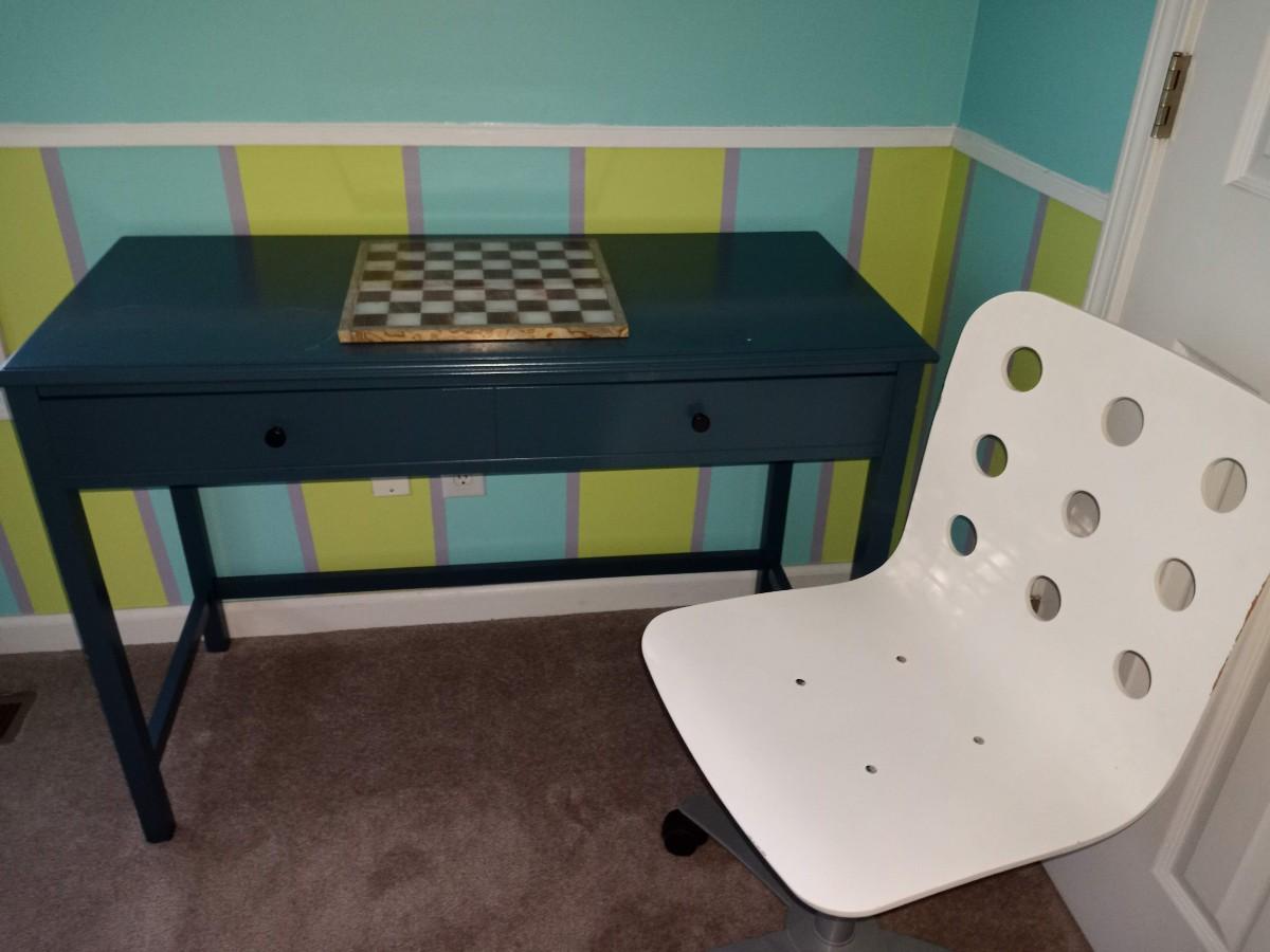Blue 2 drawer entry table desk