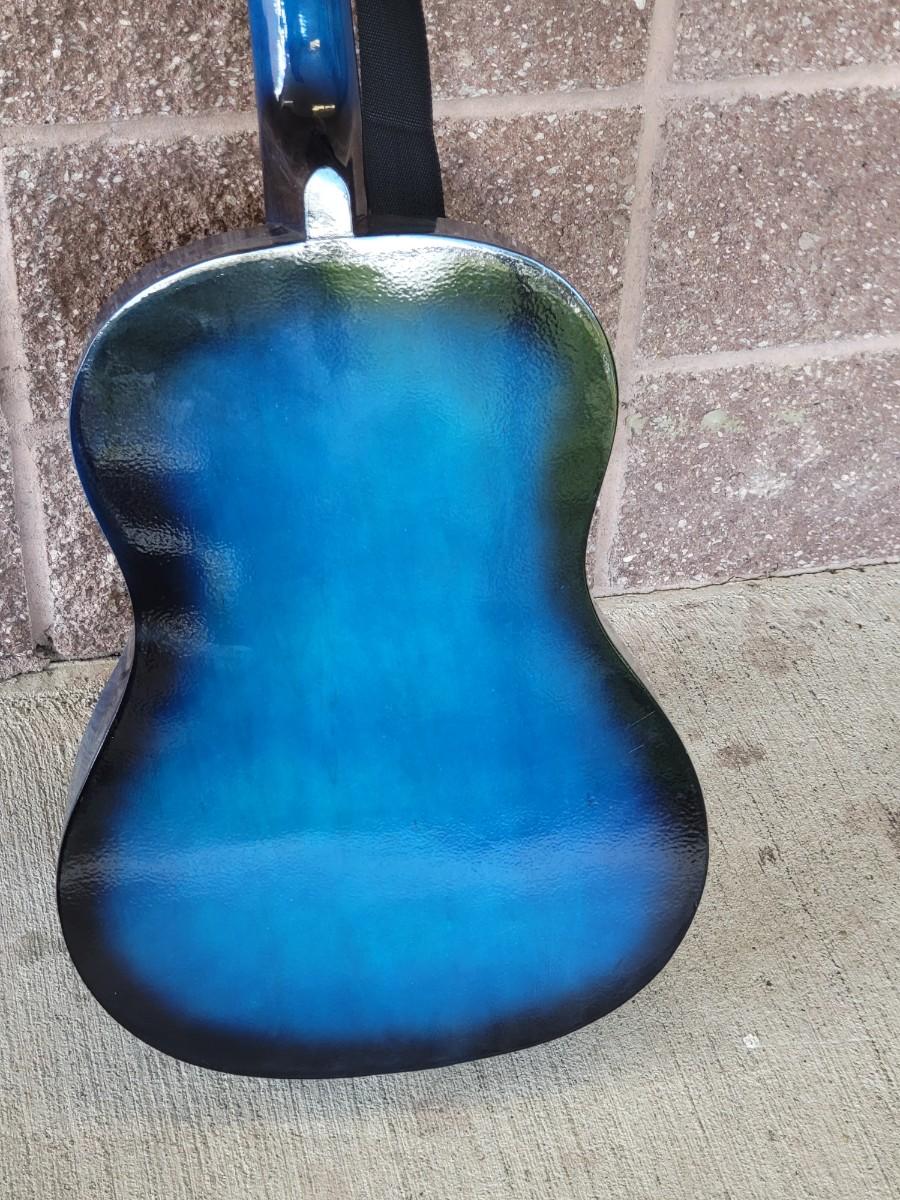 BC (Best Choice) Blue Burst, beginner, short scale guitar with nylon carry bag/case. Shipping not available on this item. Good condition. Nice sound.