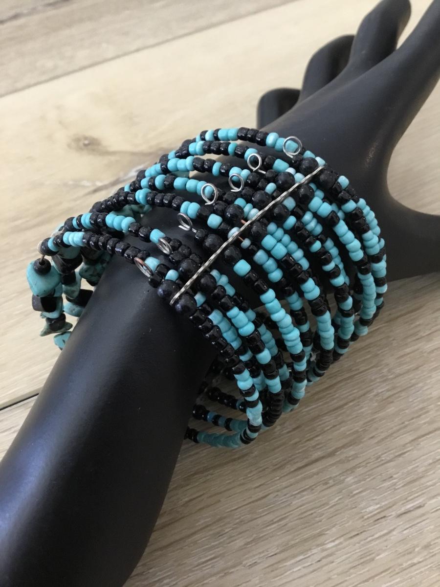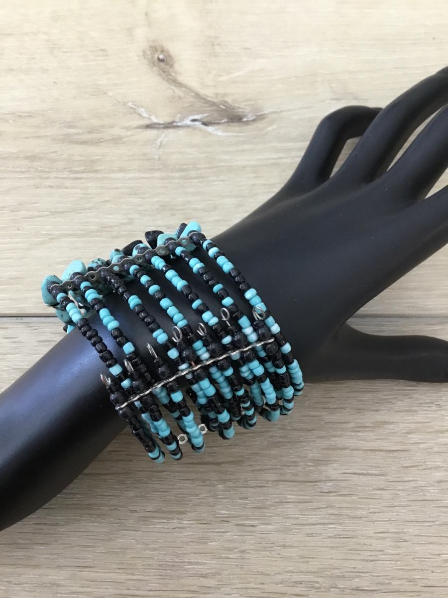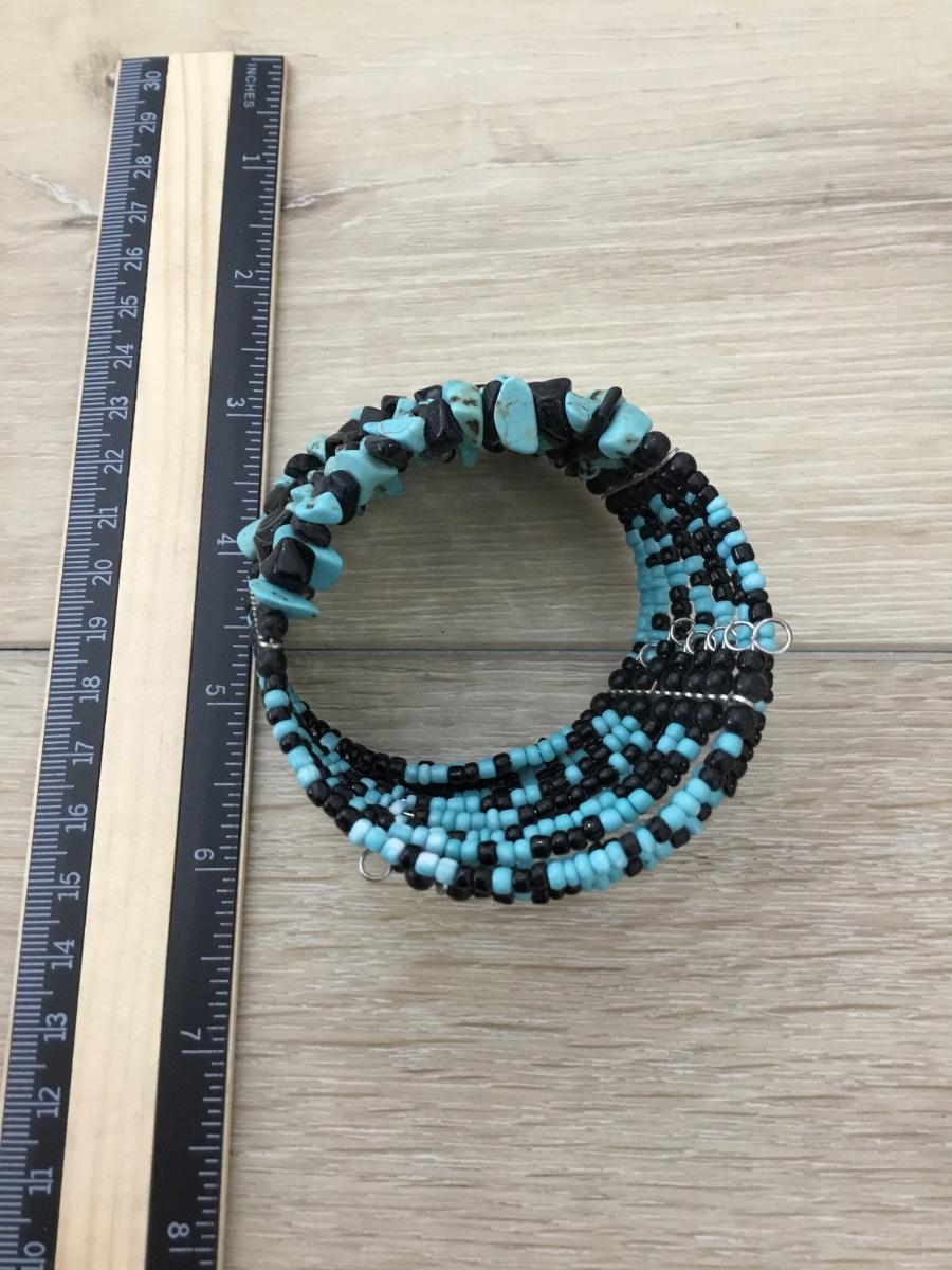 Blue and black beaded bracelet
