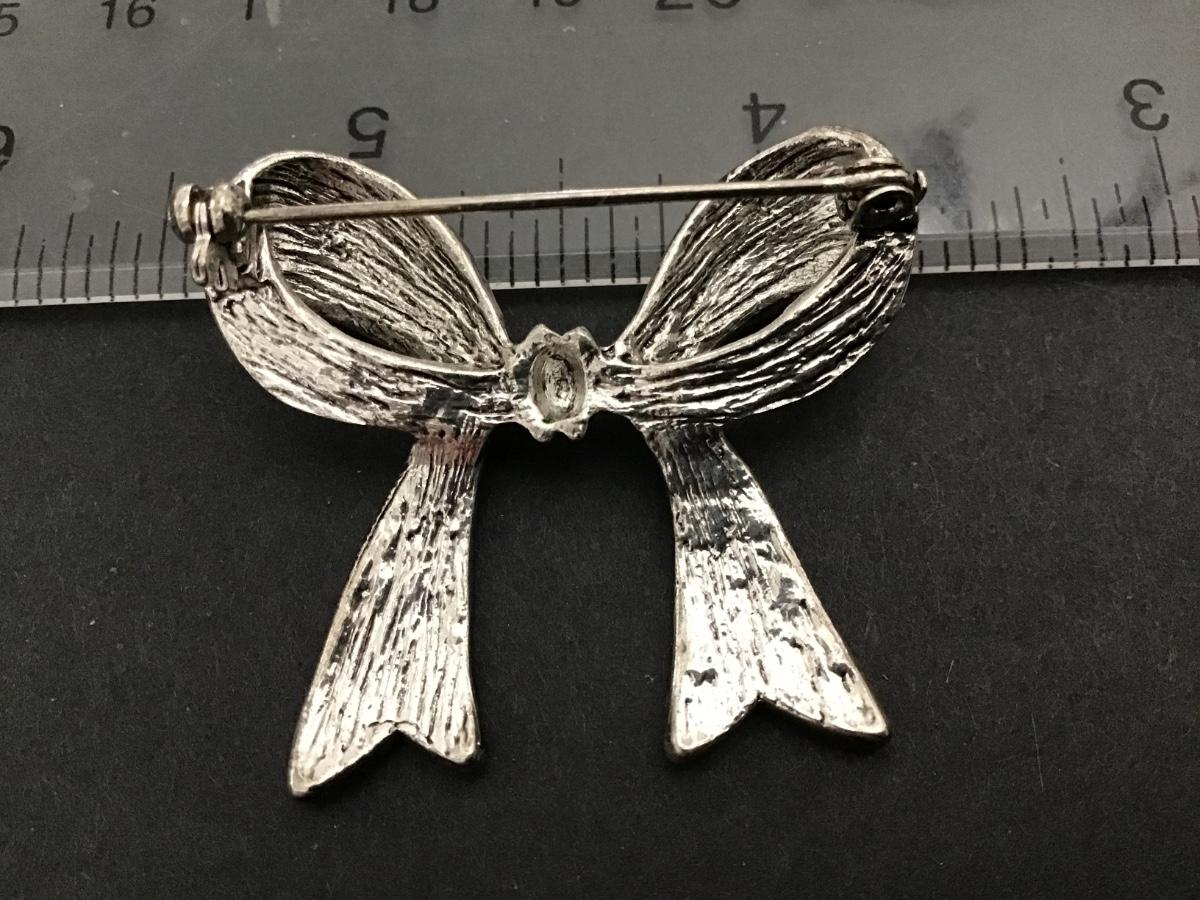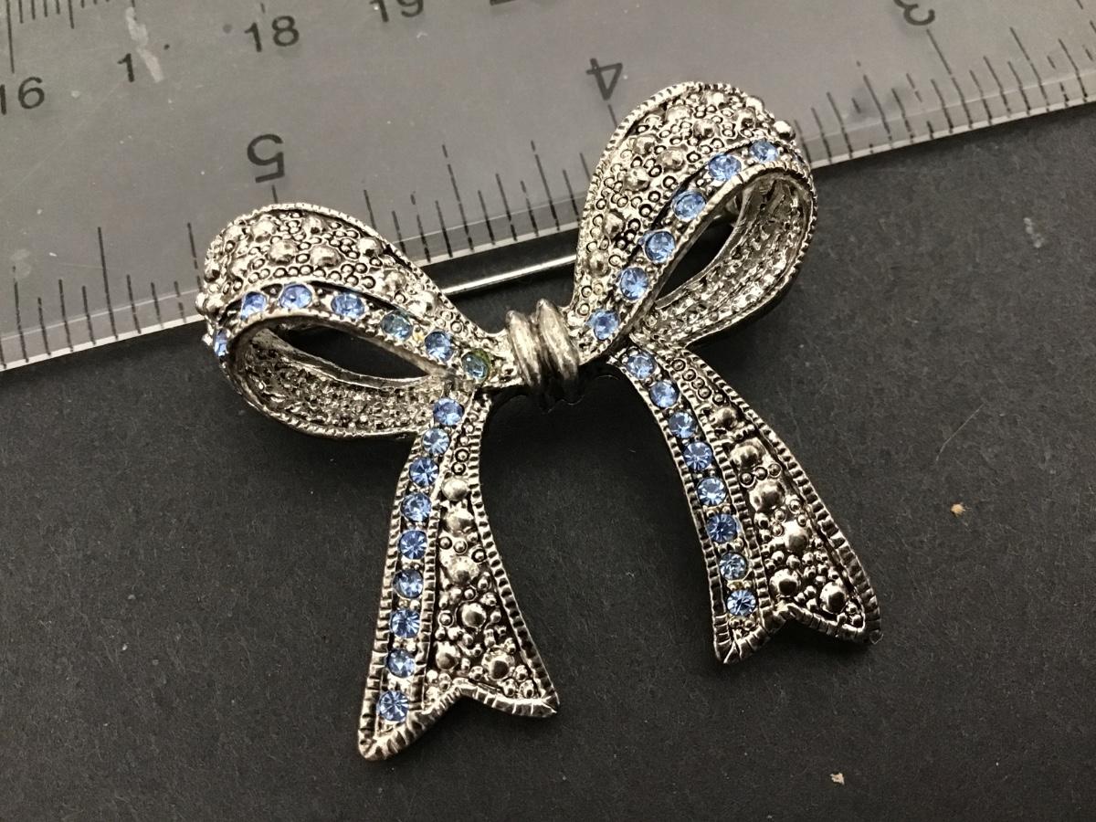 Blue and clear Rhinestone Bow Brooch