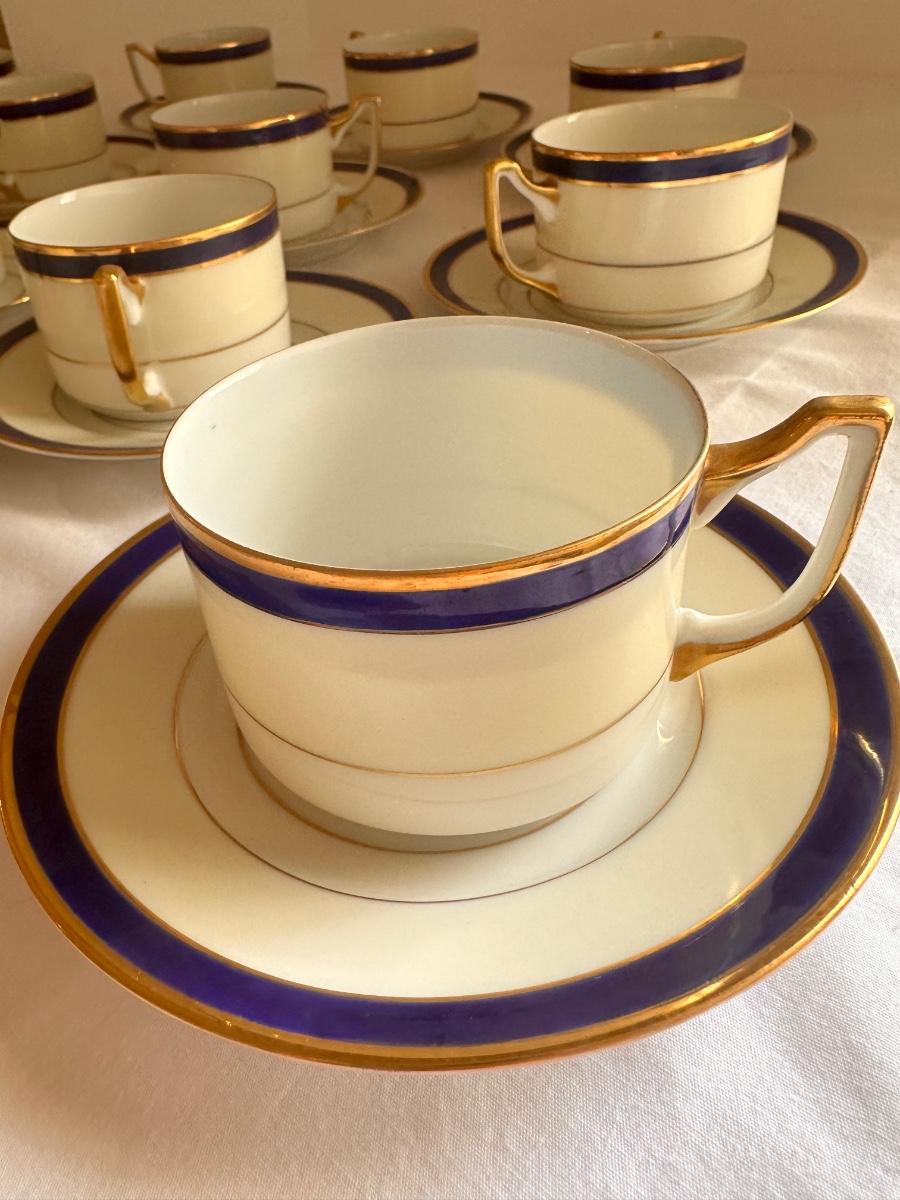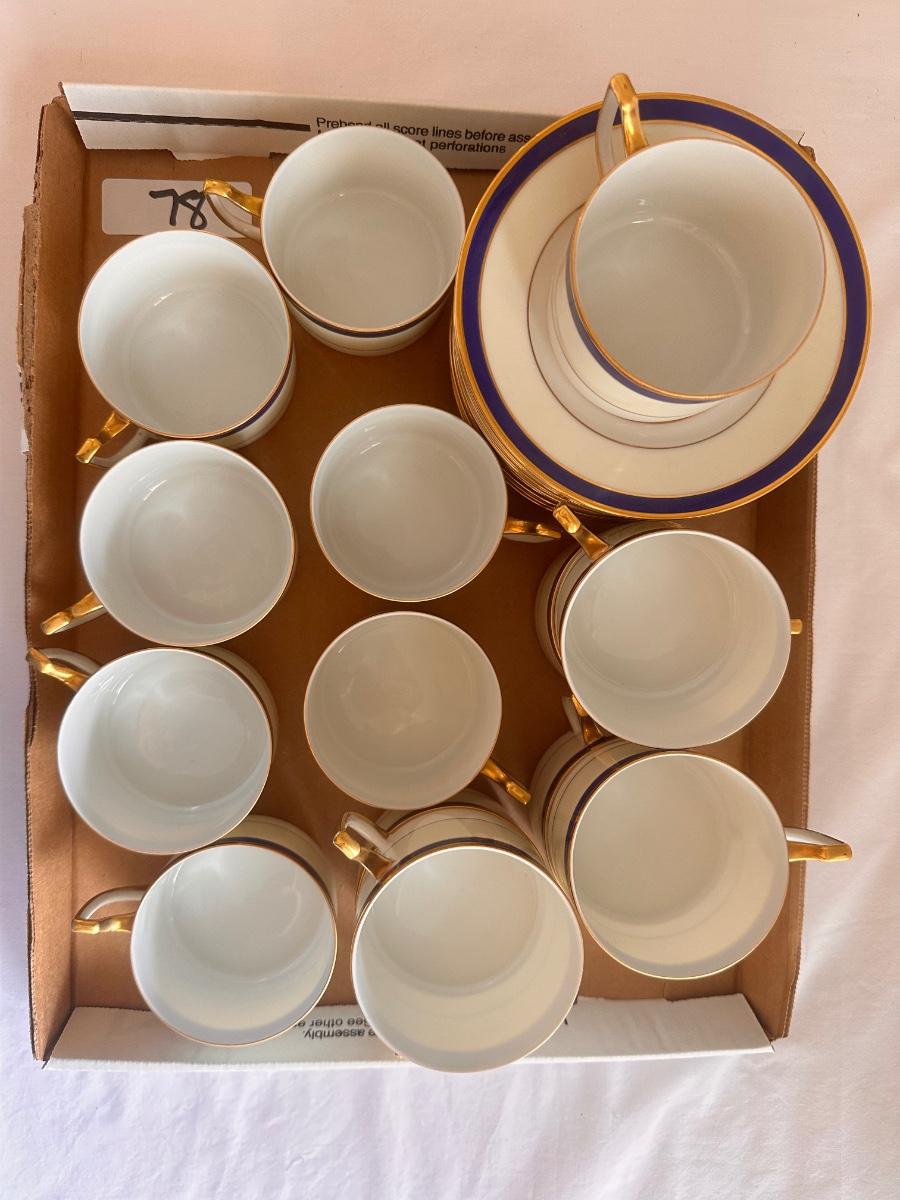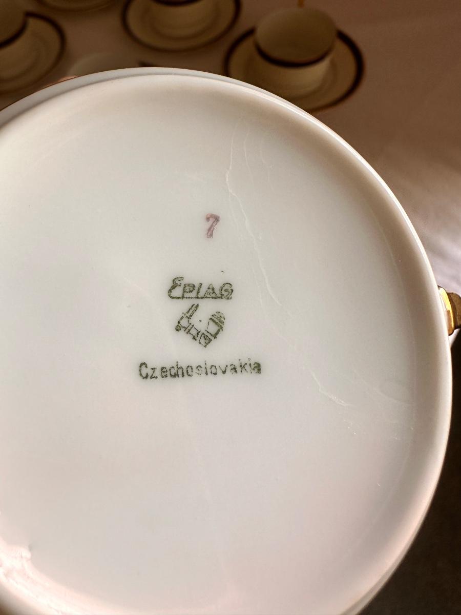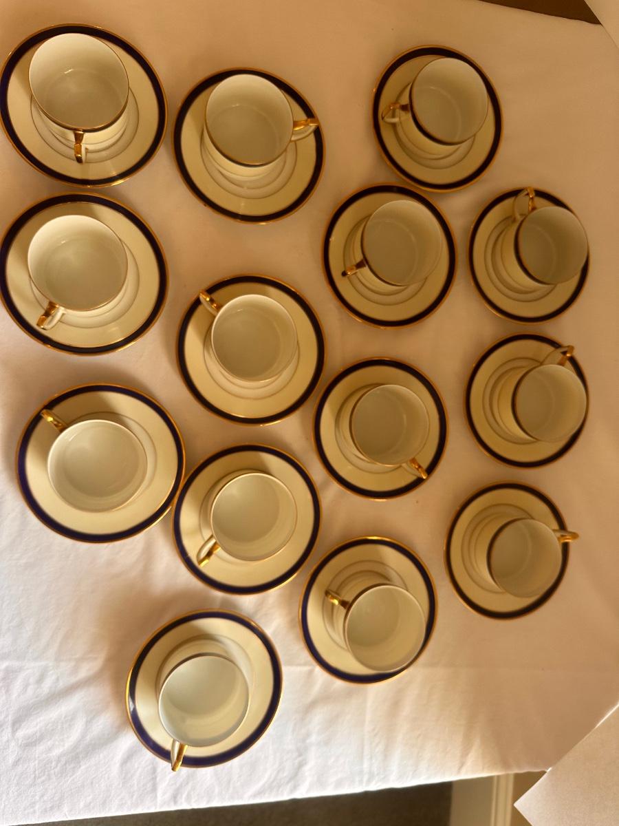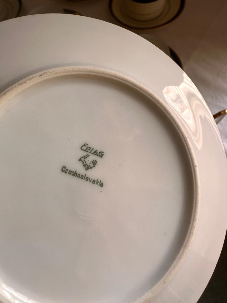 Blue and Gold Band Epiag Czechoslovakia China Cup and Saucer Lot As Pictured